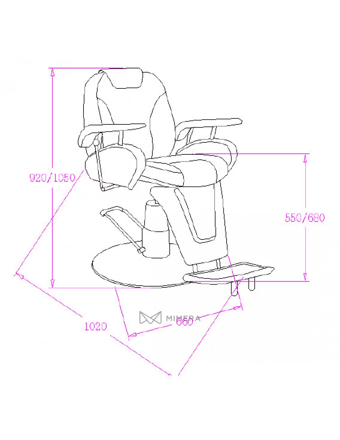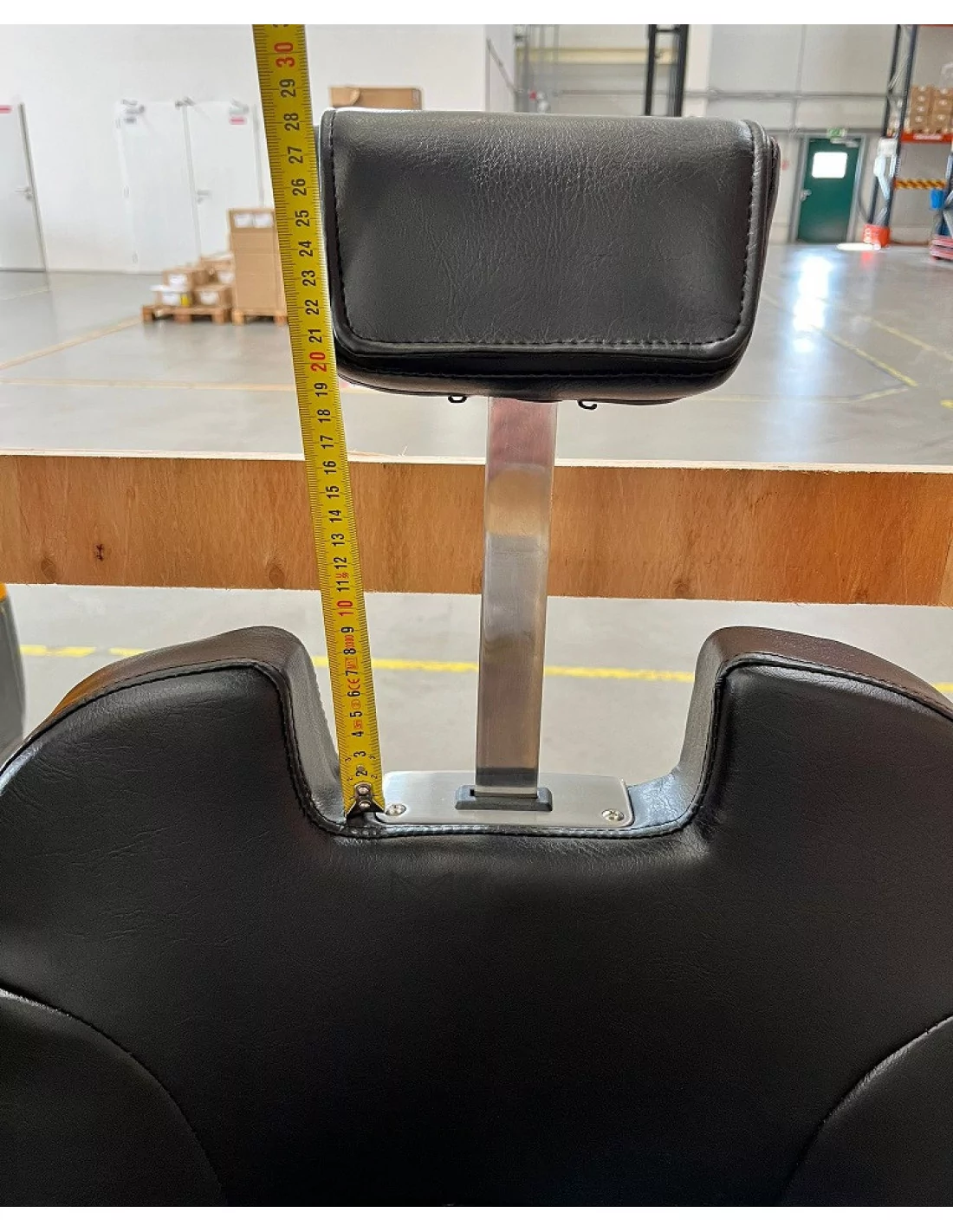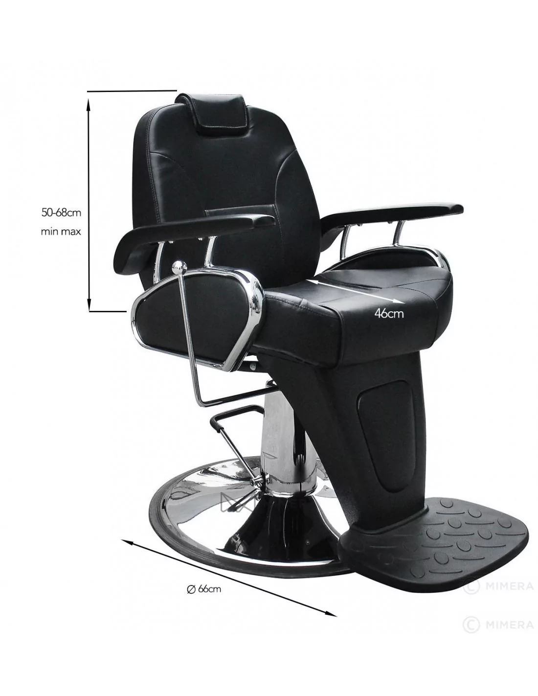 Toto výškově nastavitelné holičské křeslo se vyznačuje zejména robustní a odolnou konstrukcí a atraktivním moderním designem. Má nastavitelné opěradlo, odnímatelnou opěrku hlavy a hydraulickou pumpu. Polstrování s paměťovou pěnou s vysokou hustotou umožňuje velmi příjemný pocit. Otáčení křesla o 360 stupňů zajišťuje vysoký komfort při práci.