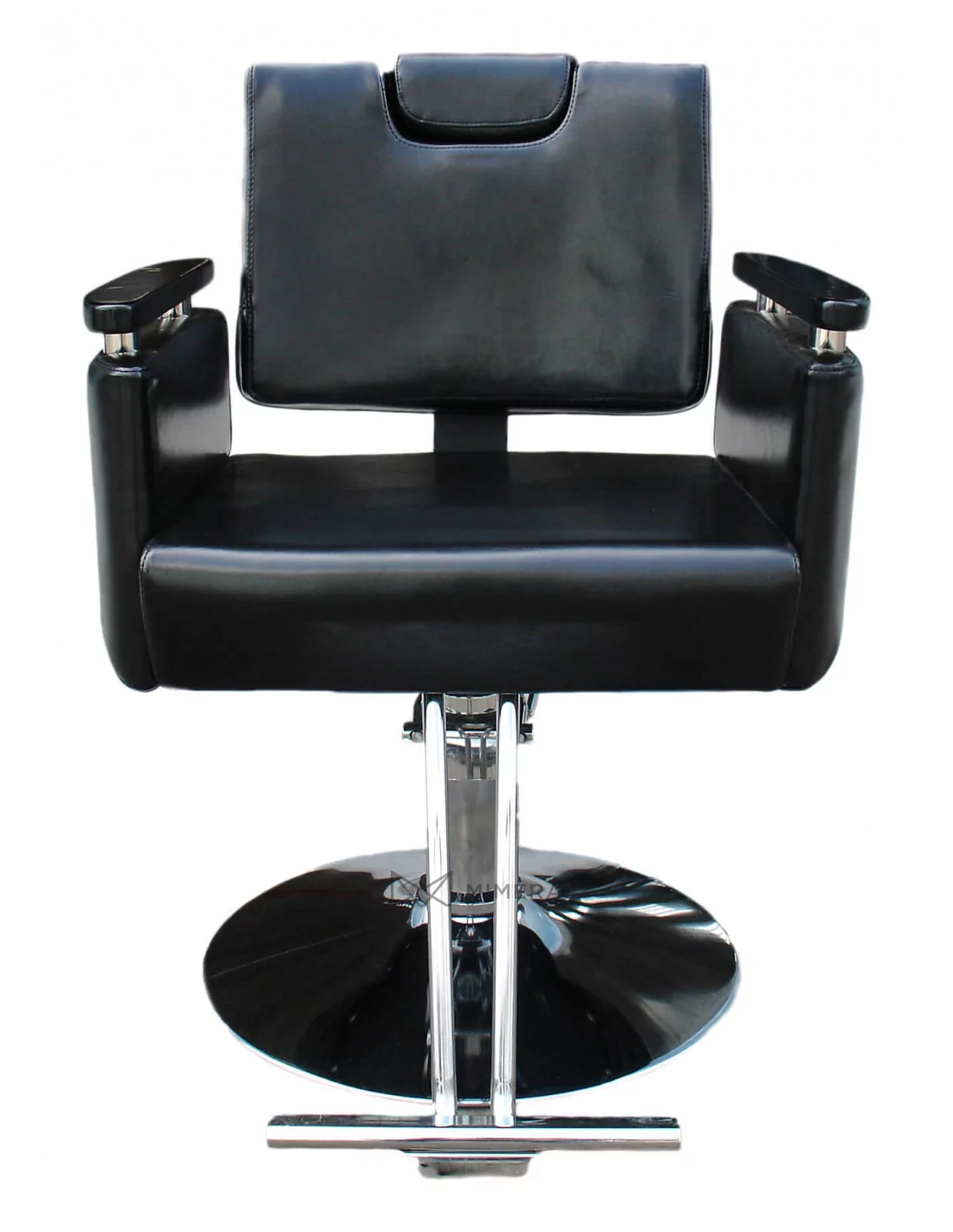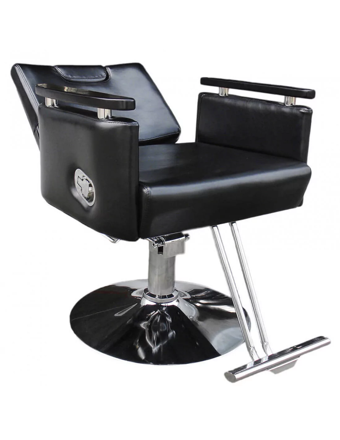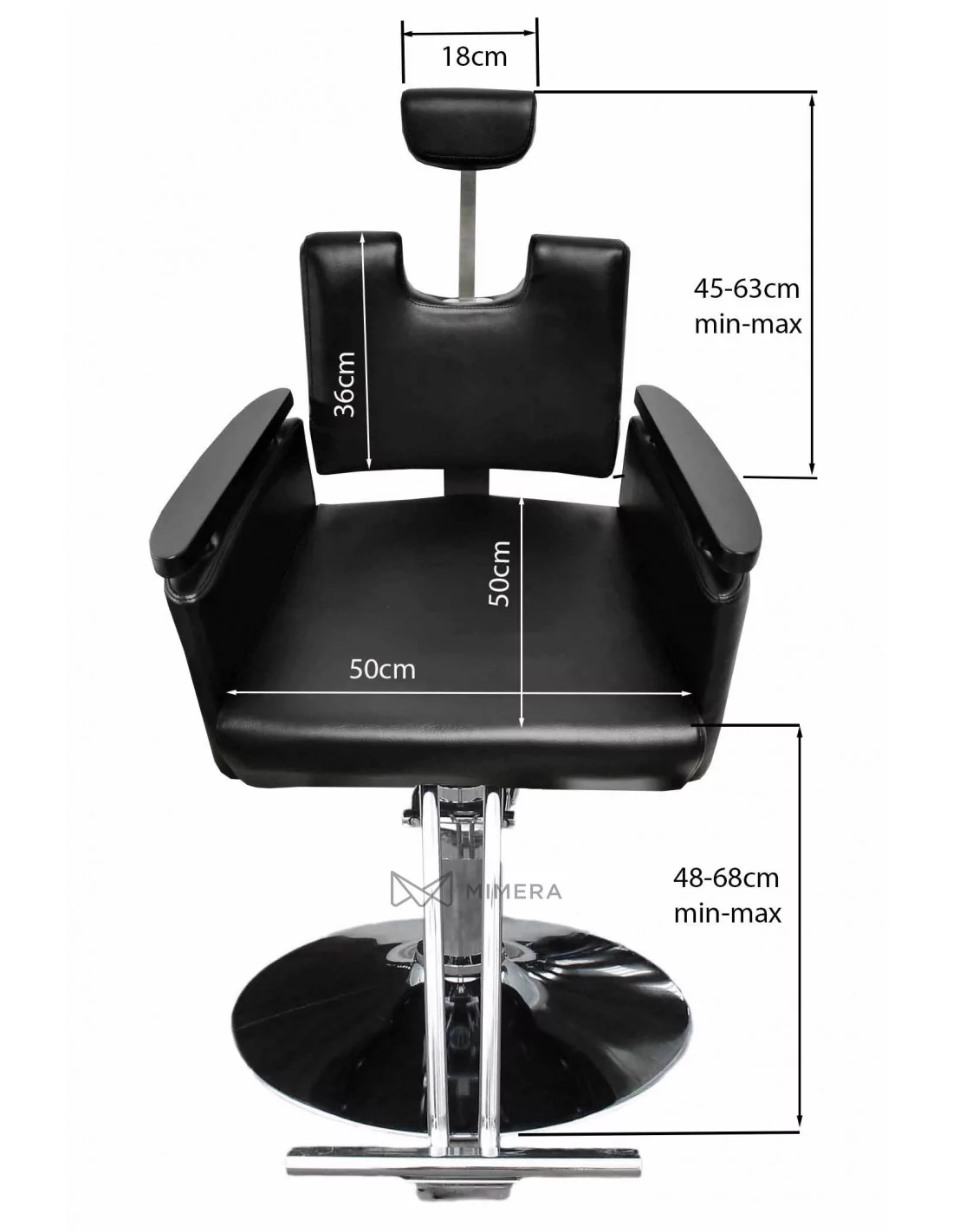 Stylová židle má nastavitelnou opěrku hlavy, opěrku na ruce a nohy a polohovatelnou opěrku zad. Křeslo má stabilní chromovou kulatou základnu. Sedák a opěradlo mají tlusté polstrování pro měkký komfort.