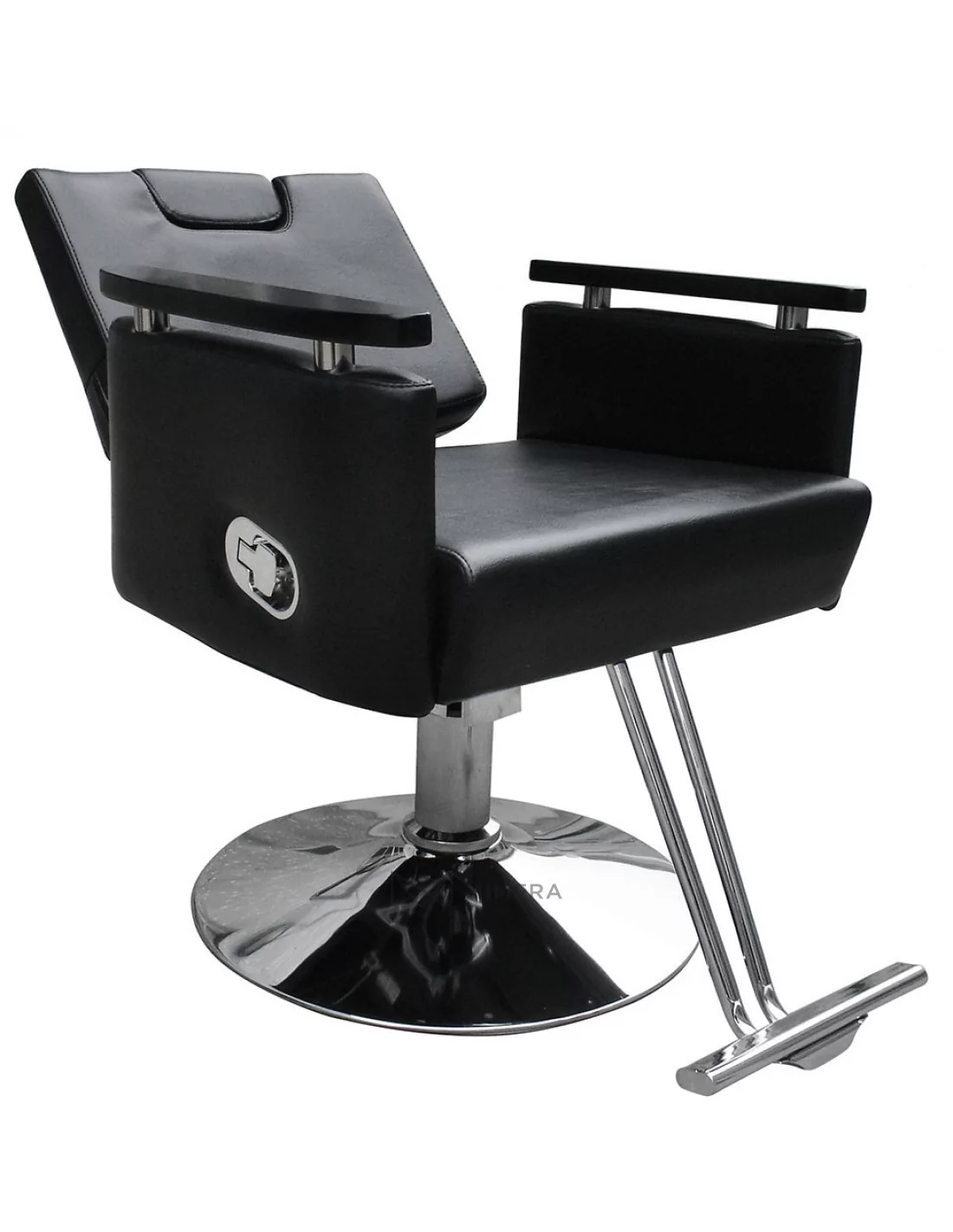 Stylová židle má nastavitelnou opěrku hlavy, opěrku na ruce a nohy a polohovatelnou opěrku zad. Křeslo má stabilní chromovou kulatou základnu. Sedák a opěradlo mají tlusté polstrování pro měkký komfort.