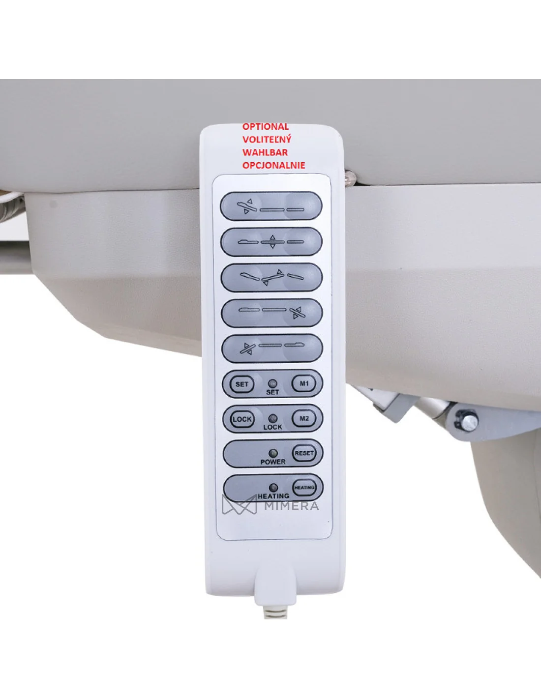 Lehátko disponuje také nouzovým tlačítkem, jehož stisknutím se v případě potřeby lehátko okamžitě odpojí od proudu.