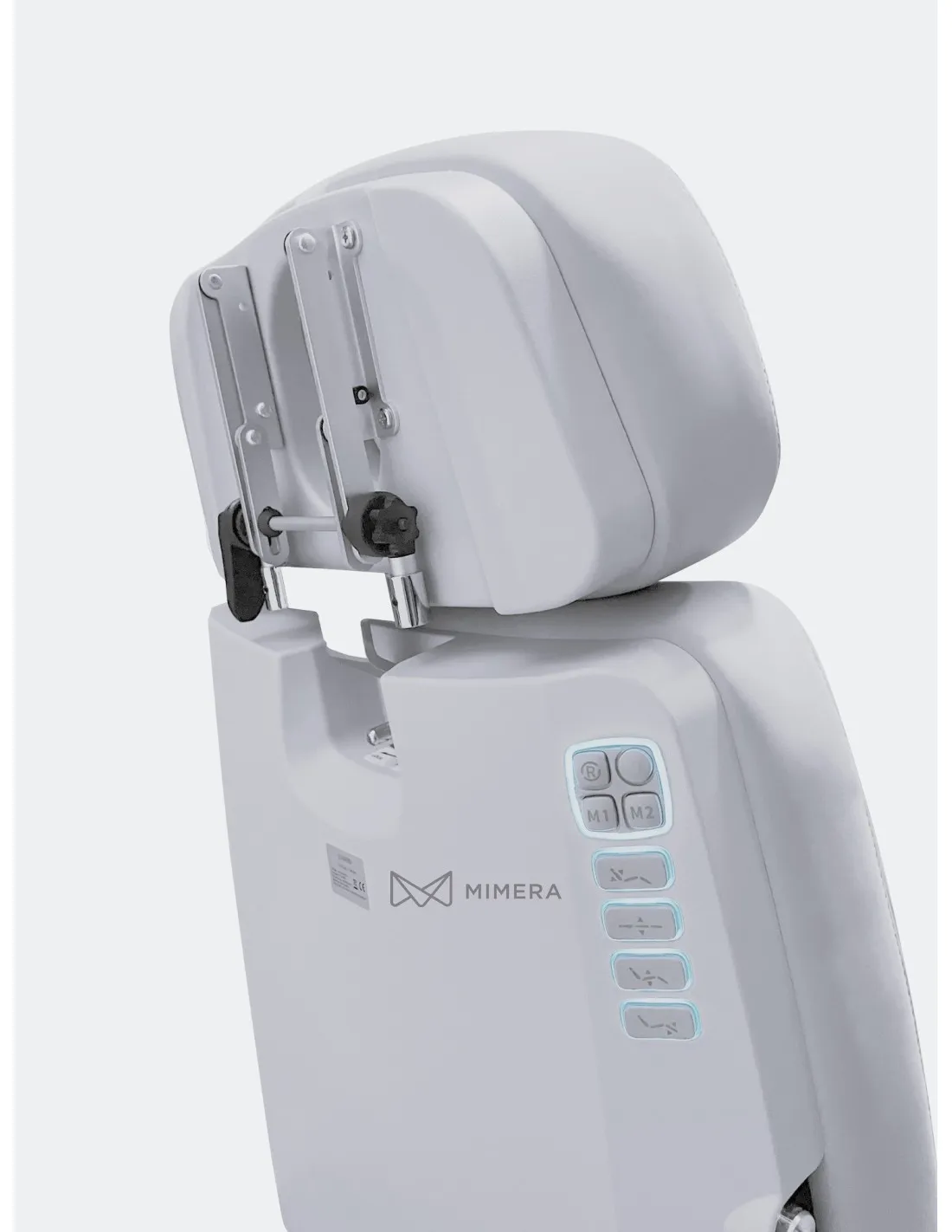 Opěrka hlavy je nastavitelná a disponuje odnímatelným polštářkem na hlavu a výřezem pro obličej. Lze ji prodloužit až o 8 cm.