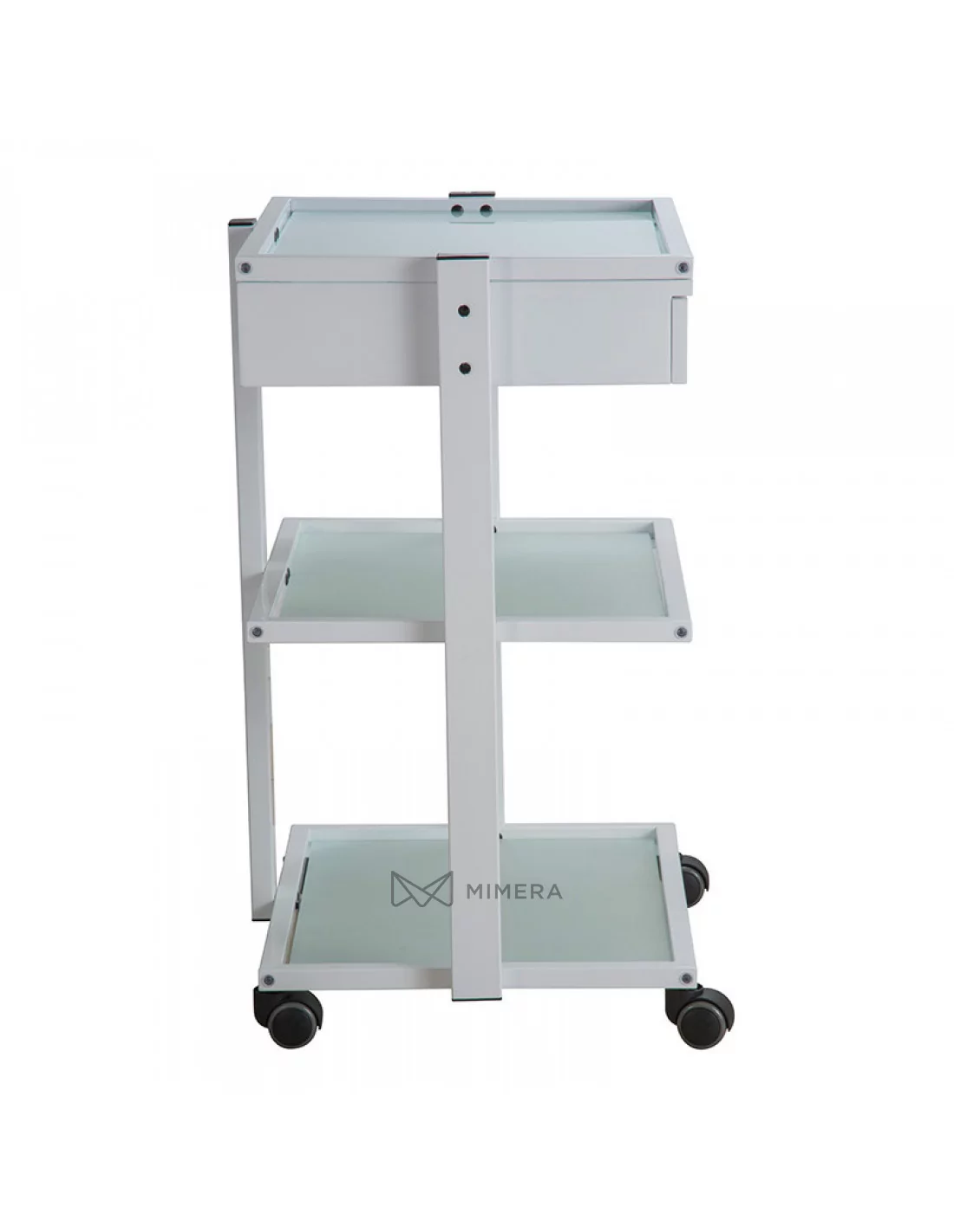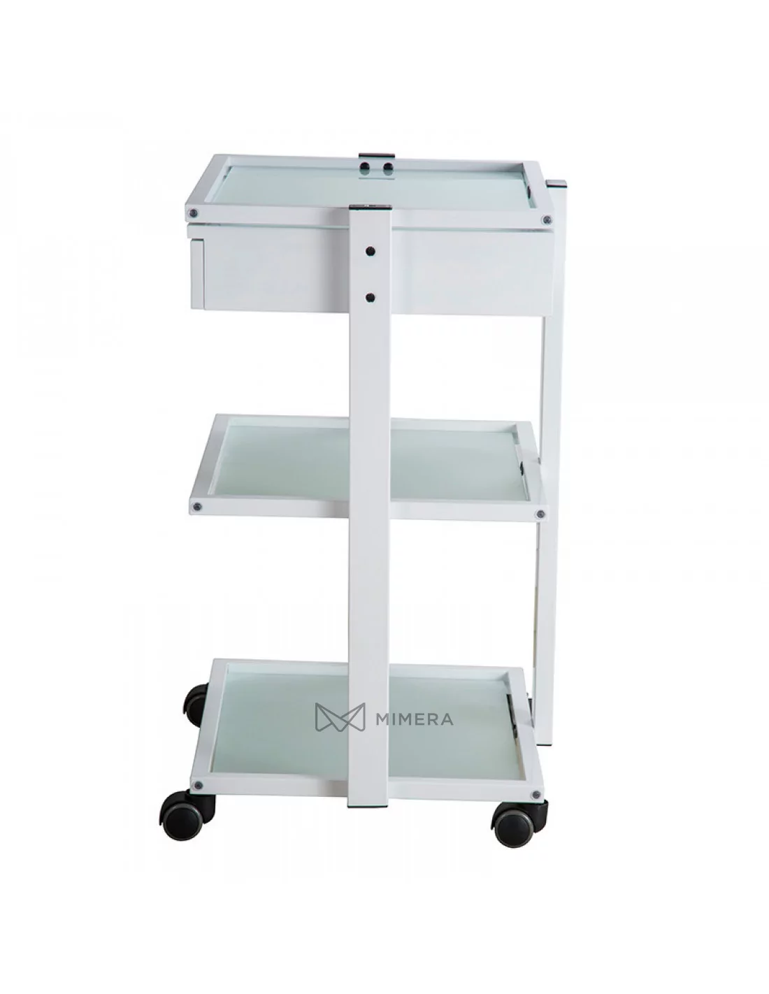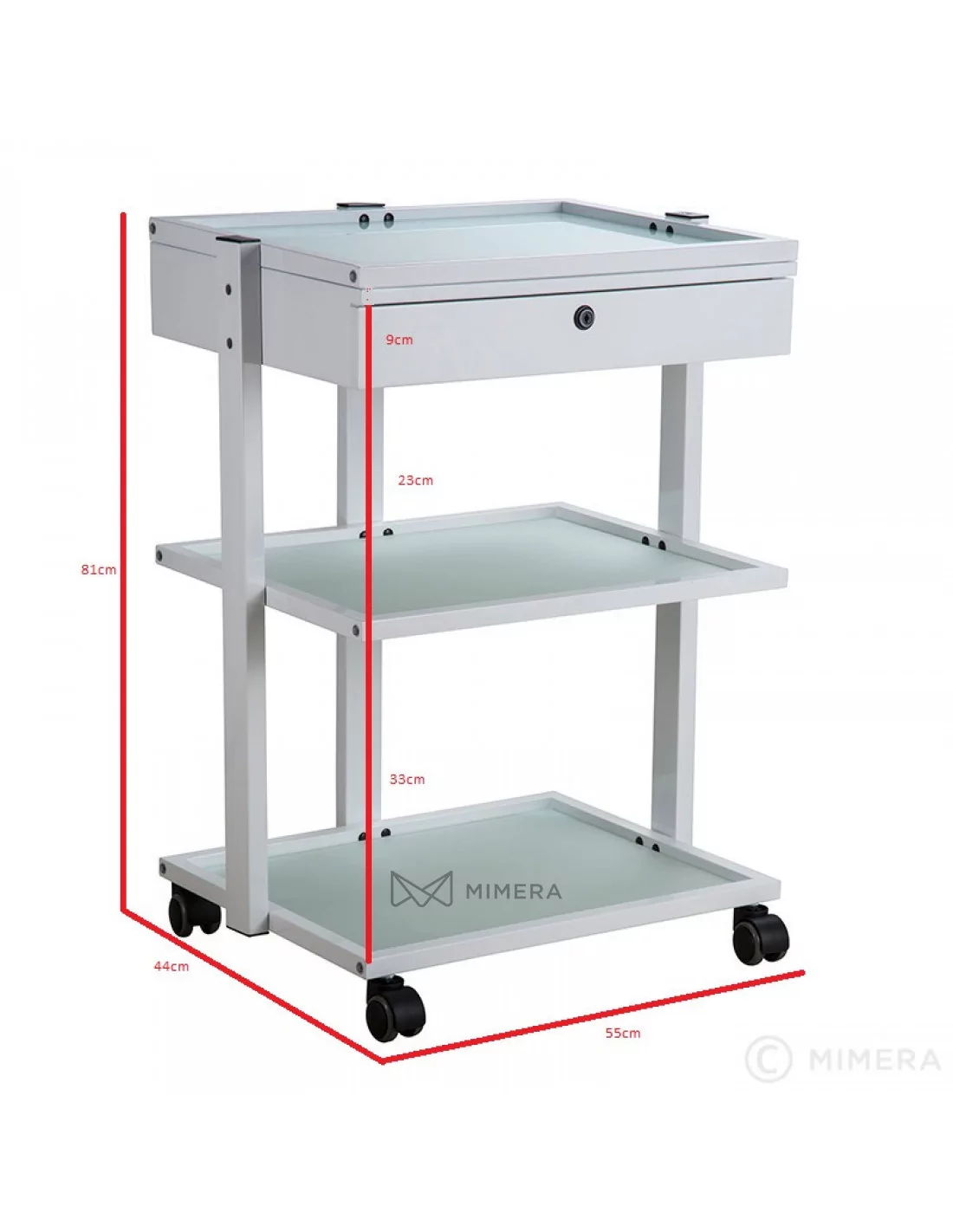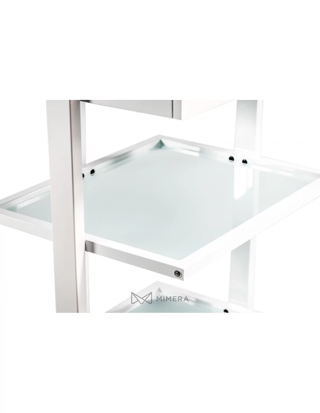 - Skleněné police: Stolek je vybaven třemi pevnými skleněnými policemi, které poskytují dostatek prostoru pro uložení kosmetických produktů, nástrojů nebo zařízení.