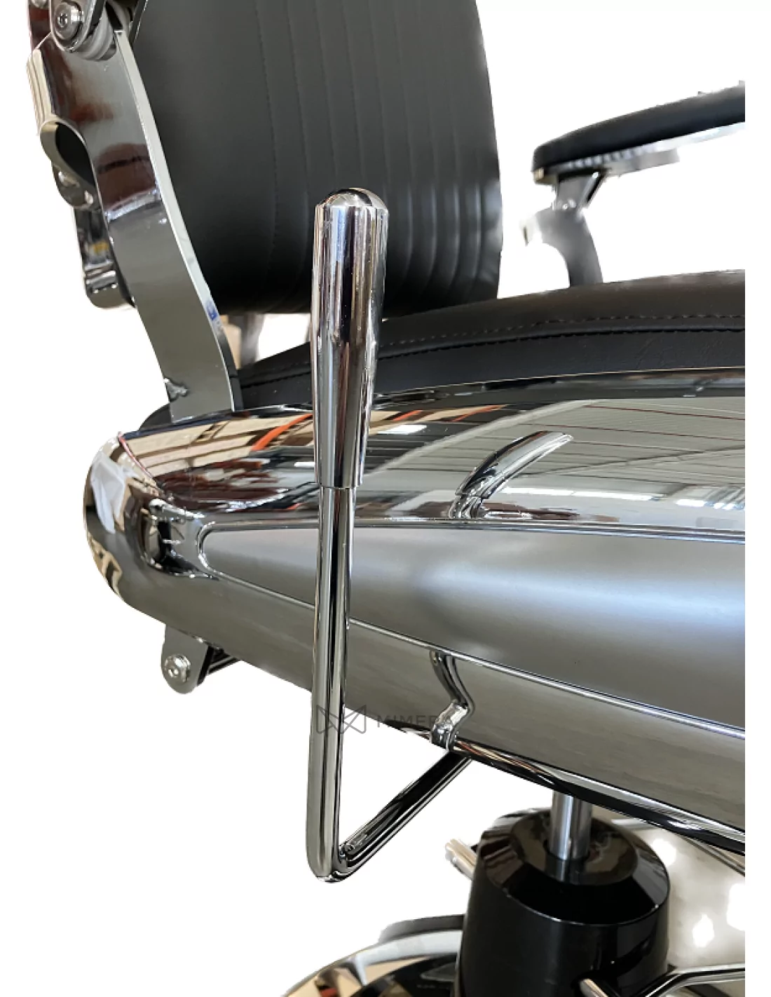 Retro barber křeslo ELEGANCE se postará o maximální pohodlí každého klienta také díky krásně prošívanému, pohodlnému polstrování, které se snadno udržuje a čistí. K jedinečnému zážitku přispívá také jedinečná barva a prošívání křesla, díky nimž se každý klient bude cítit jako gentleman.
