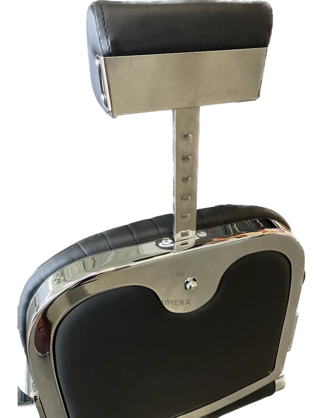 Elegantní křeslo je obdařeno pevným ocelovým rámem a stabilní základnou pro vysoké zatížení. Výška křesla se ovládá pomocí hydraulického čerpadla. Opěradlo křesla se snadno sklápí díky chromované páčce na pravé straně sedáku. Křeslo má také výškově nastavitelnou a odnímatelnou opěrku hlavy, která se nastavuje pomocí kovového knoflíku umístěného v zadní části opěradla. Křeslo má také podnožku s opěrnými nohami a také otočnou opěrkou, která slouží jako opěrka lýtek při ležení a zajistí vašemu klientovi ještě větší pohodlí. Otočná opěrka nohou a područky jsou navíc polstrované pro větší pohodlí.