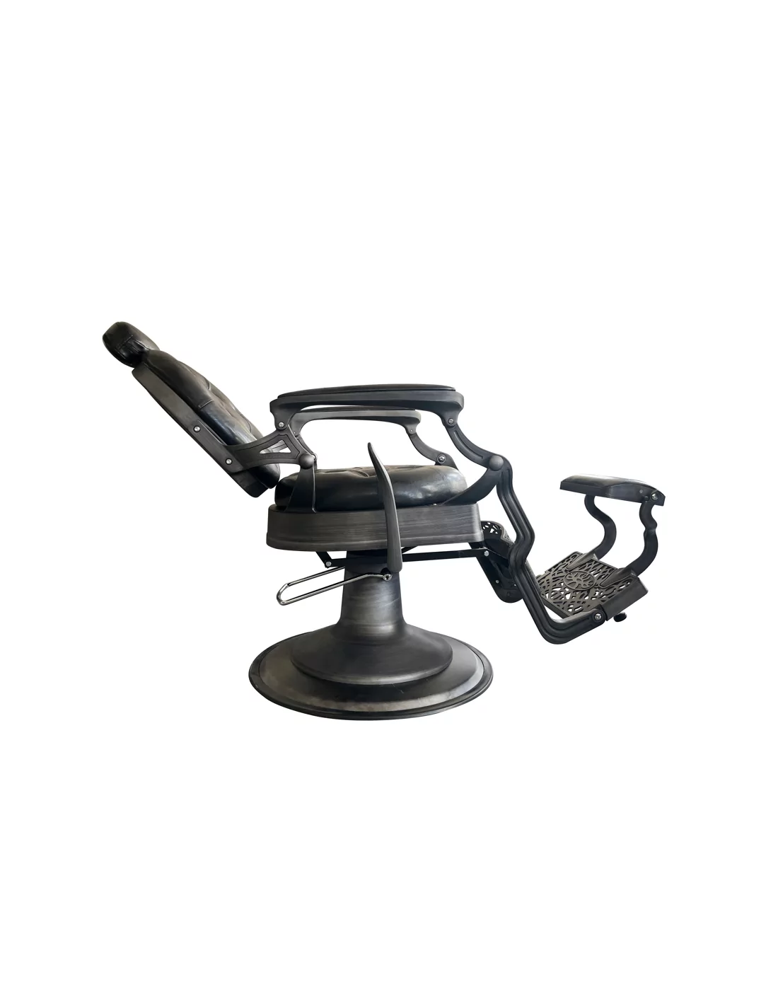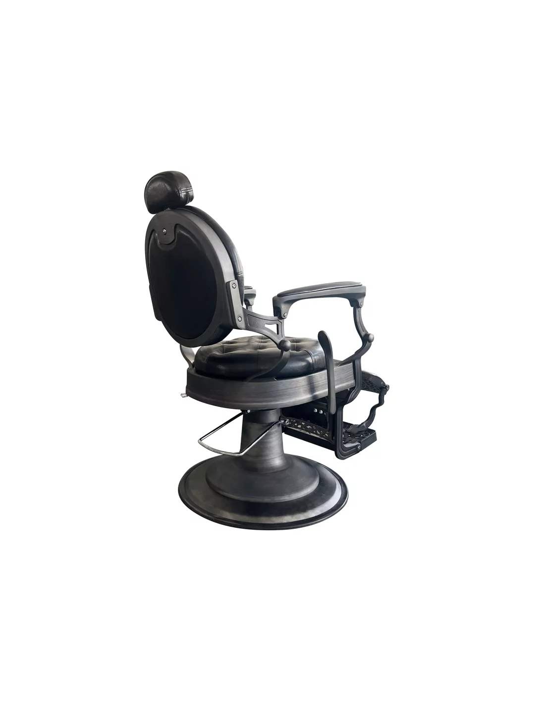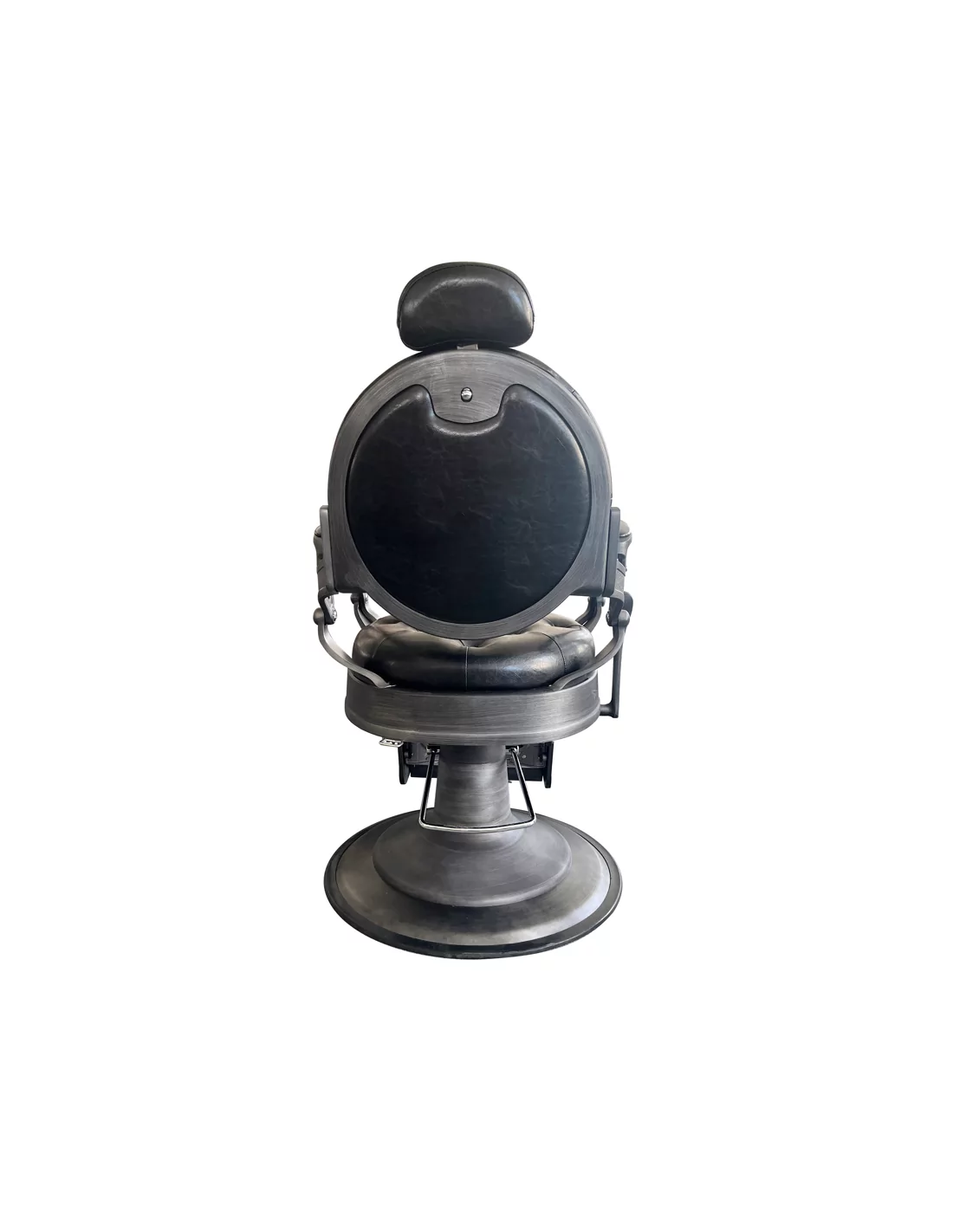 RETRO barber kreslo RENOIR GREY je skutečným mistrovským dílem. Její masivní tělo z nerezové oceli ve špinavě šedé barvě s velkou pevnou základnou je mimořádně stabilní a dobře vyvážené