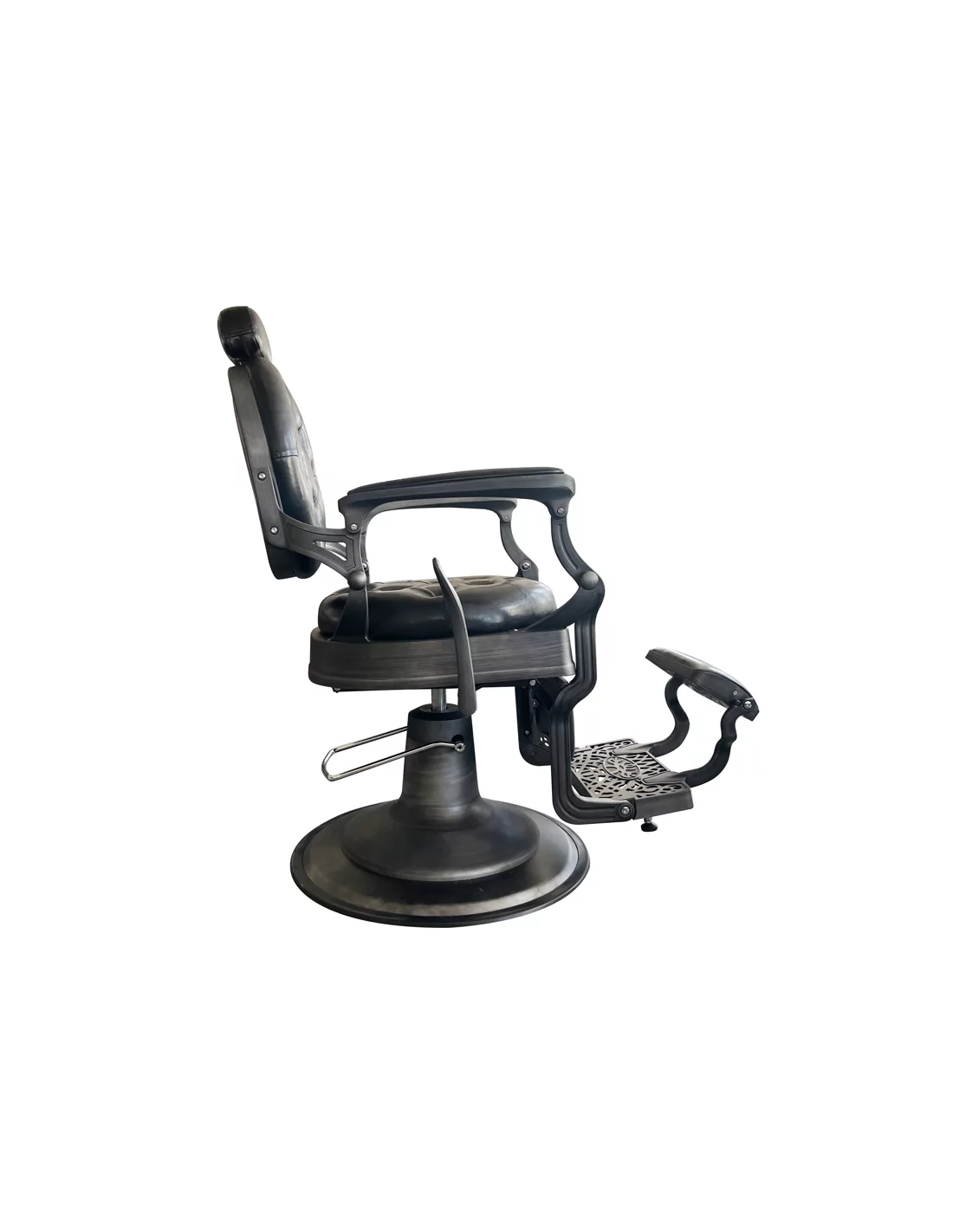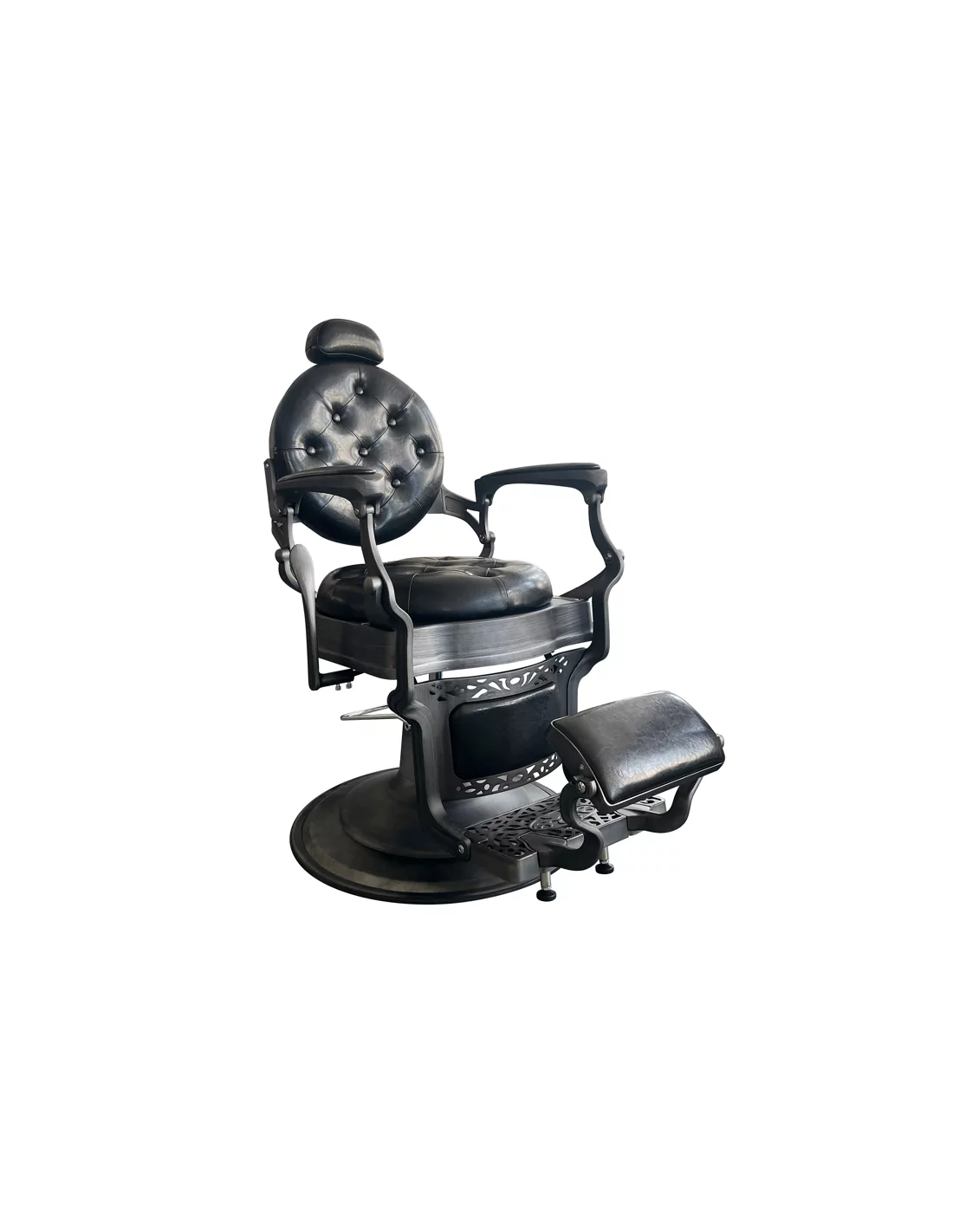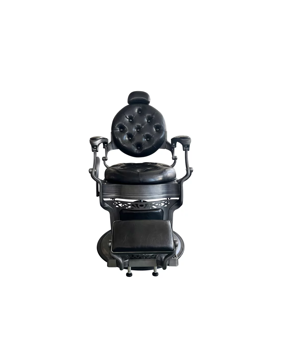 RETRO barber kreslo RENOIR GREY je skutečným mistrovským dílem. Její masivní tělo z nerezové oceli ve špinavě šedé barvě s velkou pevnou základnou je mimořádně stabilní a dobře vyvážené