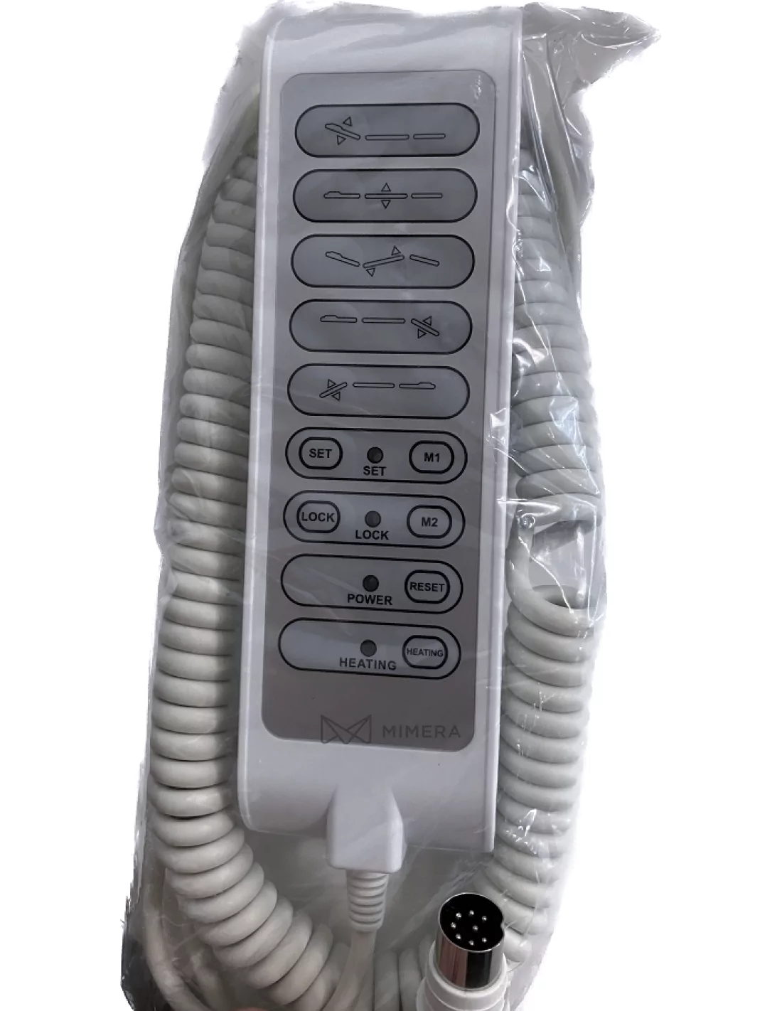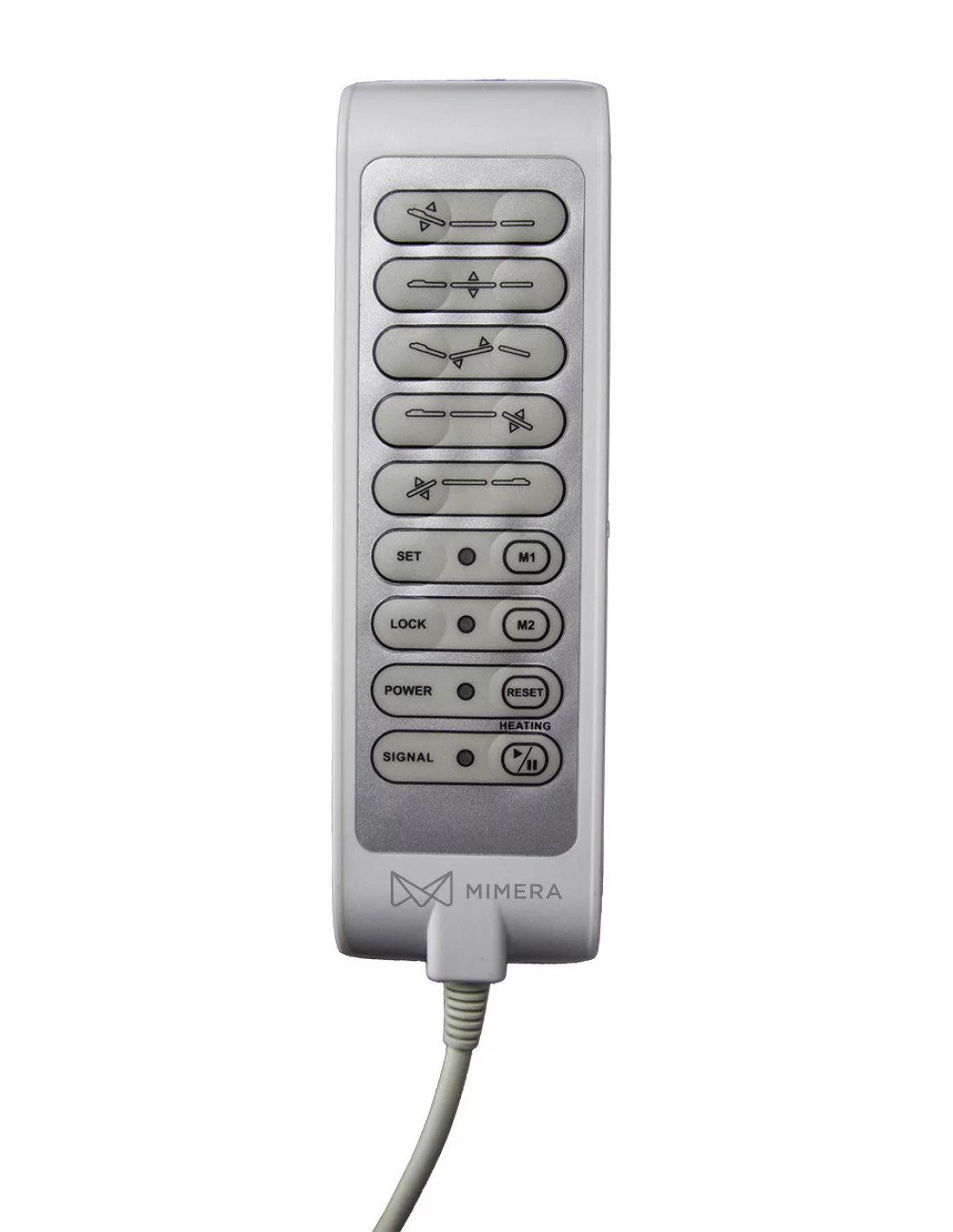 Ruční dálkové ovládání pro 3 motorové a 4-motorové lehátka s funkcemi RESET, LOCK a vyhřívání.