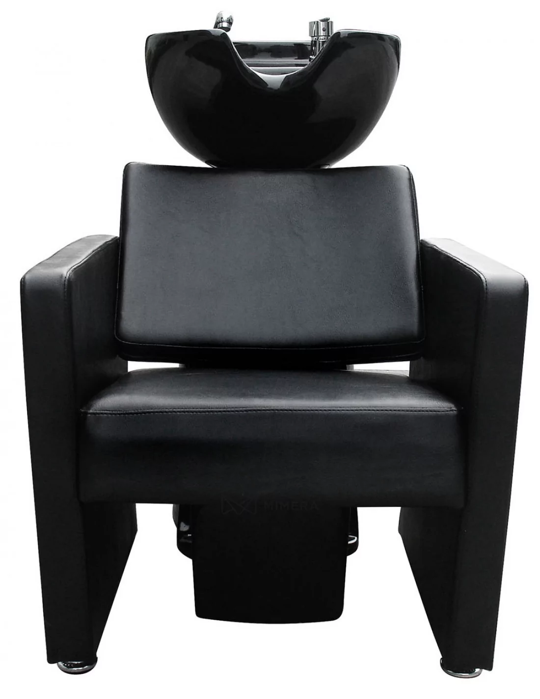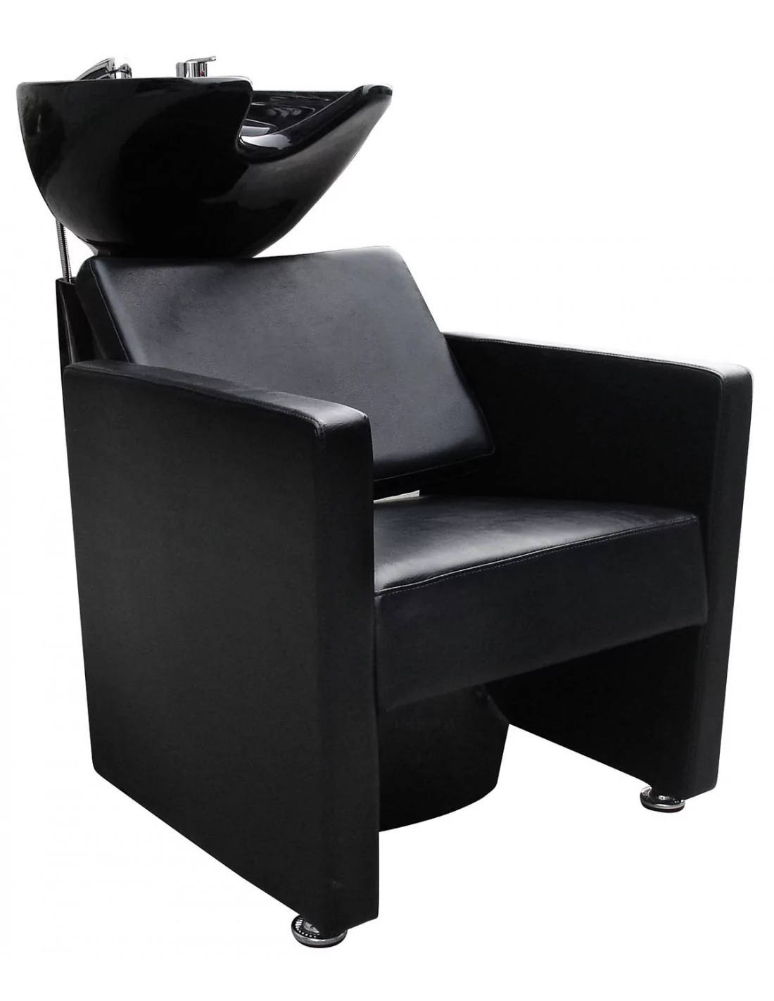 Hochwertiges Porzellanwaschbecken mit komfortablem Polstersessel für ein professionelles Arbeiten.