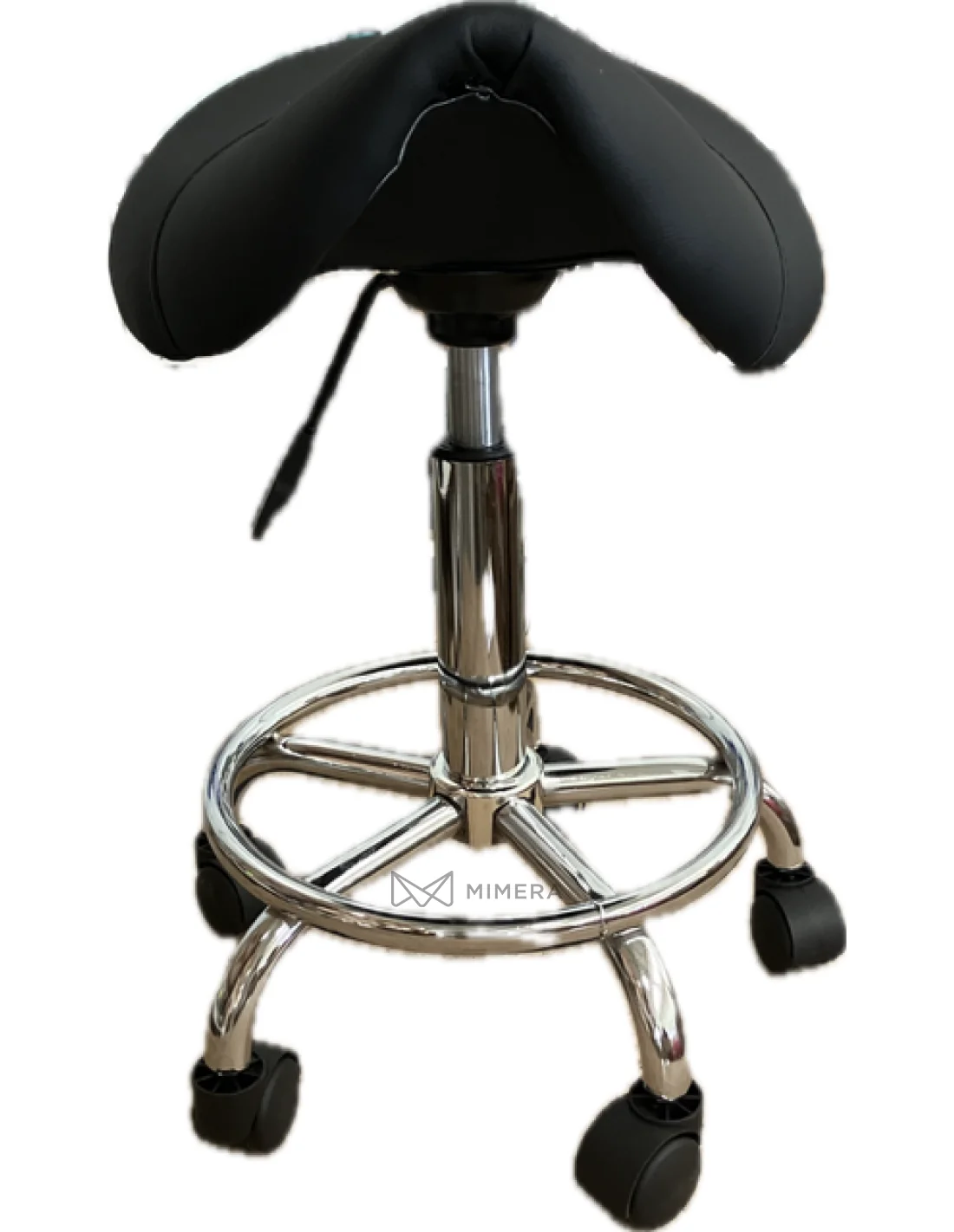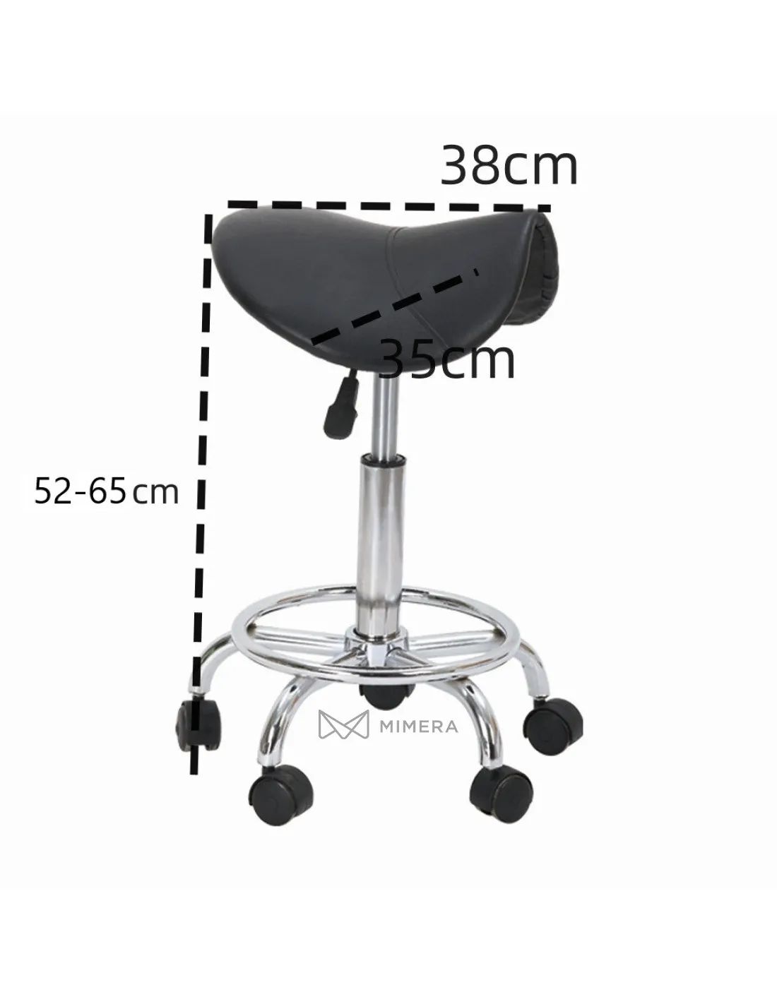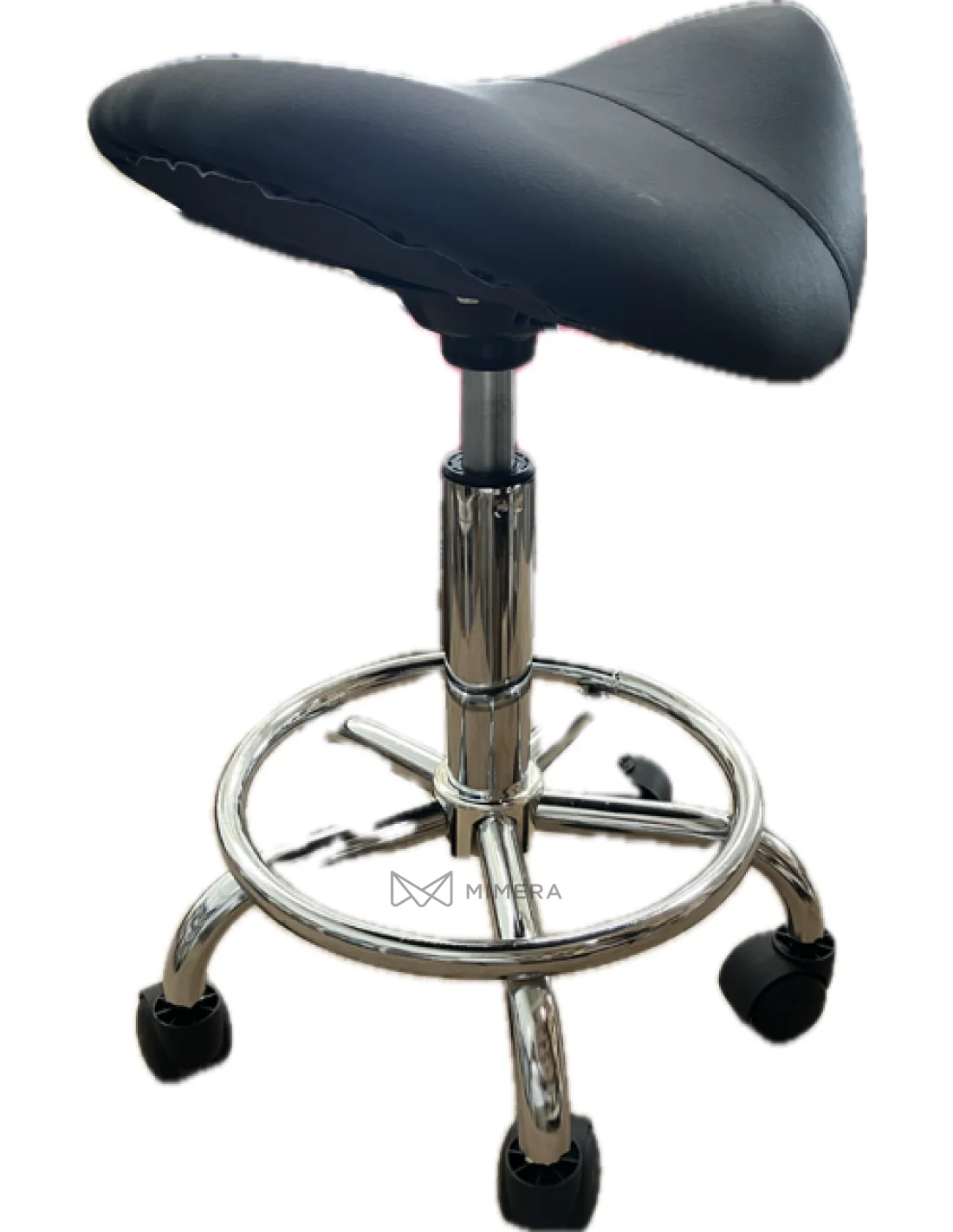 Friseurhocker mit ergonomischer Polsterung. Die integrierte Ölpumpe ermöglicht das Anheben und Drehen des Sitzes um 360 Grad. Der Hocker hat eine sehr haltbare Polsterung und eine robuste, langlebige Konstruktion mit runder Fußstütze.