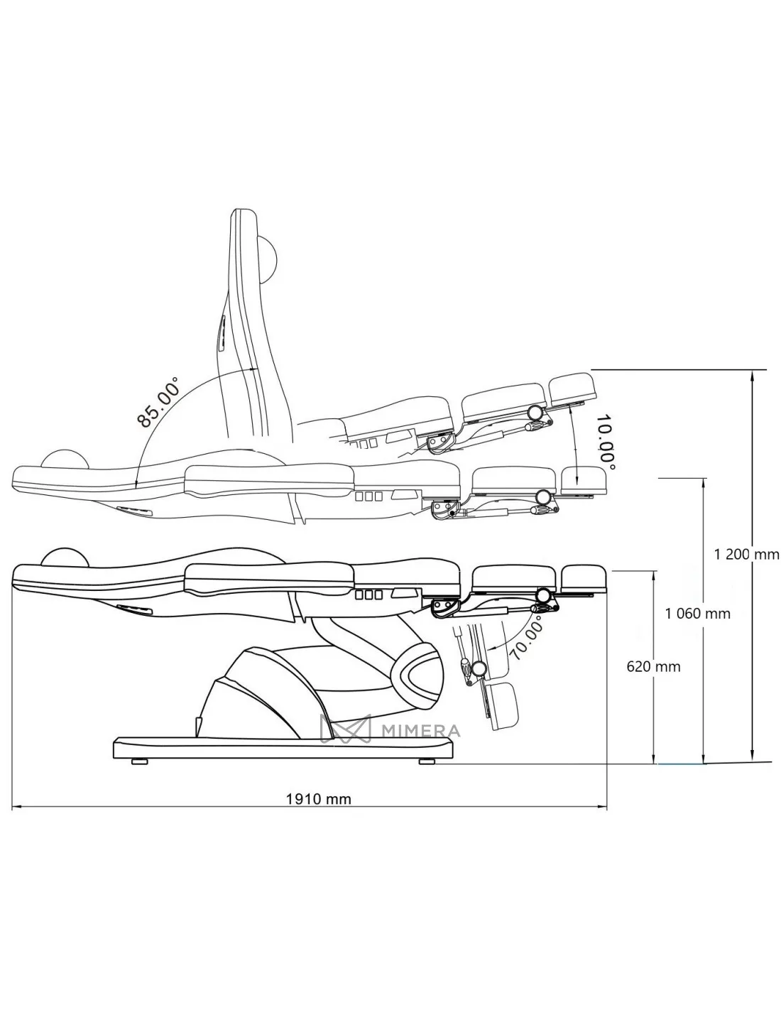 - 5 Motoren zur Höhenverstellung (62-106cm, bis zu einer Höhe von 120cm in der Wiege), Armlehnen (0 ° + 85 °), Sitzneigung (- 4 ° ~ + 10 °) und Fußstützen (- 70 ° ~ 0 °)