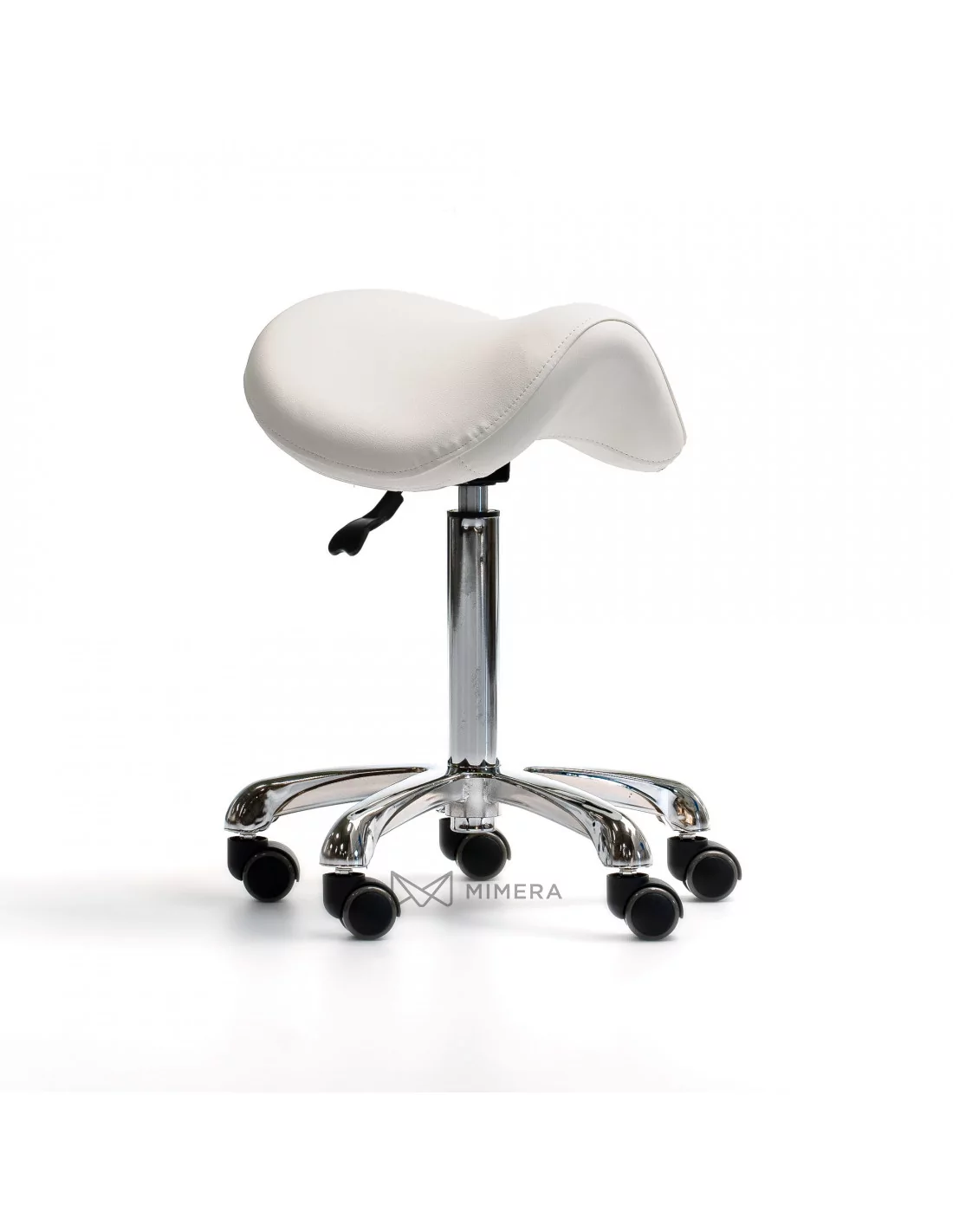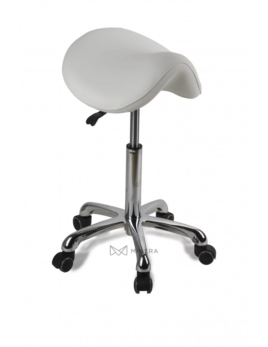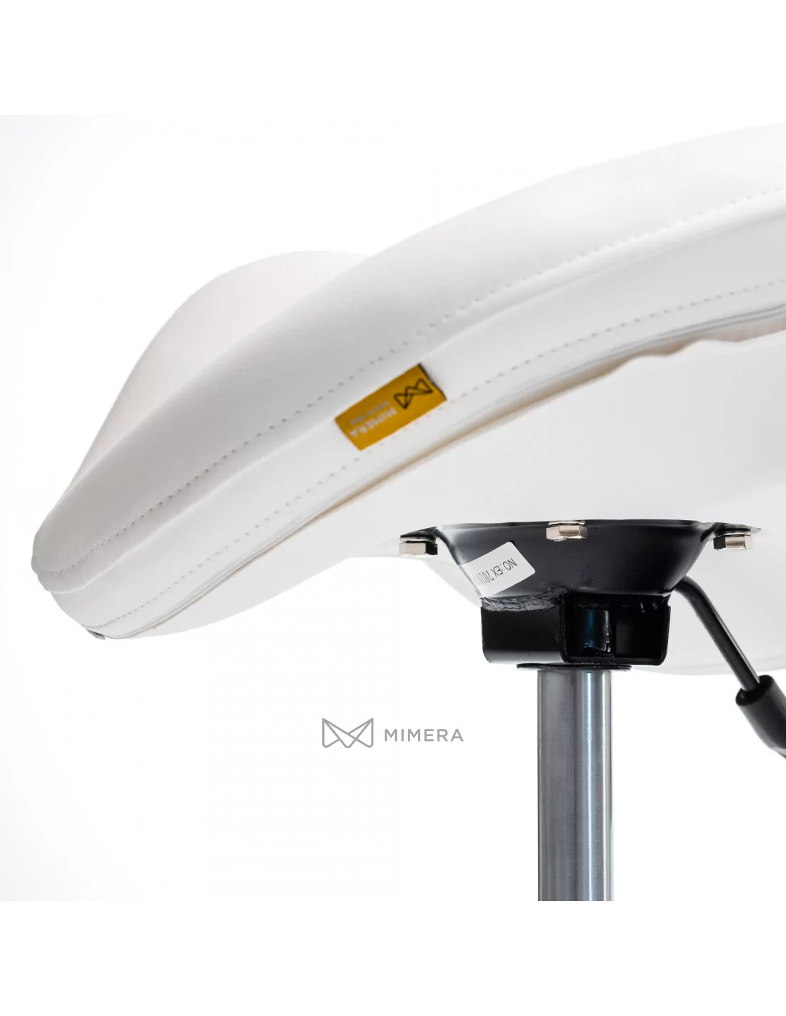 Bequemer, ergonomischer Arbeitsstuhl mit geformtem Sattelsitz sorgt für maximalen Komfort bei der Arbeit.