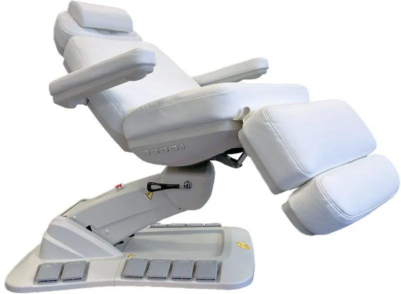 Sie ist mit einer extra weichen, mehrlagigen Polsterung aus PU-Mikroleder und einem glatten Muster (Microgoove) ausgestattet, das Ihren Kunden ein Lächeln ins Gesicht zaubern wird. Deren Komfort wird durch die eingebaute Heizfunktion unterstützt, die jede Behandlung auch an kalten Tagen angenehmer macht. Zur Zufriedenheit Ihrer Kunden wird auch die LED-Beleuchtung mit wechselnden Farben beitragen, die die Tasten, die Pedale und sogar die Basis der Liege beleuchtet.
