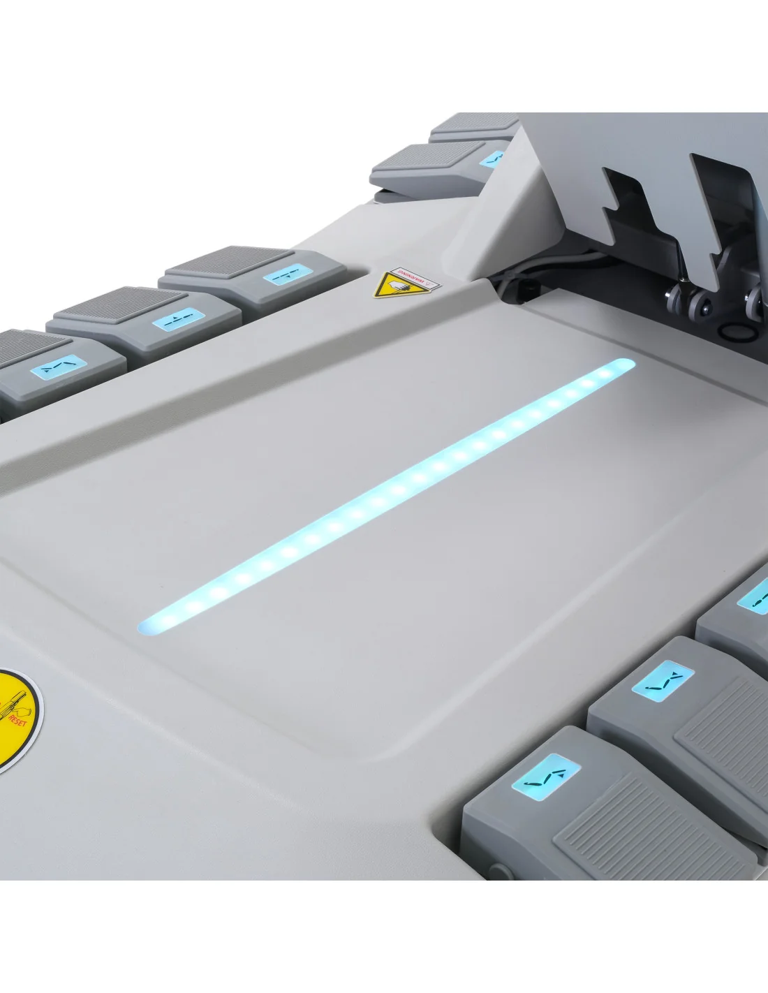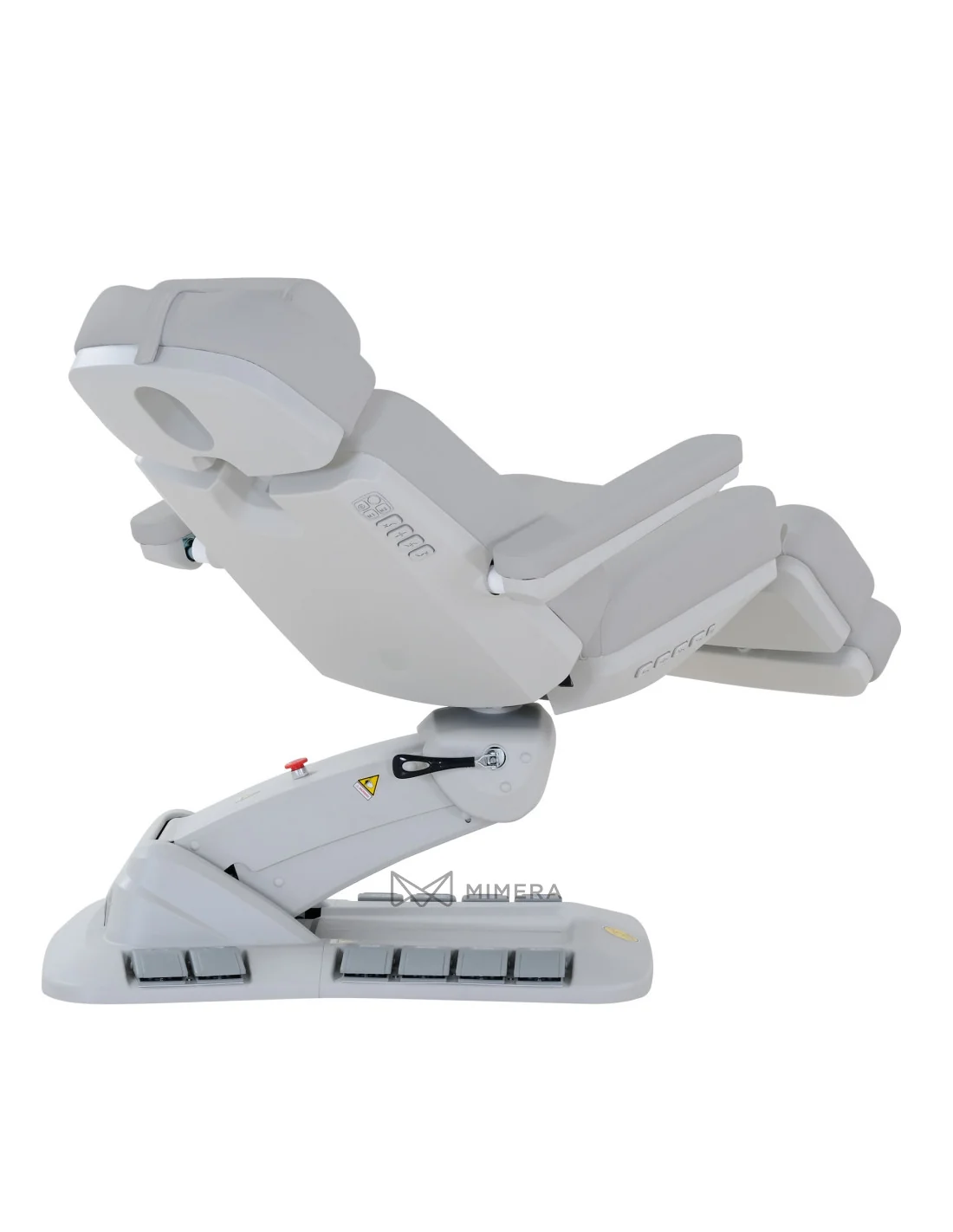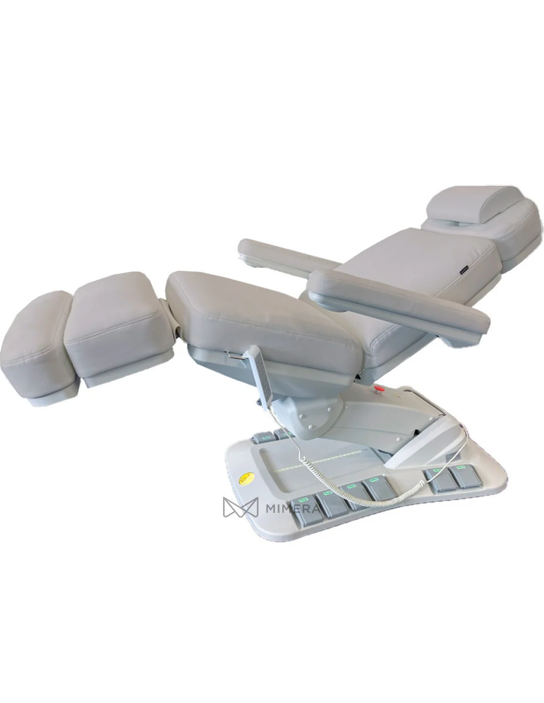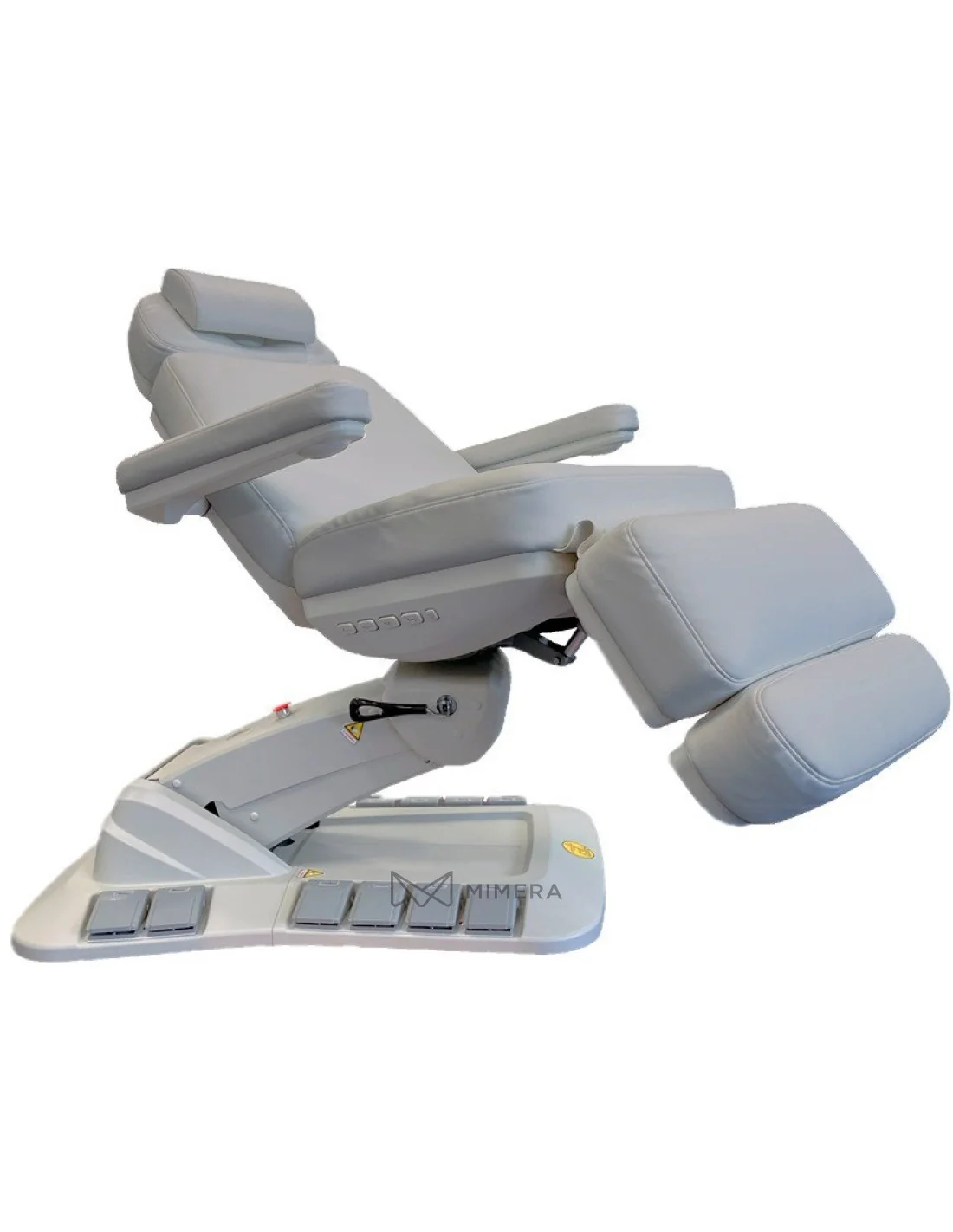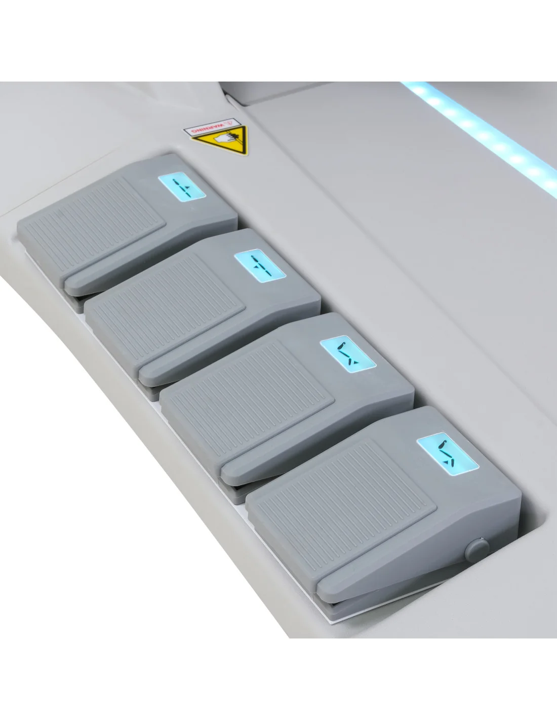 Sie ist mit einer extra weichen, mehrlagigen Polsterung aus PU-Mikroleder und einem glatten Muster (Microgoove) ausgestattet, das Ihren Kunden ein Lächeln ins Gesicht zaubern wird. Deren Komfort wird durch die eingebaute Heizfunktion unterstützt, die jede Behandlung auch an kalten Tagen angenehmer macht. Zur Zufriedenheit Ihrer Kunden wird auch die LED-Beleuchtung mit wechselnden Farben beitragen, die die Tasten, die Pedale und sogar die Basis der Liege beleuchtet.