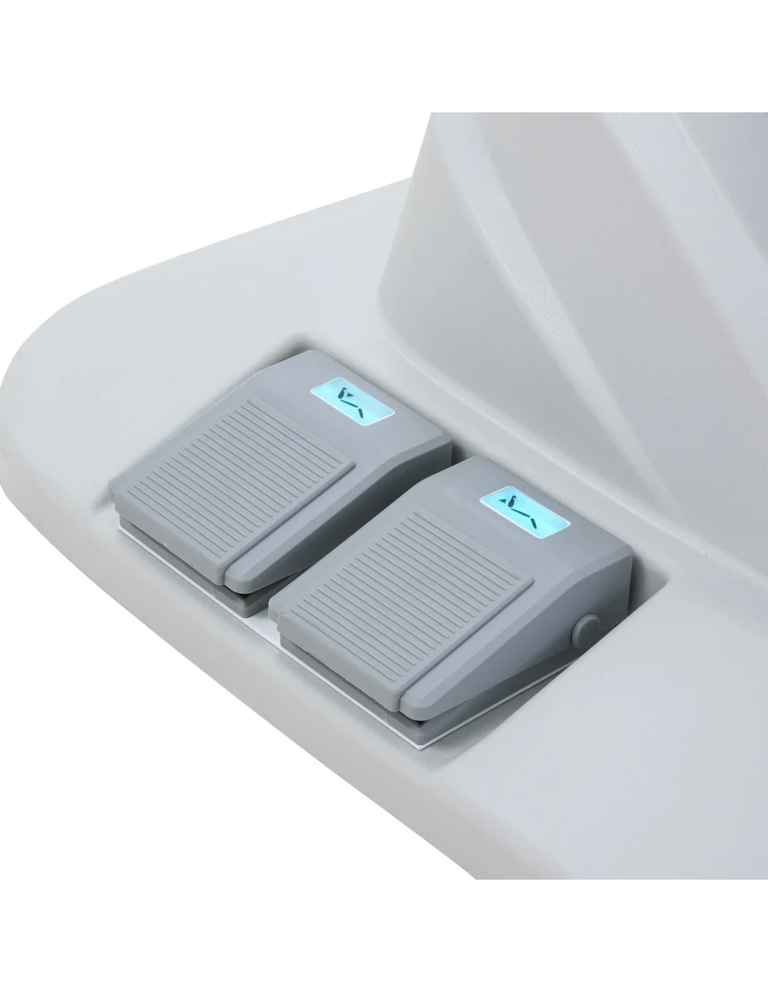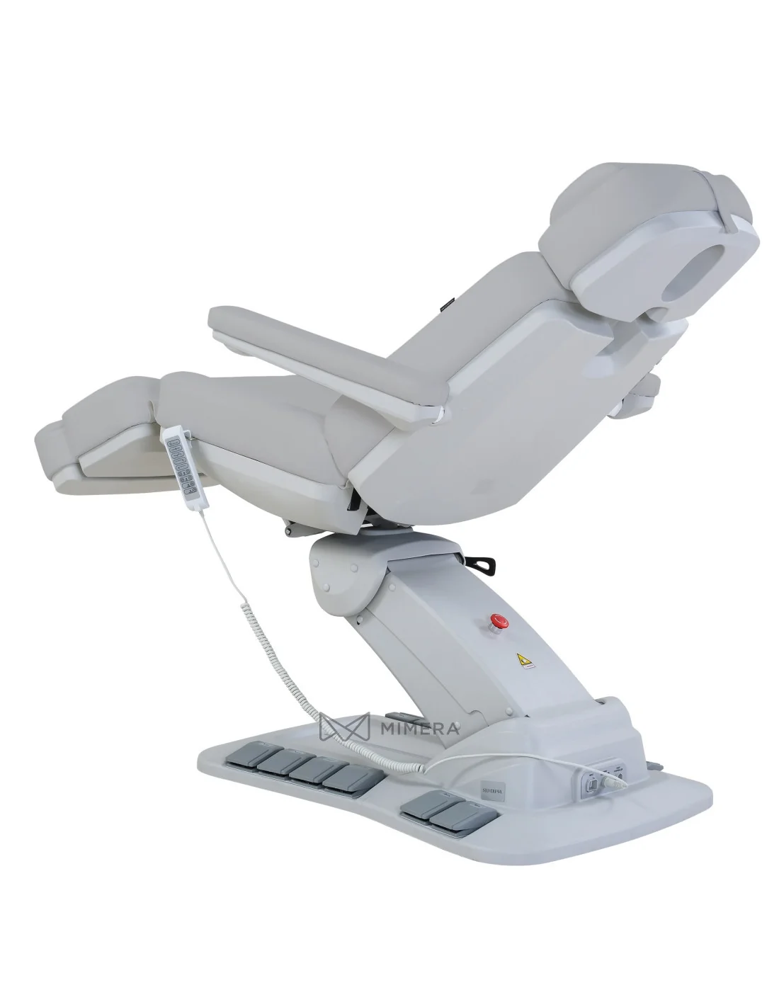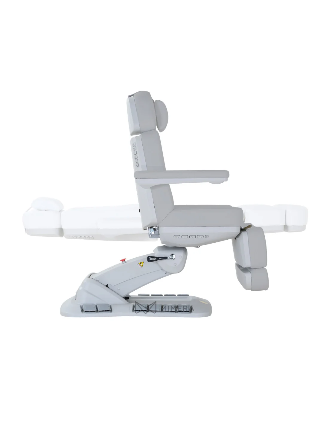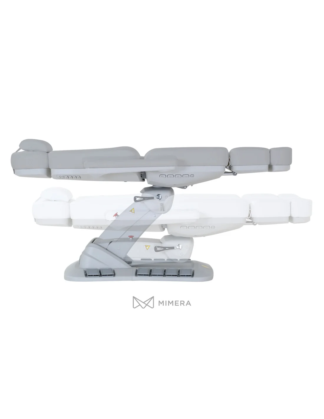 Sie ist mit einer extra weichen, mehrlagigen Polsterung aus PU-Mikroleder und einem glatten Muster (Microgoove) ausgestattet, das Ihren Kunden ein Lächeln ins Gesicht zaubern wird. Deren Komfort wird durch die eingebaute Heizfunktion unterstützt, die jede Behandlung auch an kalten Tagen angenehmer macht. Zur Zufriedenheit Ihrer Kunden wird auch die LED-Beleuchtung mit wechselnden Farben beitragen, die die Tasten, die Pedale und sogar die Basis der Liege beleuchtet.