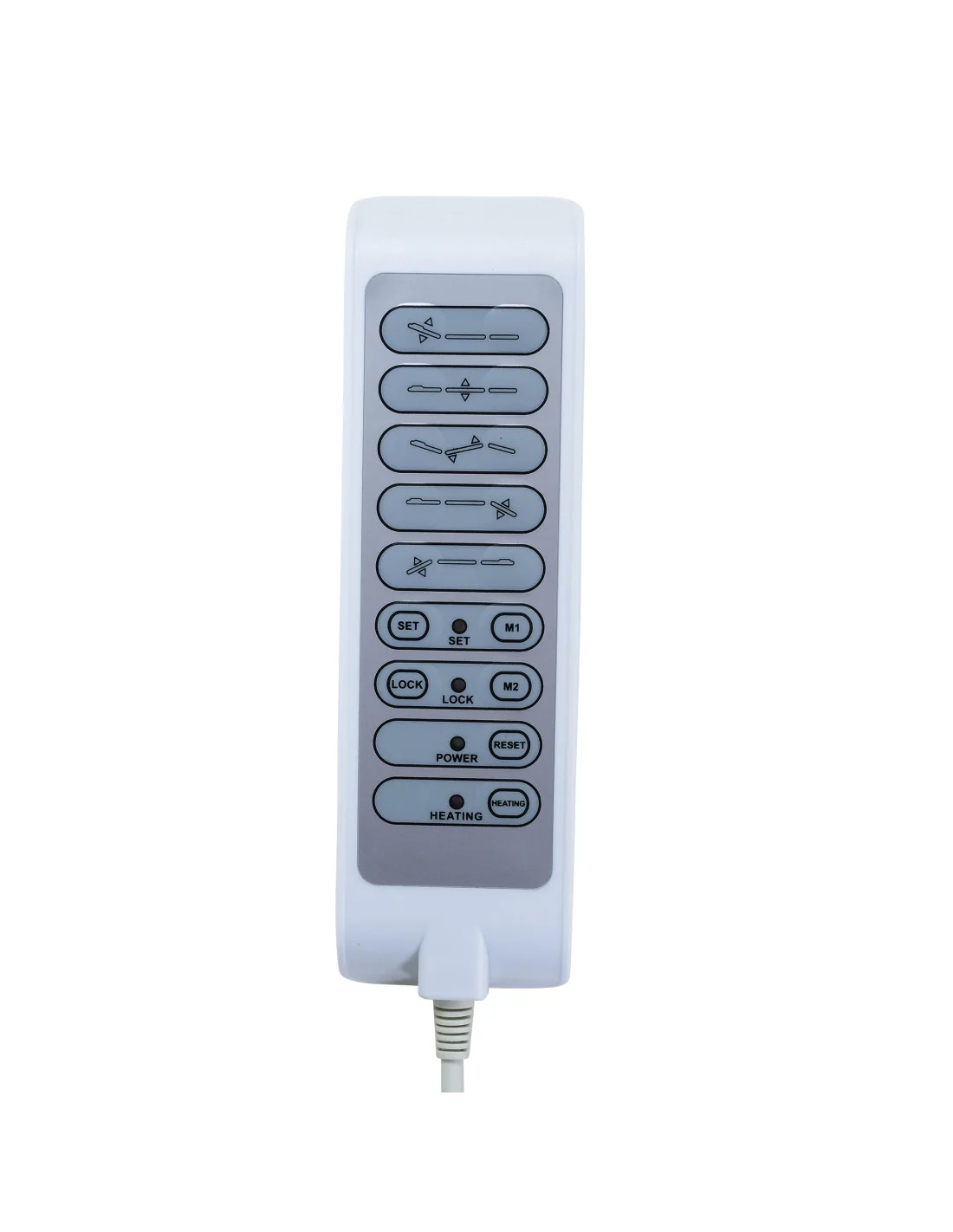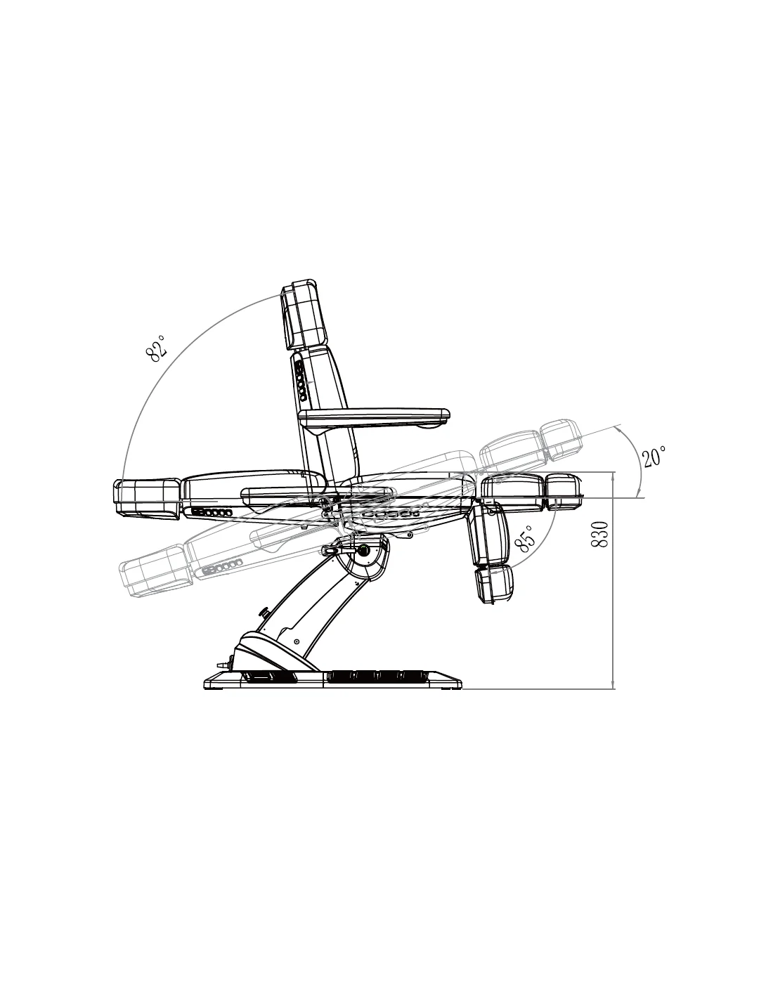 - 4 leise Motoren für die elektrische Steuerung von Höhe (51-83cm), Rückenlehne (0°~82°), Neigung der Liege (0°~20°) und Fußstütze (0°~85°)