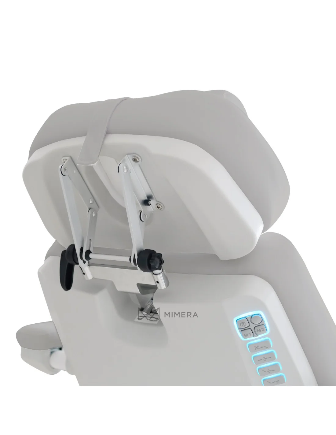 Die Kopfstütze ist verstellbar und hat ein abnehmbares Kopfkissen und eine Gesichtsausschnitt. Sie kann um bis zu 15 cm verlängert werden.