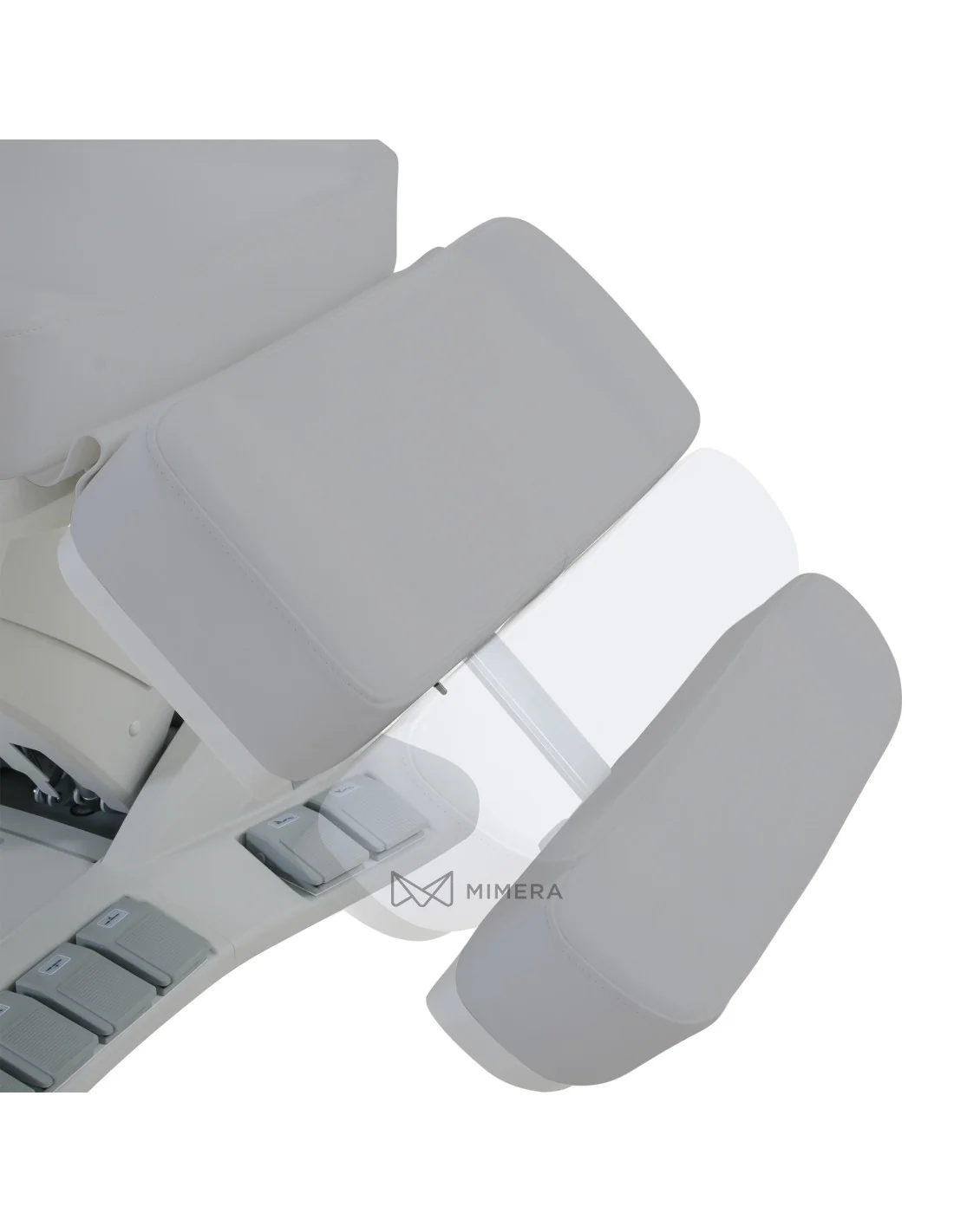 Das Beinteil der Liege ist elektrisch in einem Winkel von 0-85° klappbar und kann in der Länge stufenlos manuell verstellt und um bis zu 15 cm verlängert werden.