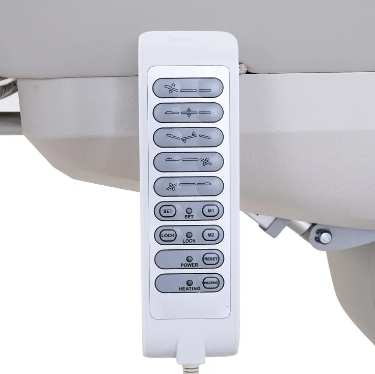 Die wichtigen Vorteile dieser Liege sind die Funktionen RESET, LOCK und Sicherheitssensor. Mit der RESET-Funktion können Sie die Liege auf Knopfdruck wieder in die Ausgangsposition bringen. Mit der LOCK-Funktion können Sie die gewählte Position der Liege fixieren (nur mit der manuellen Fernbedienung möglich).