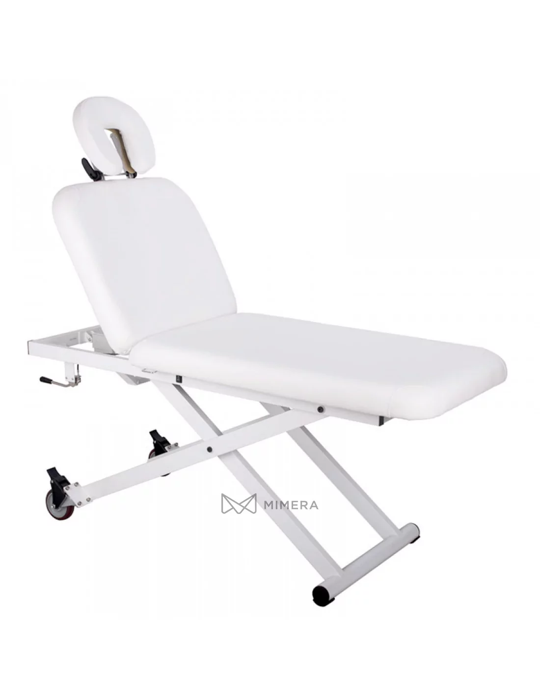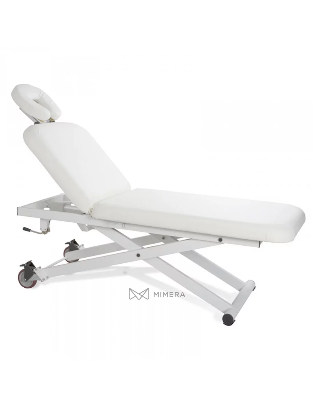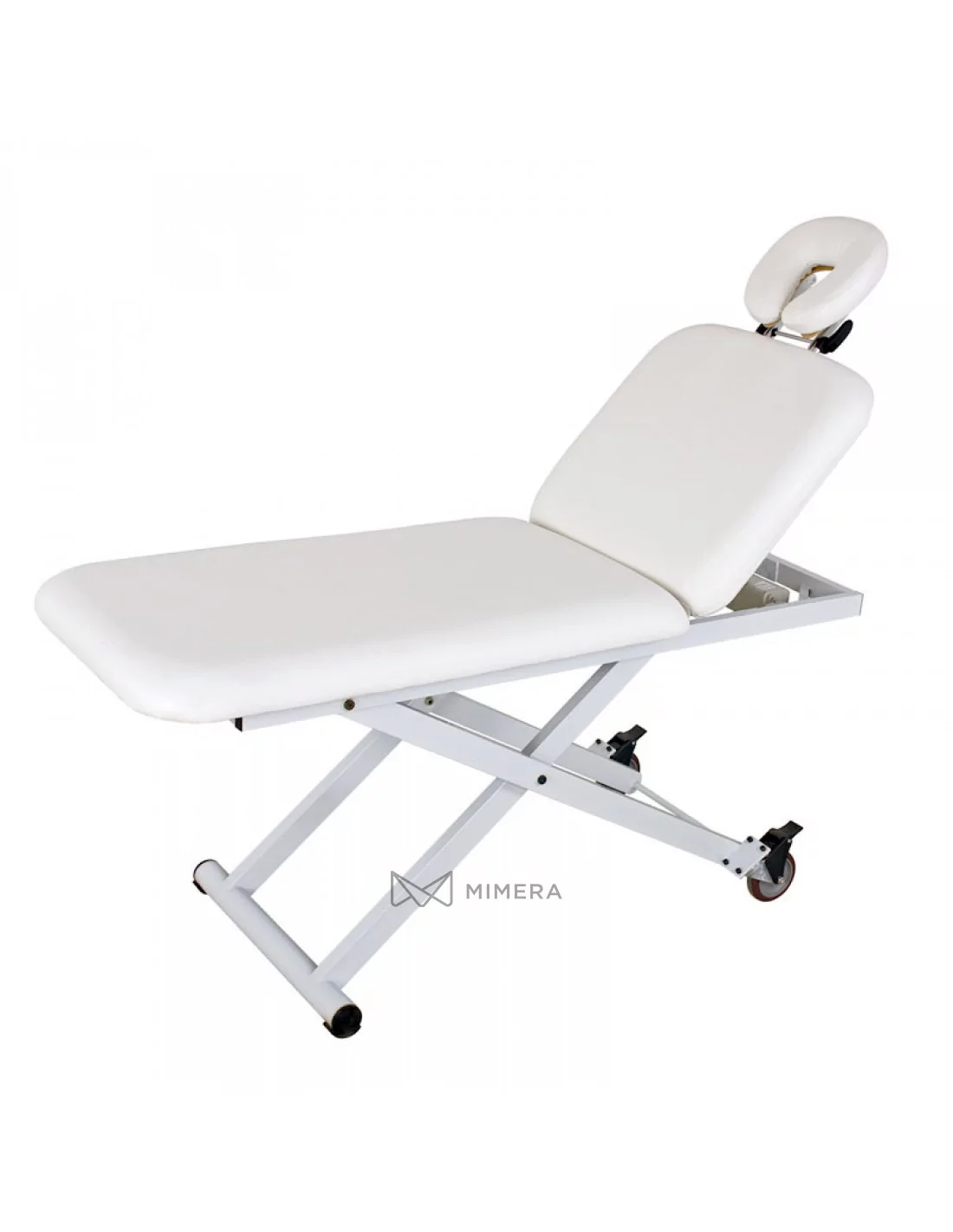Ein elektrischer Massagetisch bestehend aus zwei Teilen und einer stabilen Konstruktion. Ausgestattet mit einem hochwertigen Motor zur Höhenverstellung dank einem Schalter, der an der Konstruktion befestigt ist. Die Neigung des Rückens ist mit einer Gasdruckfeder einstellbar. Die Kopfstütze kann manuell eingestellt werden. Räder ermöglichen eine leichte Bewegung im Raum.