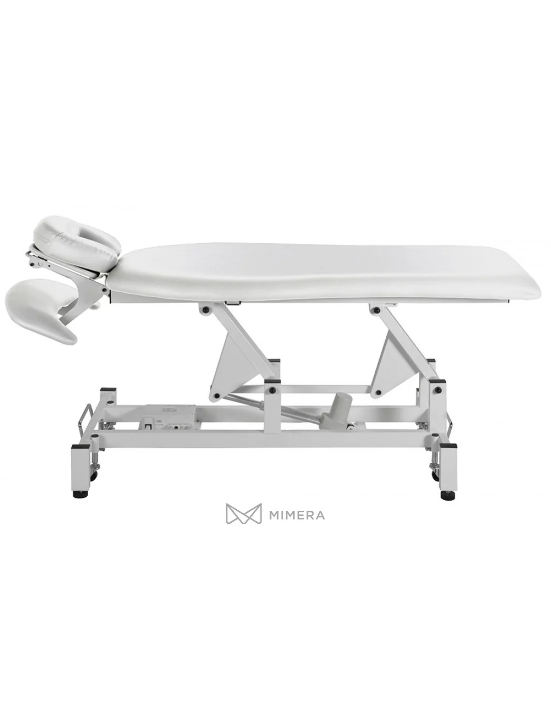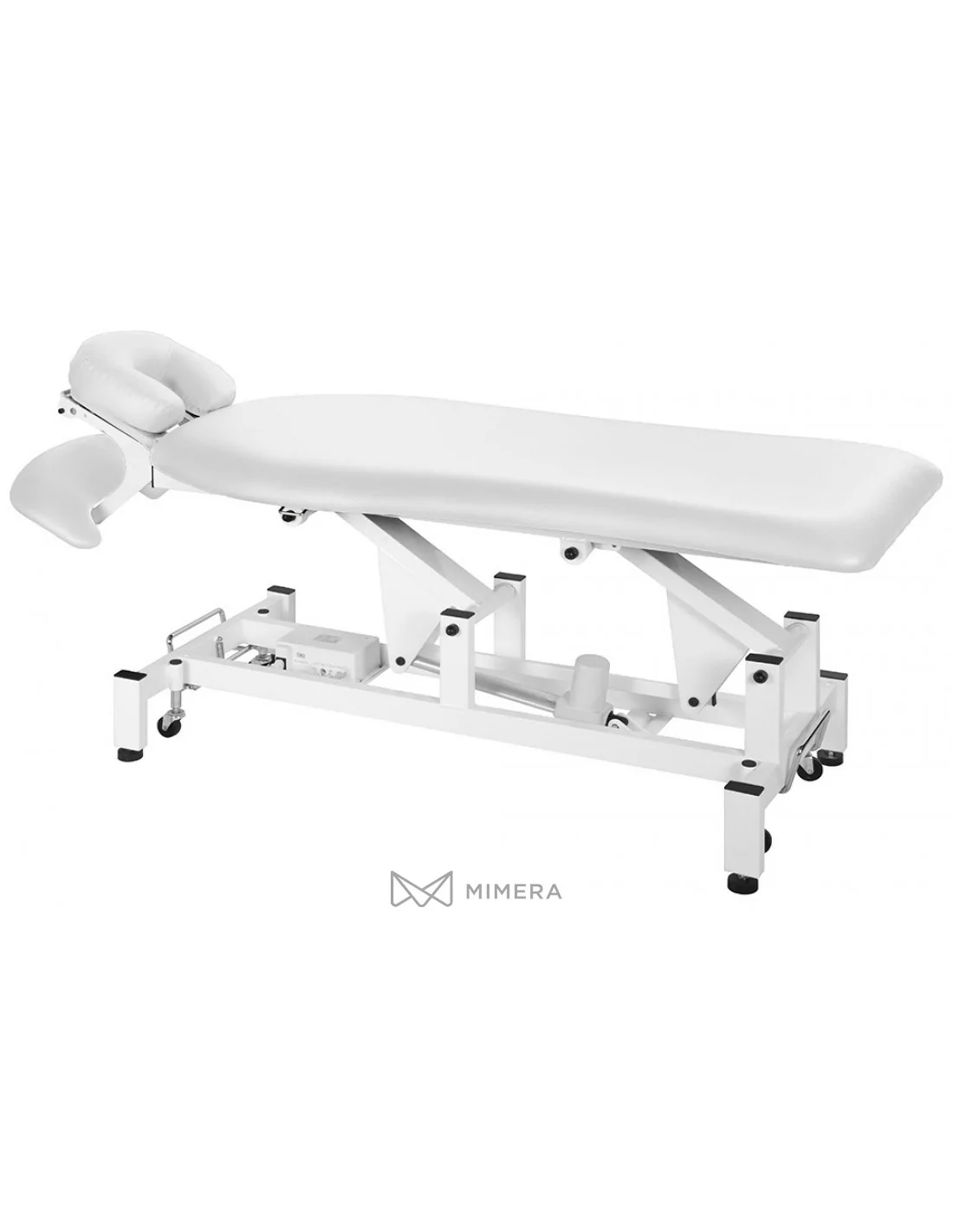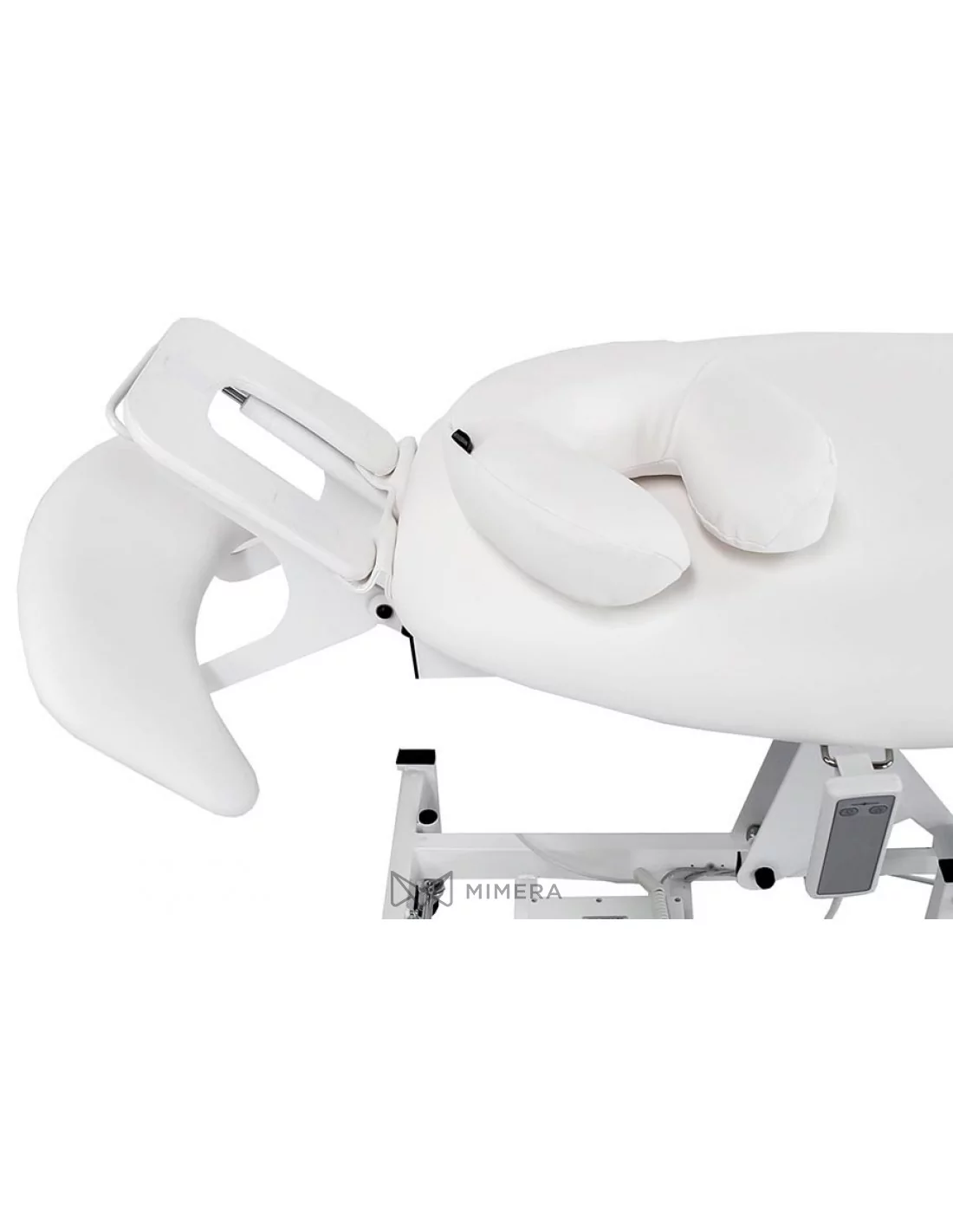 Die einteilige Massageliege KERY FACE E1 ist mit einem Motor zur Steuerung der Liegenhöhe ausgestattet. Die Liegenhöhe wird mit der Taste an der Seite eingestellt. Die Massageliege ist interessant geformt und das Körpergewicht wird gleichmäßig über die gesamte Länge der Liege verteilt, so dass die Muskeln während der Prozedur völlig entspannt sind. Unter der Kopfstütze, die einen Ausschnitt für das Gesicht hat, befindet sich eine geformte Armlehne. Die Kopfstütze und die Armlehne sind strukturell miteinander verbunden, sodass beim Einstellen der Neigung werden beide Teile gleichzeitig wie eine Einheit eingestellt. Die Neigung liegt im Bereich von 0 - 25 ° nach unten und 0 - 30 ° nach oben.