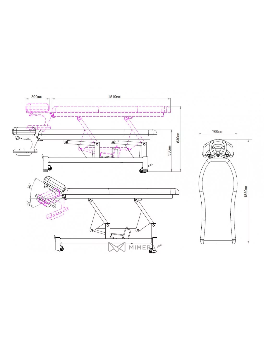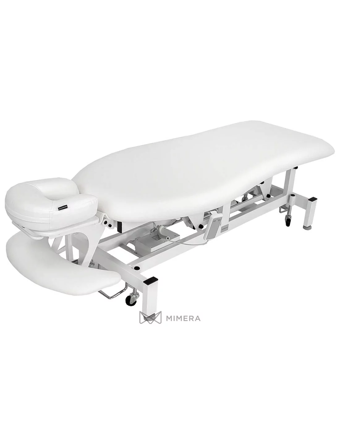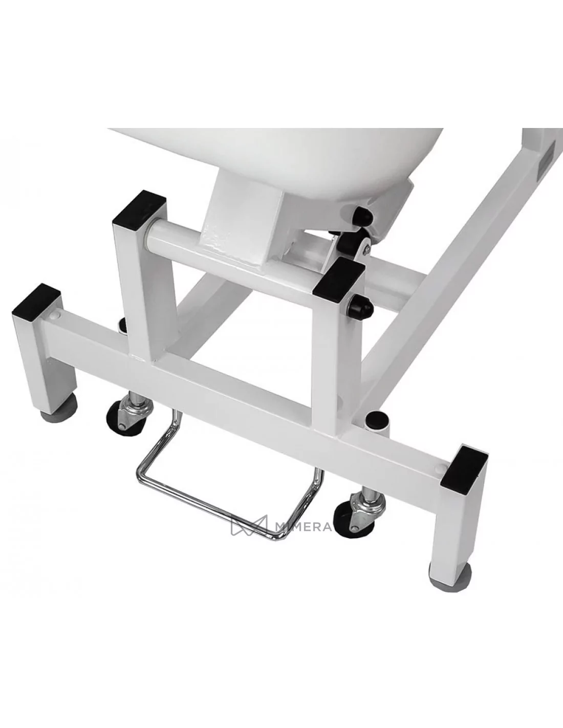 Die einteilige Massageliege KERY FACE E1 ist mit einem Motor zur Steuerung der Liegenhöhe ausgestattet. Die Liegenhöhe wird mit der Taste an der Seite eingestellt. Die Massageliege ist interessant geformt und das Körpergewicht wird gleichmäßig über die gesamte Länge der Liege verteilt, so dass die Muskeln während der Prozedur völlig entspannt sind. Unter der Kopfstütze, die einen Ausschnitt für das Gesicht hat, befindet sich eine geformte Armlehne. Die Kopfstütze und die Armlehne sind strukturell miteinander verbunden, sodass beim Einstellen der Neigung werden beide Teile gleichzeitig wie eine Einheit eingestellt. Die Neigung liegt im Bereich von 0 - 25 ° nach unten und 0 - 30 ° nach oben.