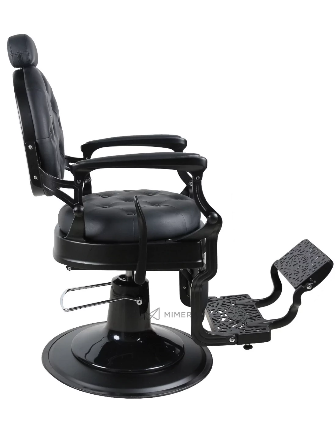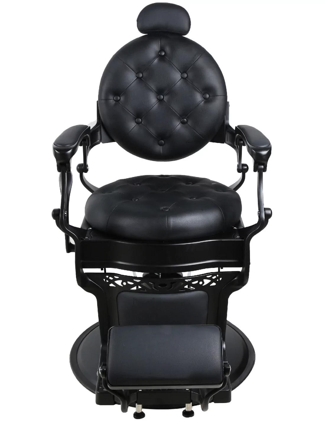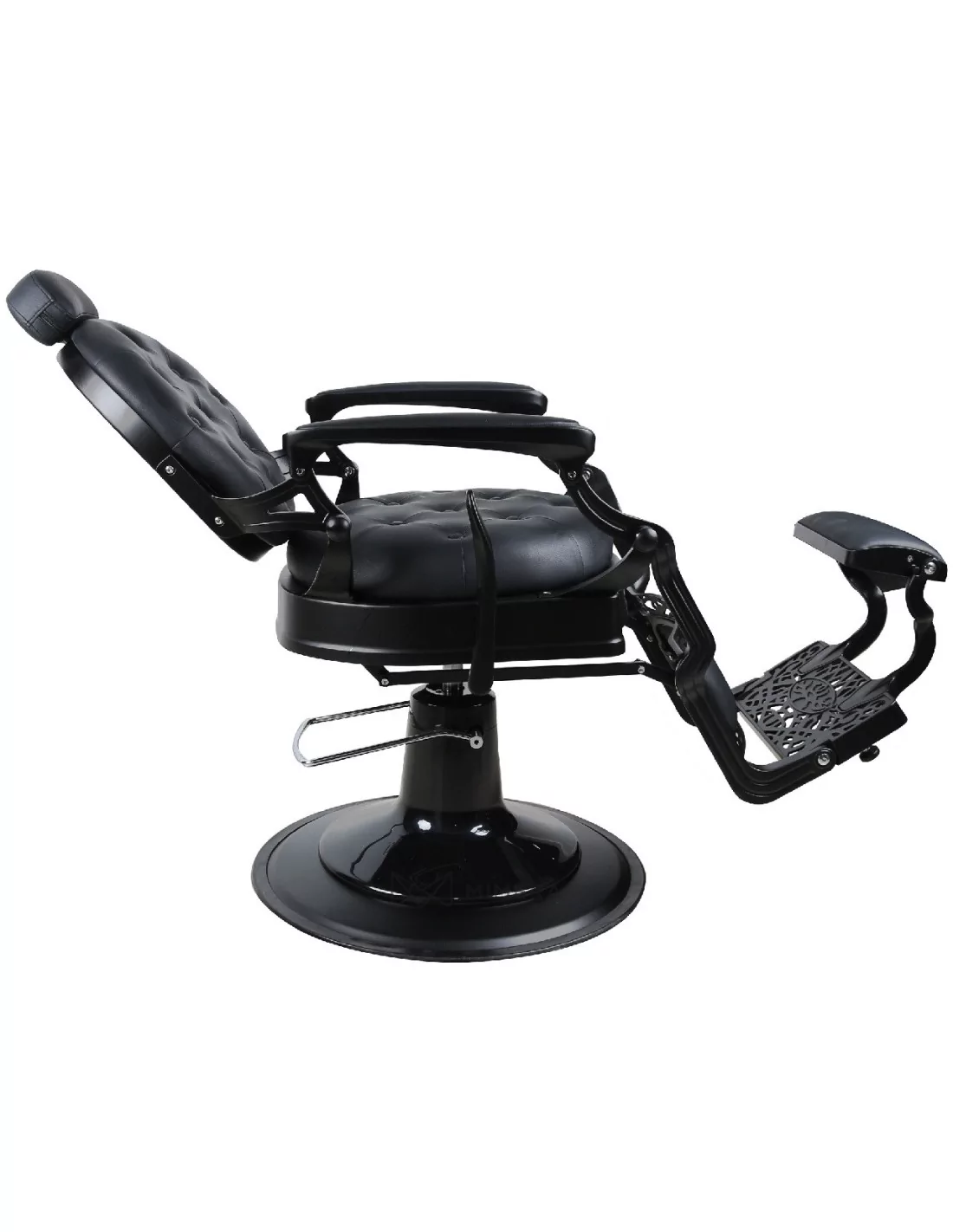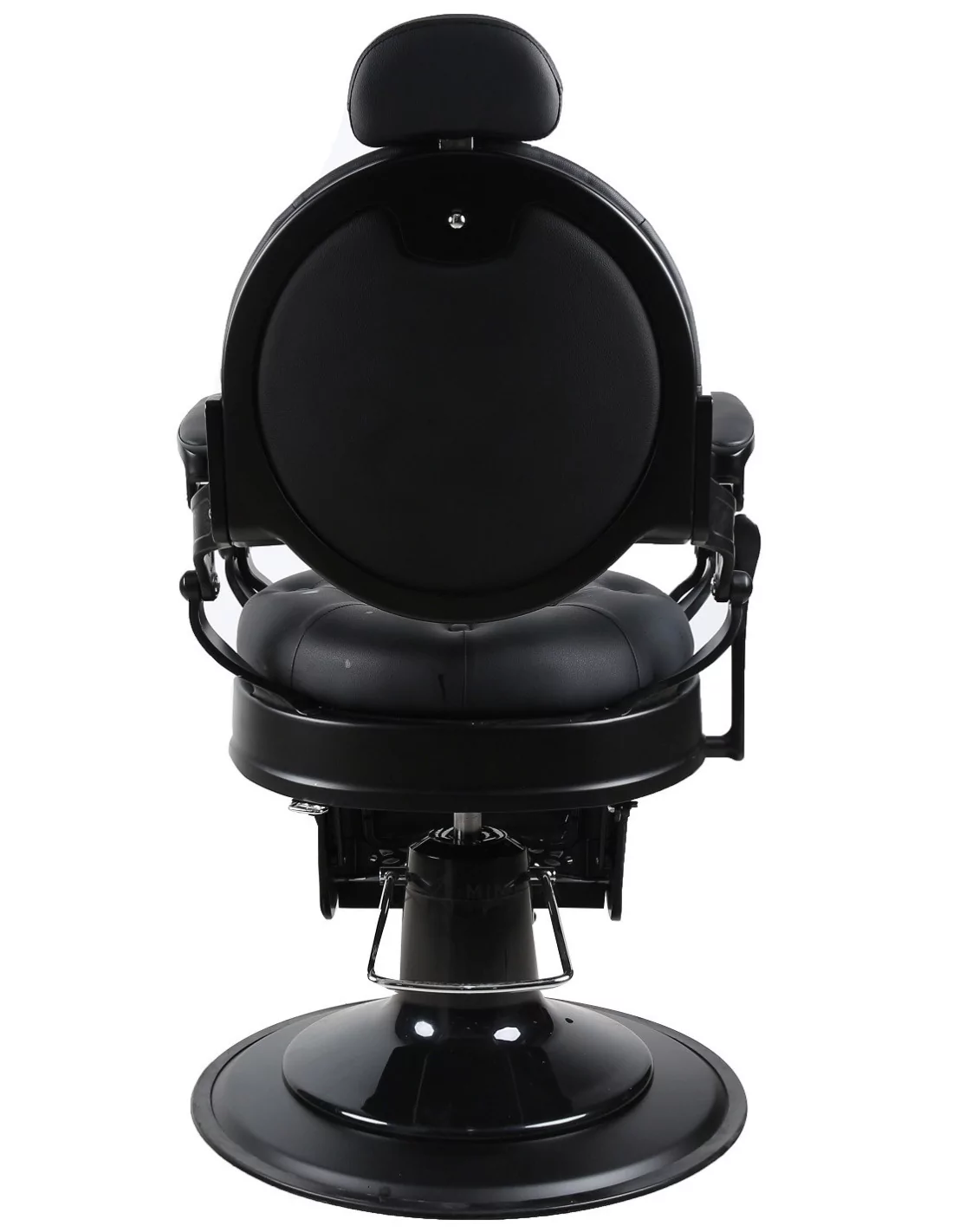 Der Barberstuhl RETRO BLACK ist ein echtes Meisterwerk. Sein massiver Edelstahlkörper in Mattschwarz mit einer großen massiven Basis ist extrem stabil und gut ausbalanciert.