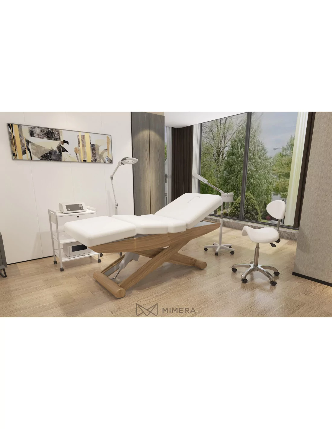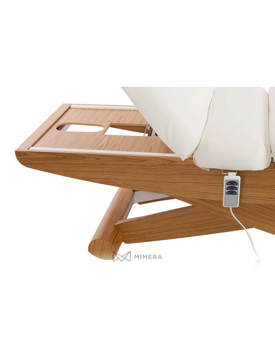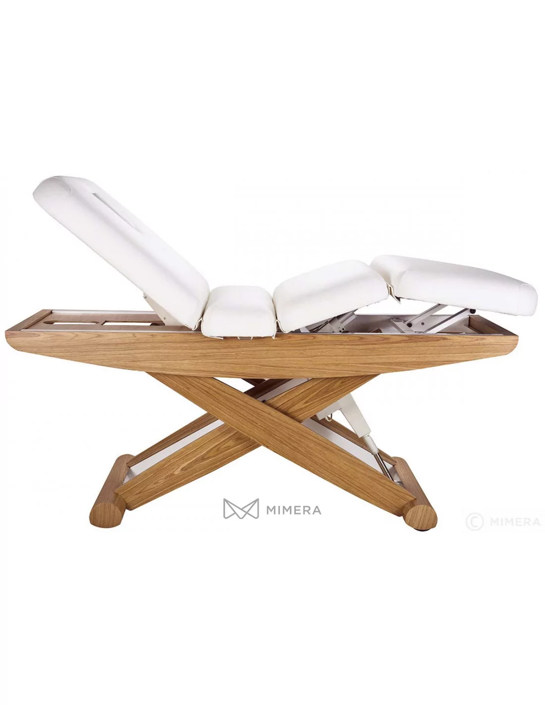 Die Liege hat eine scherenförmige Metallstruktur mit natürlicher Holzveredelung, die dem Raum eine sehr beeindruckende Wirkung verleiht. Die bequeme PU-Polsterung von höchster Qualität ermöglicht eine einfache Pflege und Wartung. Die Liege hat außerdem einen Gesichtsausschnitt.