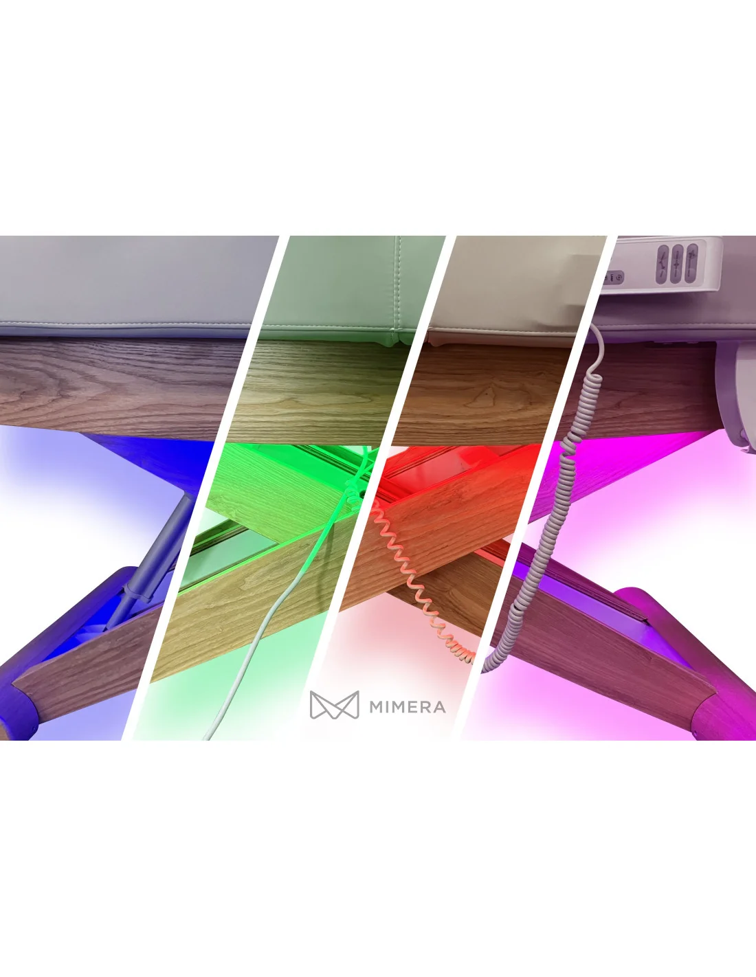 Zur Verbesserung des visuellen Erlebnisses trägt die Hintergrundbeleuchtung der LED-Streifen bei, deren Farbe und Intensität in sechs Farben und 14 Modi verändert werden kann.