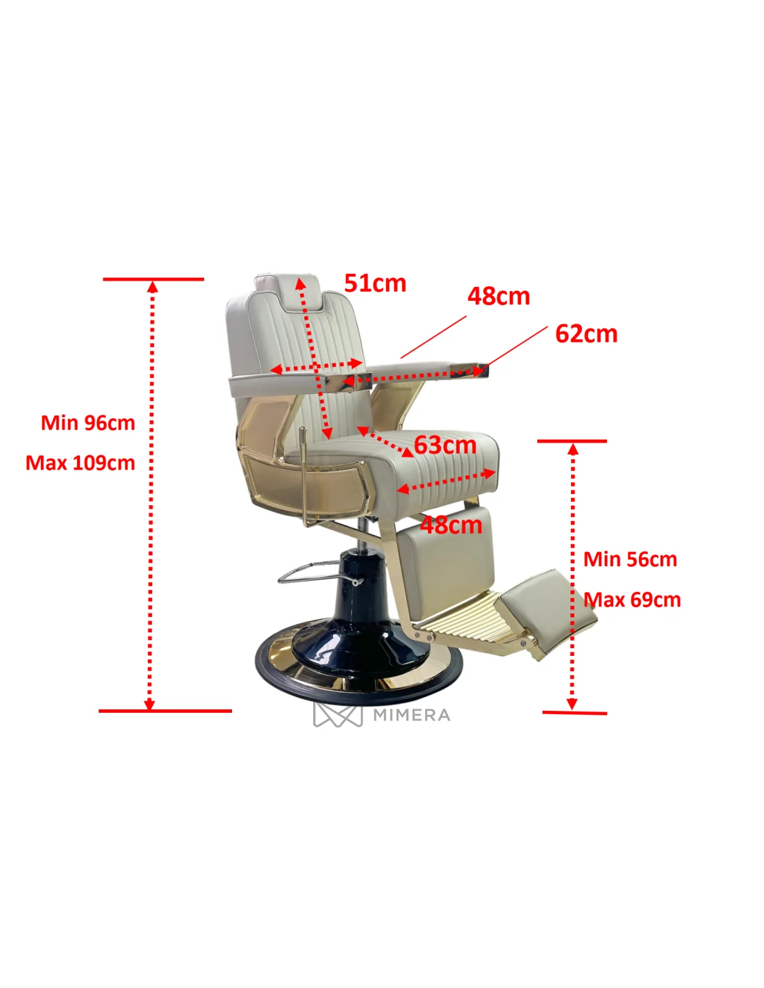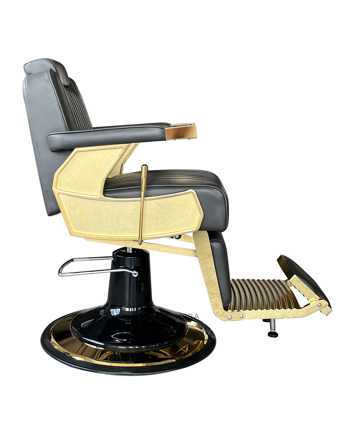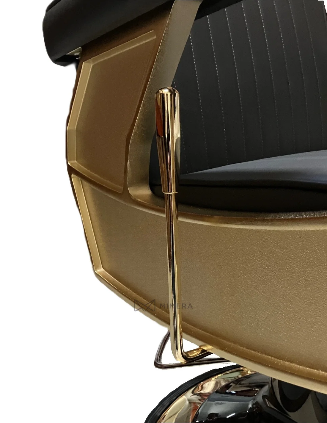 The exquisite NOBILE GOLD barber chair catches the eye with its unique design as well as its unique combination of colours and stitching. It will bring elegance to any exclusive space.