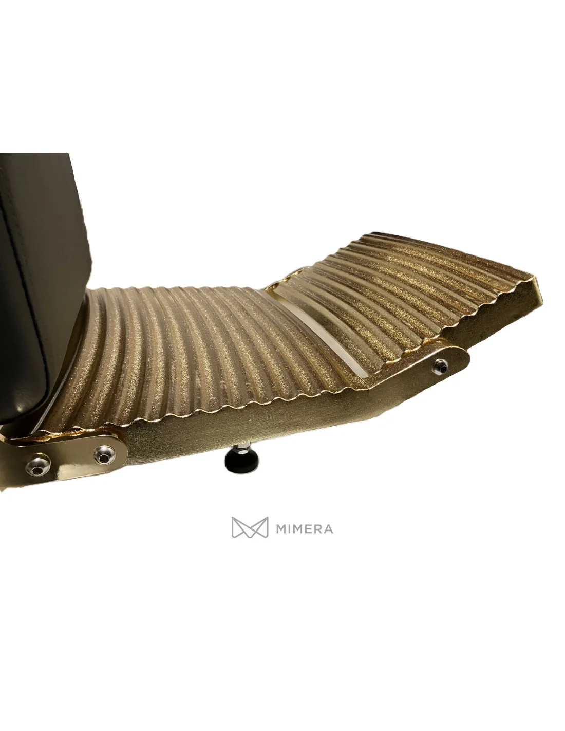 The sturdy metal footrest with feet is stylishly complemented by padding for the comfort of the client's calves. The armrests are also upholstered to make the client's experience more comfortable.