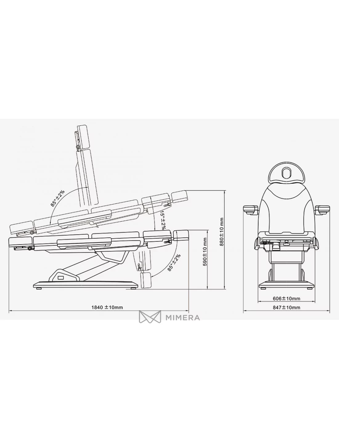 • 3 motors for electric height control (58-89cm), armrests (0-85 °) and tilt (0-15 °)