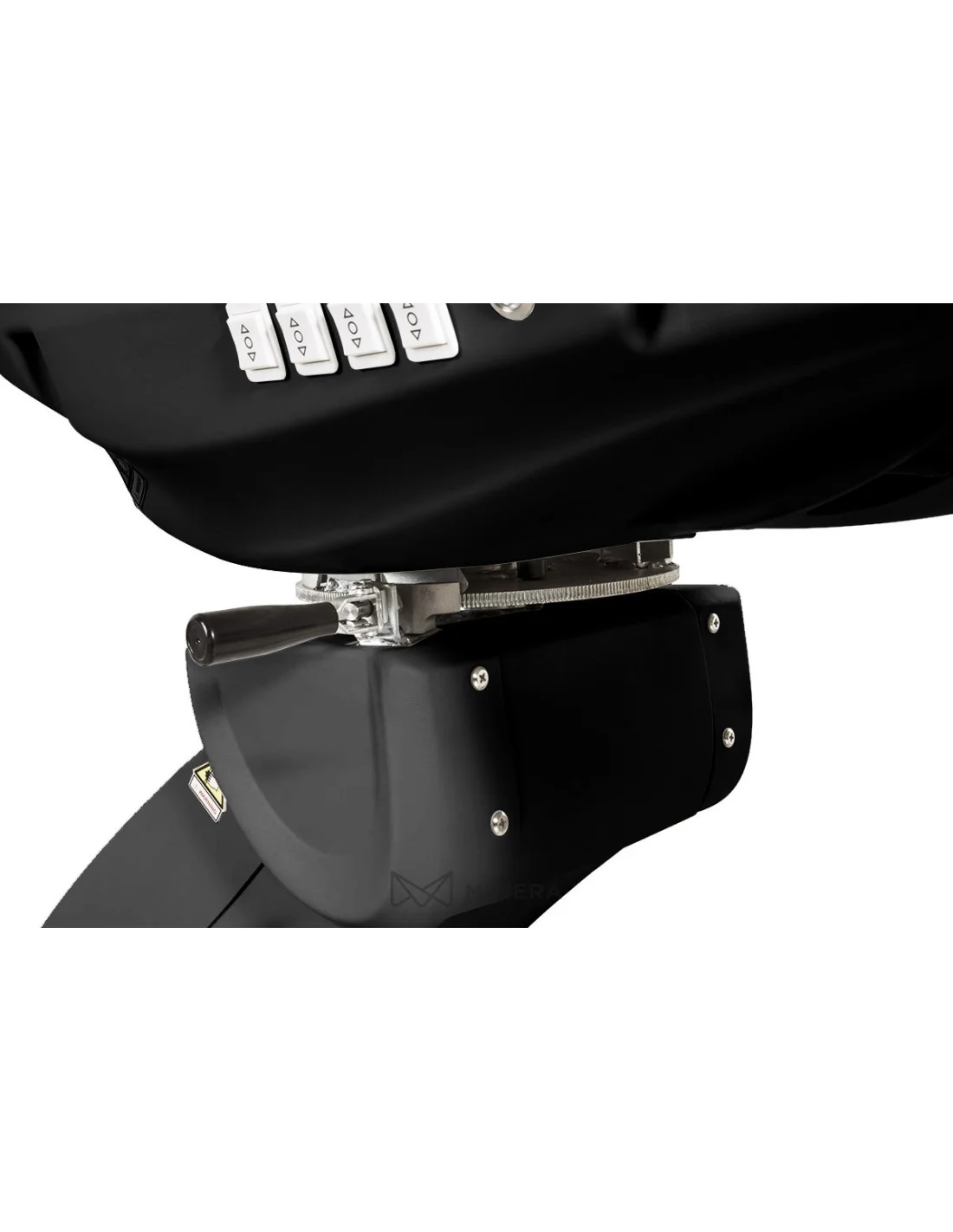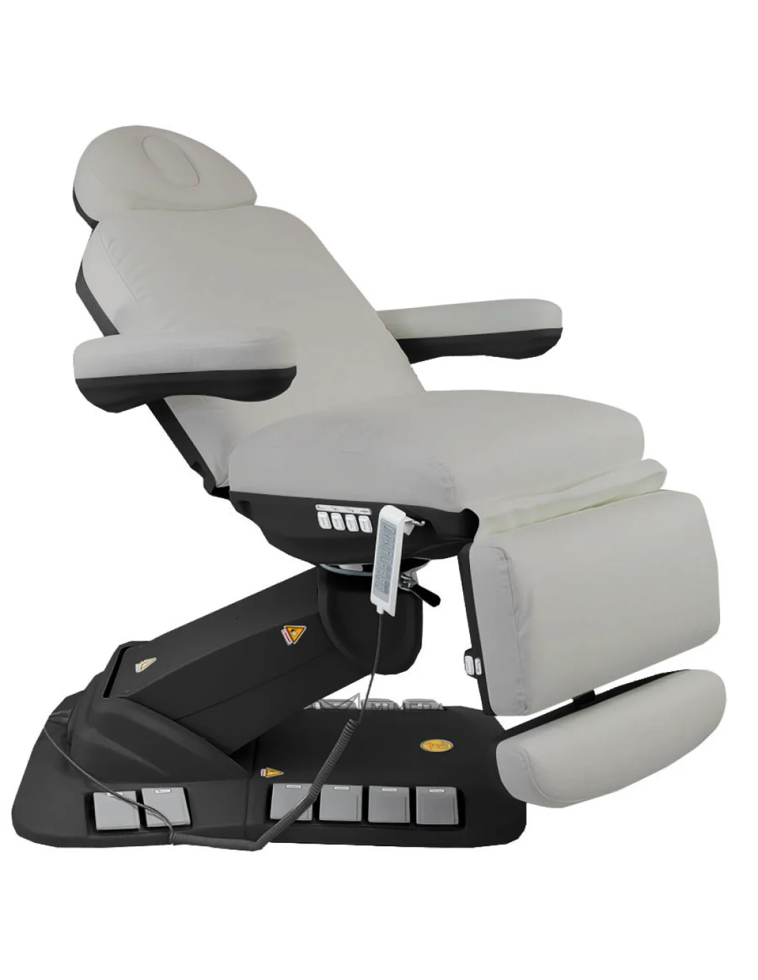 The NICO DELUX PLUS E4 cosmetic bed with heating is one of the few swivel chairs on the market. It has 4 motors that regulate the height, back and footrest and inclination of the bed. The uniqueness is that it can be positioned in three ways with buttons built into the back and seat, the pedal system integrated in the base, and the manual controller. It is also part of the package. Two functions LOCK and RESET allow you to fix the chosen position or return the lounger to the original position.