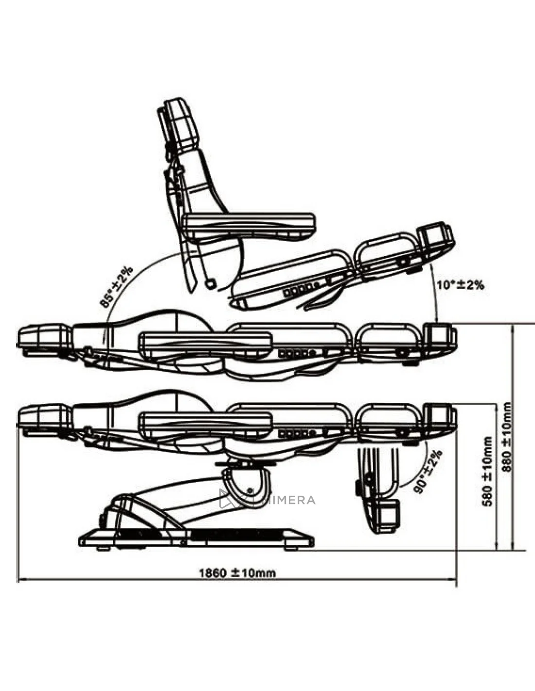 • 4 motors for electric height control (58-88cm), backrests (0 ° ~ + 85 °), recliner (0 ° ~ + 15 °) and foot section (-90 ° ~ 0 °)