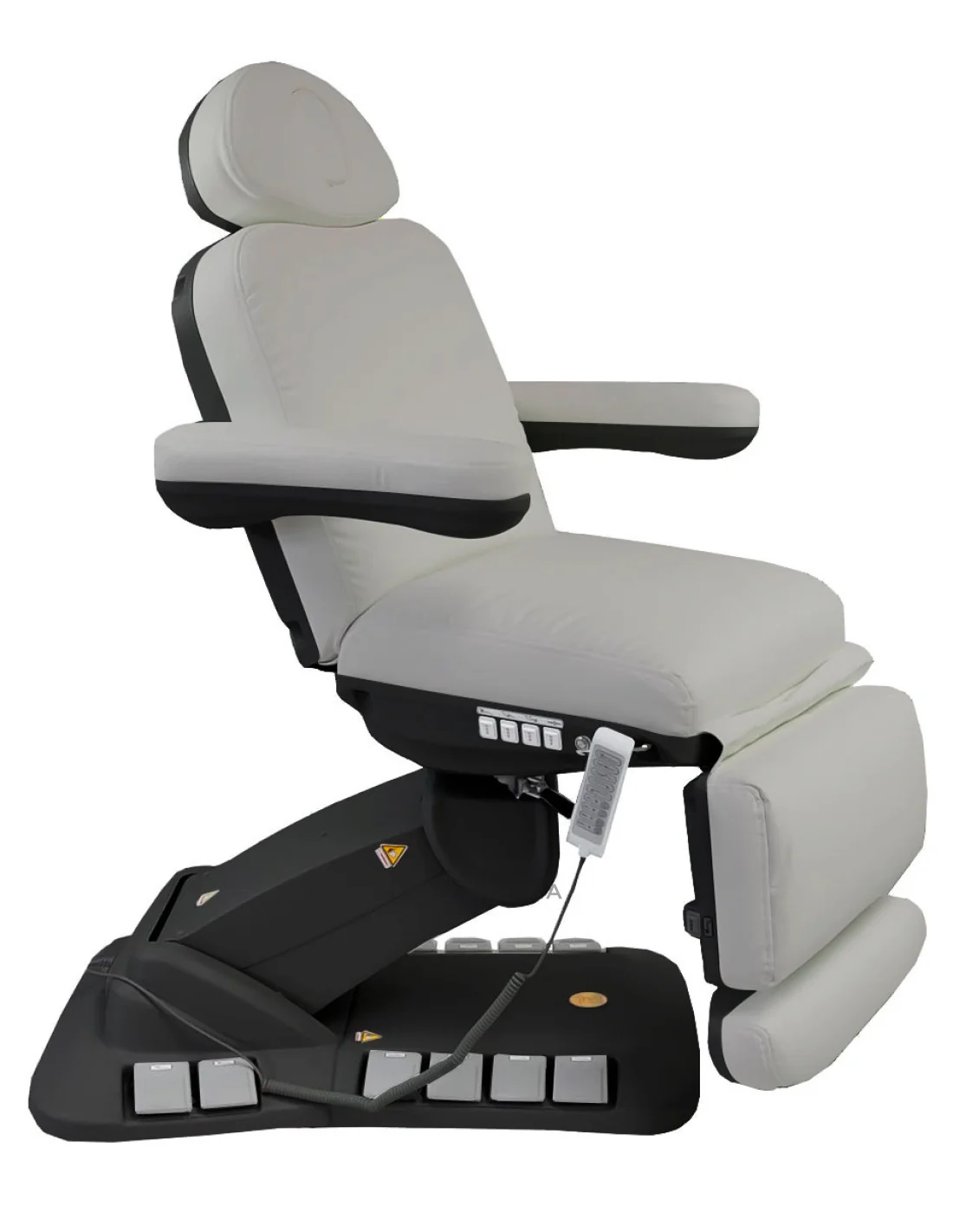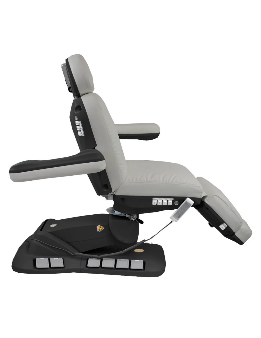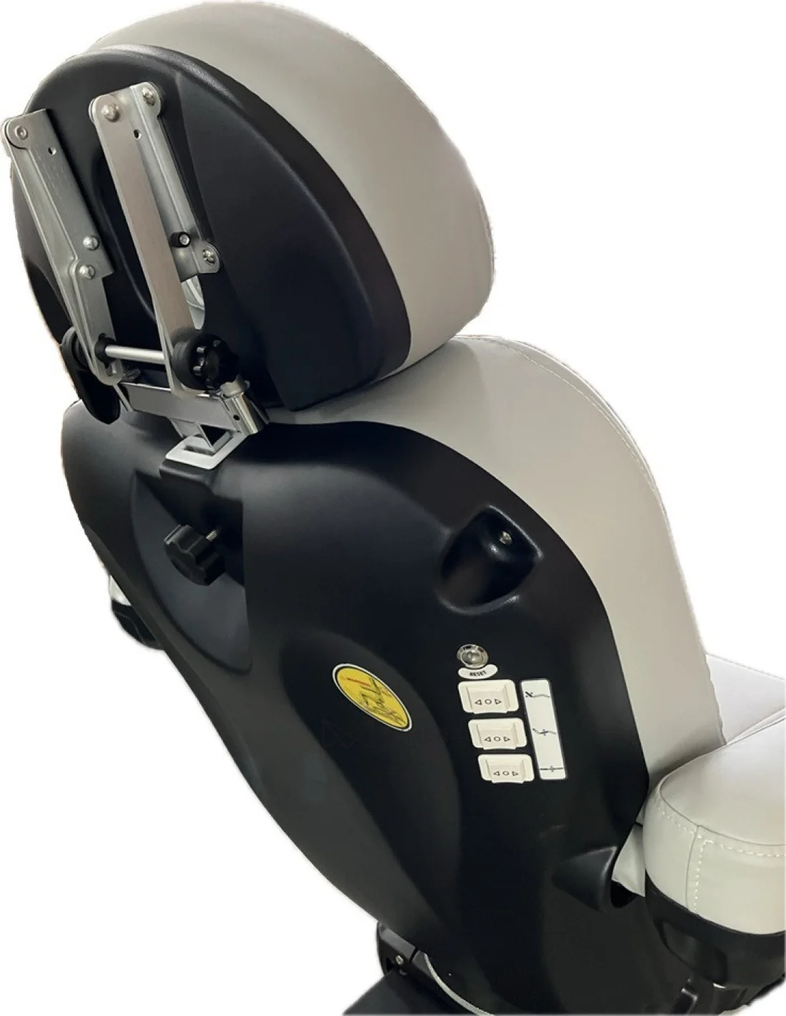 NICO DELUX PLUS E4 has a built-in heating, which guarantees a pleasant treatment even on cold days. It differs from the competition in that it rotates in both directions at an angle (~ 60 ° to + 60 °), when the chair can be rotated at the right angle. The headrest is 3D adjustable with a cut-out for the face and the foot part can be extended as needed. The armrests can be folded or removed for better access. The lounger adds comfort with the extra soft multi-layer padding coated with PU micro leather, which is easy to clean and does not require maintenance.