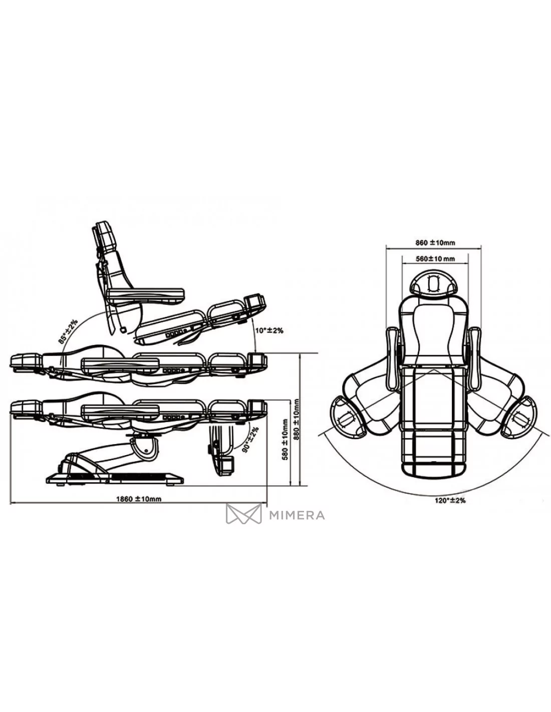 NICO DELUX PLUS E4 has a built-in heating, which guarantees a pleasant treatment even on cold days. It differs from the competition in that it rotates in both directions at an angle (~ 60 ° to + 60 °), when the chair can be rotated at the right angle. The headrest is 3D adjustable with a cut-out for the face and the foot part can be extended as needed. The armrests can be folded or removed for better access. The lounger adds comfort with the extra soft multi-layer padding coated with PU micro leather, which is easy to clean and does not require maintenance.