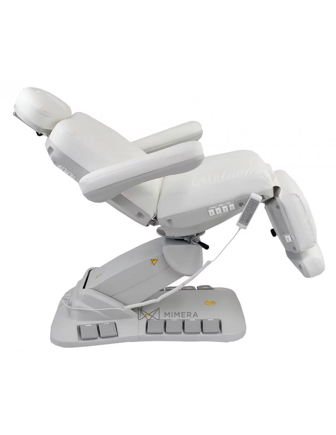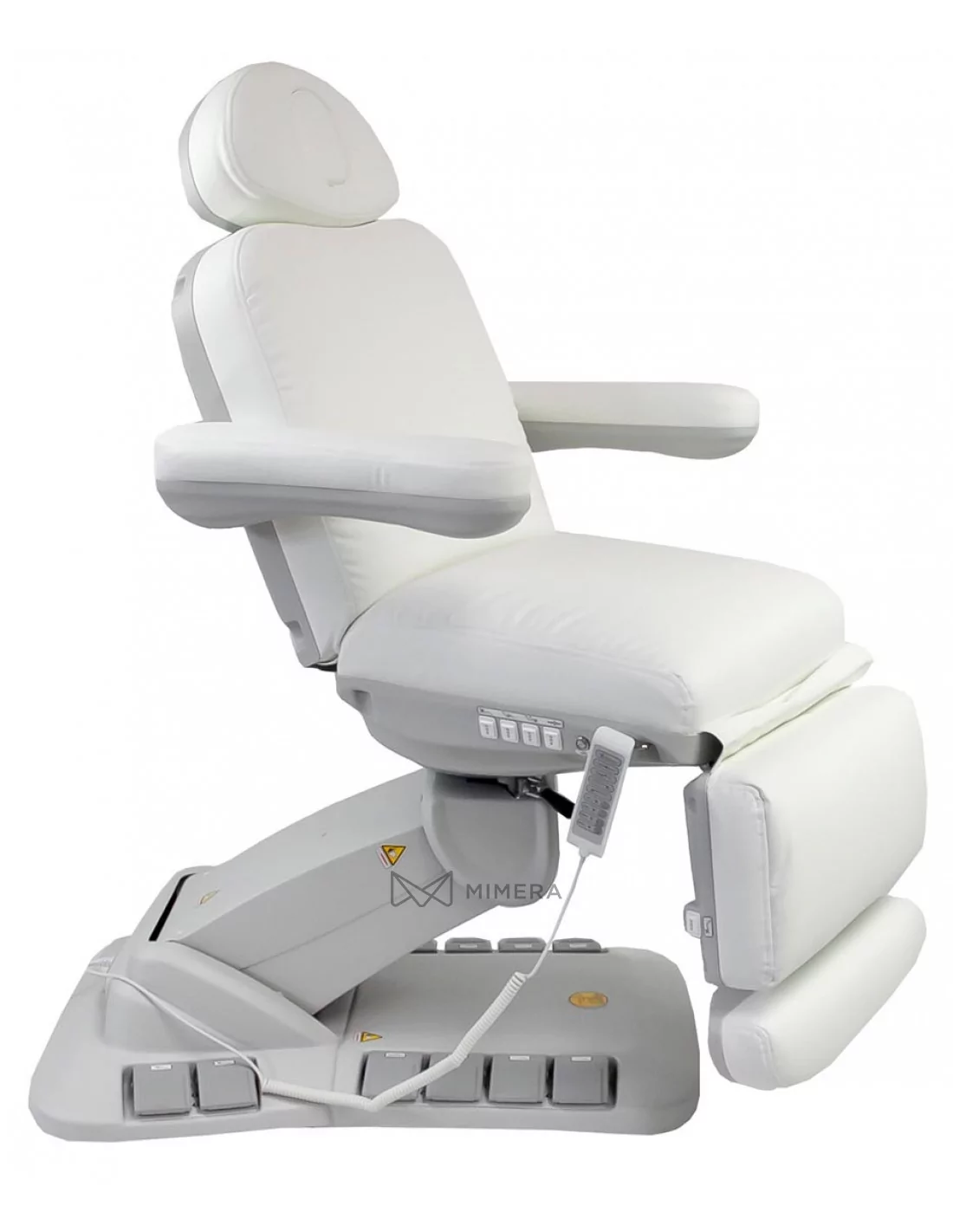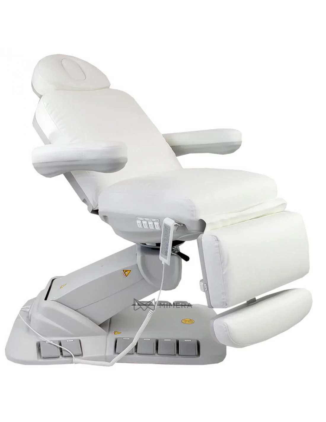 The NICO DELUX PLUS E4 cosmetic bed with heating is one of the few swivel chairs on the market. It has 4 motors that regulate the height, back and footrest and inclination of the bed. The uniqueness is that it can be positioned in three ways with buttons built into the back and seat, the pedal system integrated in the base, and the manual controller. It is also part of the package. Two functions LOCK and RESET allow you to fix the chosen position or return the lounger to the original position.