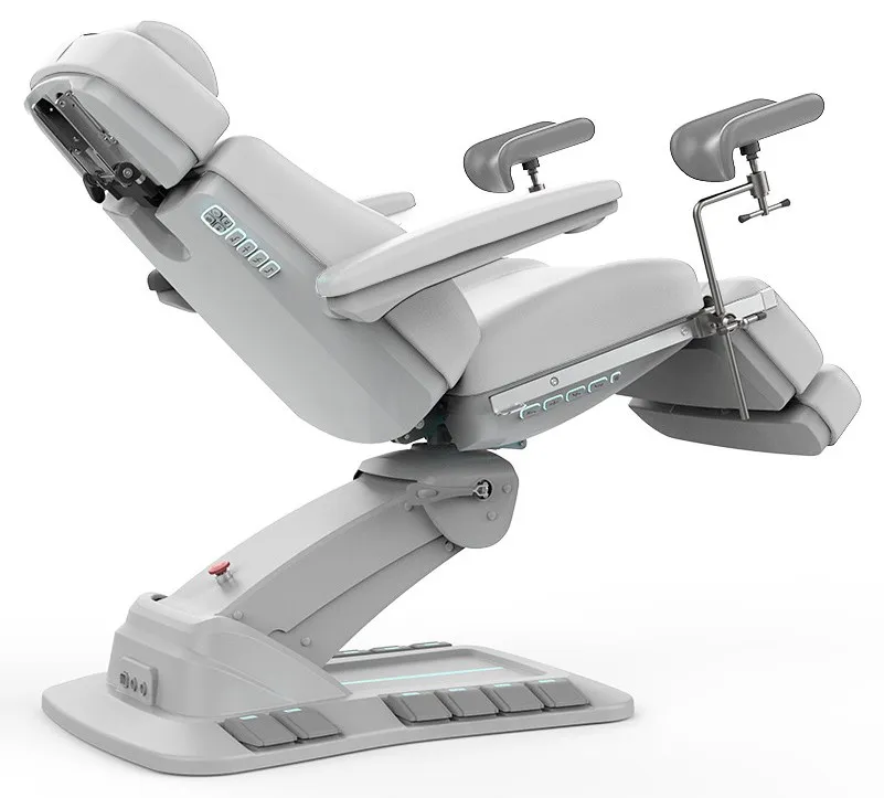 The RAMON GYNO DELUX E4 is a premium electric examination chair designed for gynecological and general medical procedures. Based on the RAMON DELUX PLUS E4, it has been optimized for clinical use, offering precise electrical control, easy maintenance, and maximum patient comfort.
