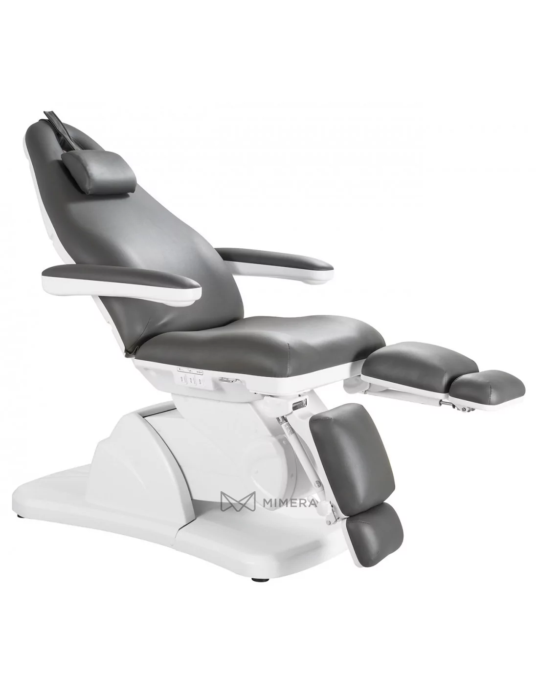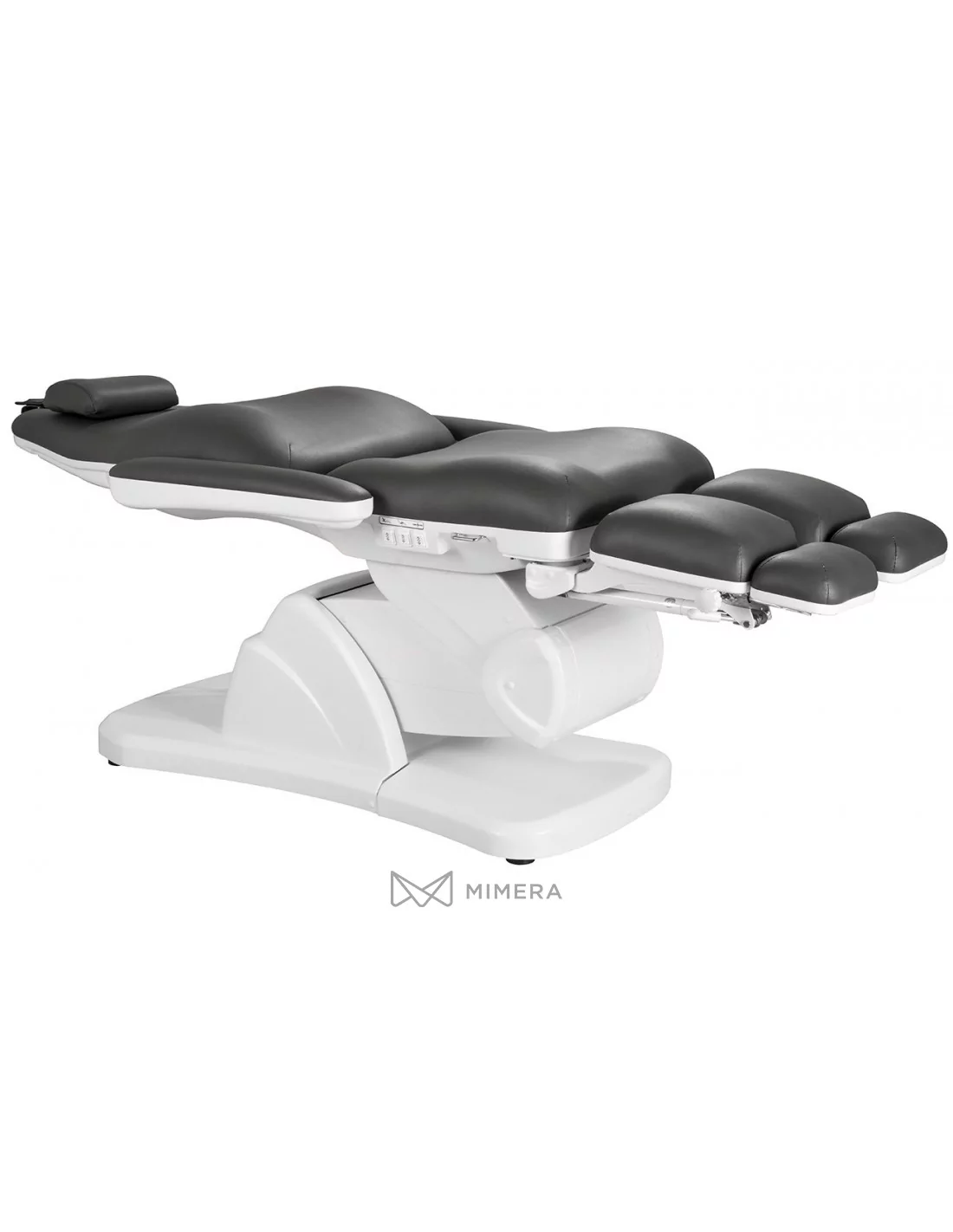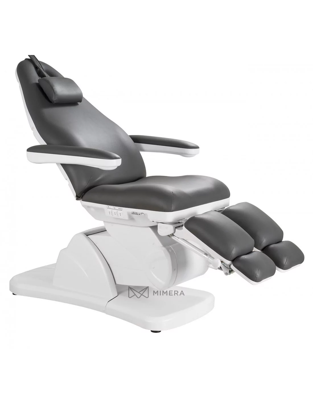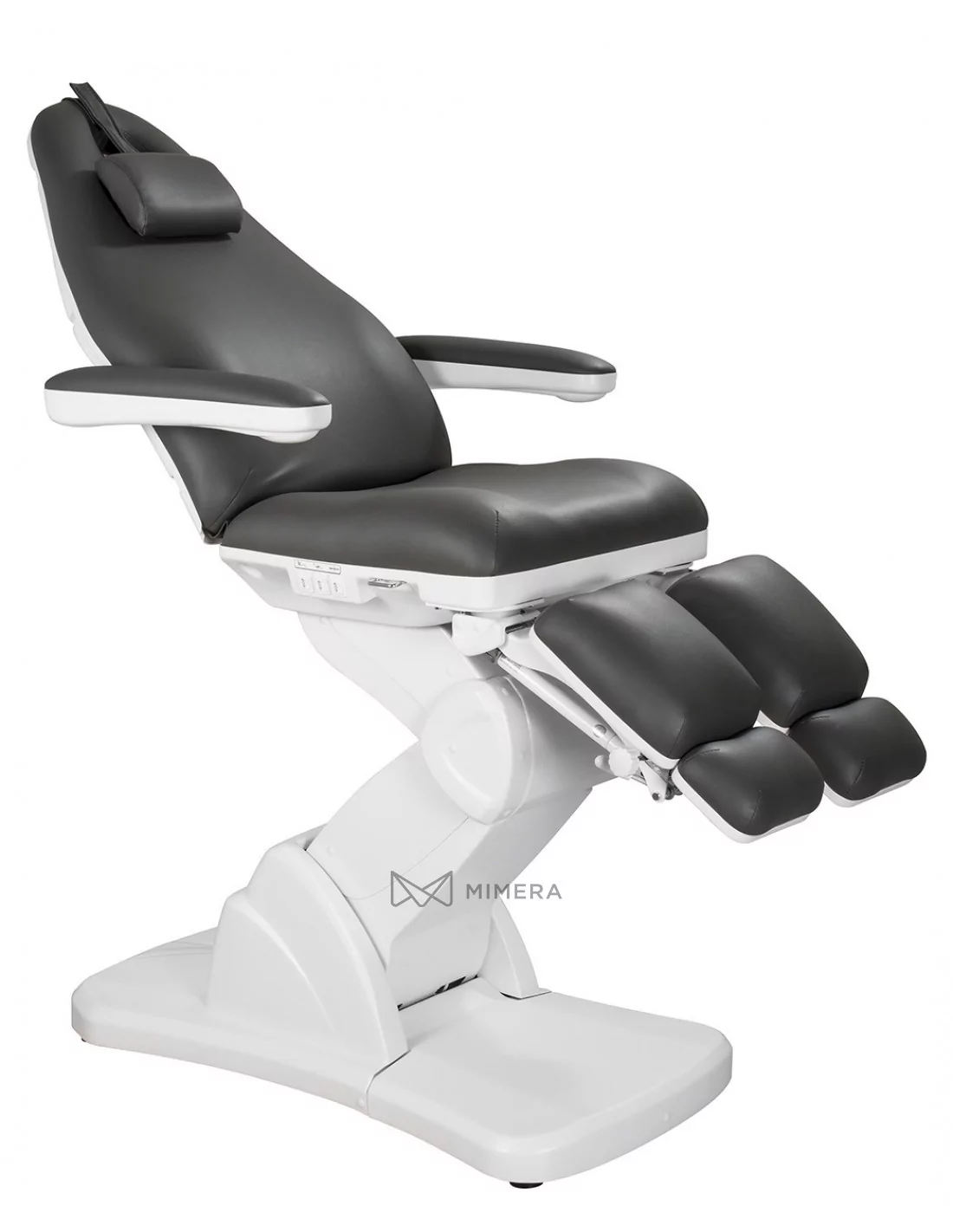 Stylish pedicure chair BARON with 3 motors to adjust the height, backrest and seat tilt. The legs are swiveling sideways by 90 °, vertically adjustable continuously by a pneumatic lever and are also extendable.