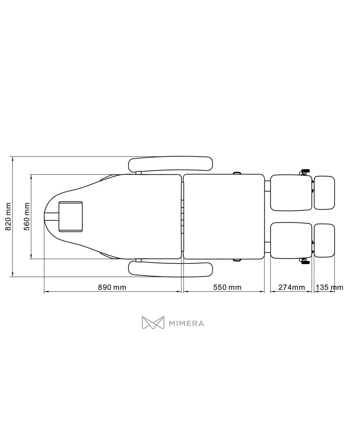 • 3 motors for height adjustment (62-106 cm, up to a height of 120cm in the cradle), backrest (0 ° ~ + 85 °), seat tilt (- 4 ° ~ + 10 °) and footrest (- 70 ° ~ 0 °)