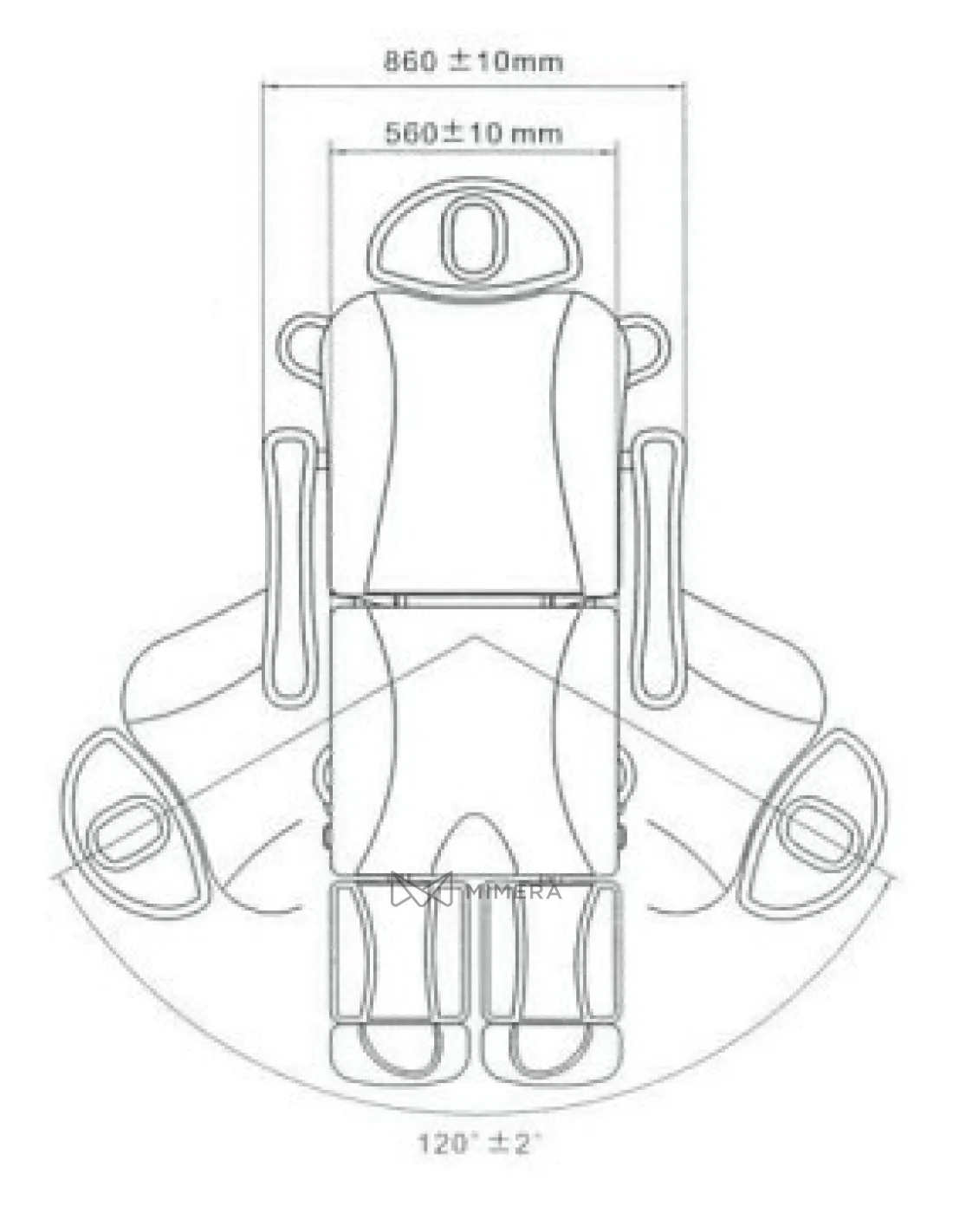 • 3 motors for height control (58-88cm, in the cradle 115cm), backrest (0 ° -75 °) and chair tilt Chair rotation (-120 ° ~ + 120 °)