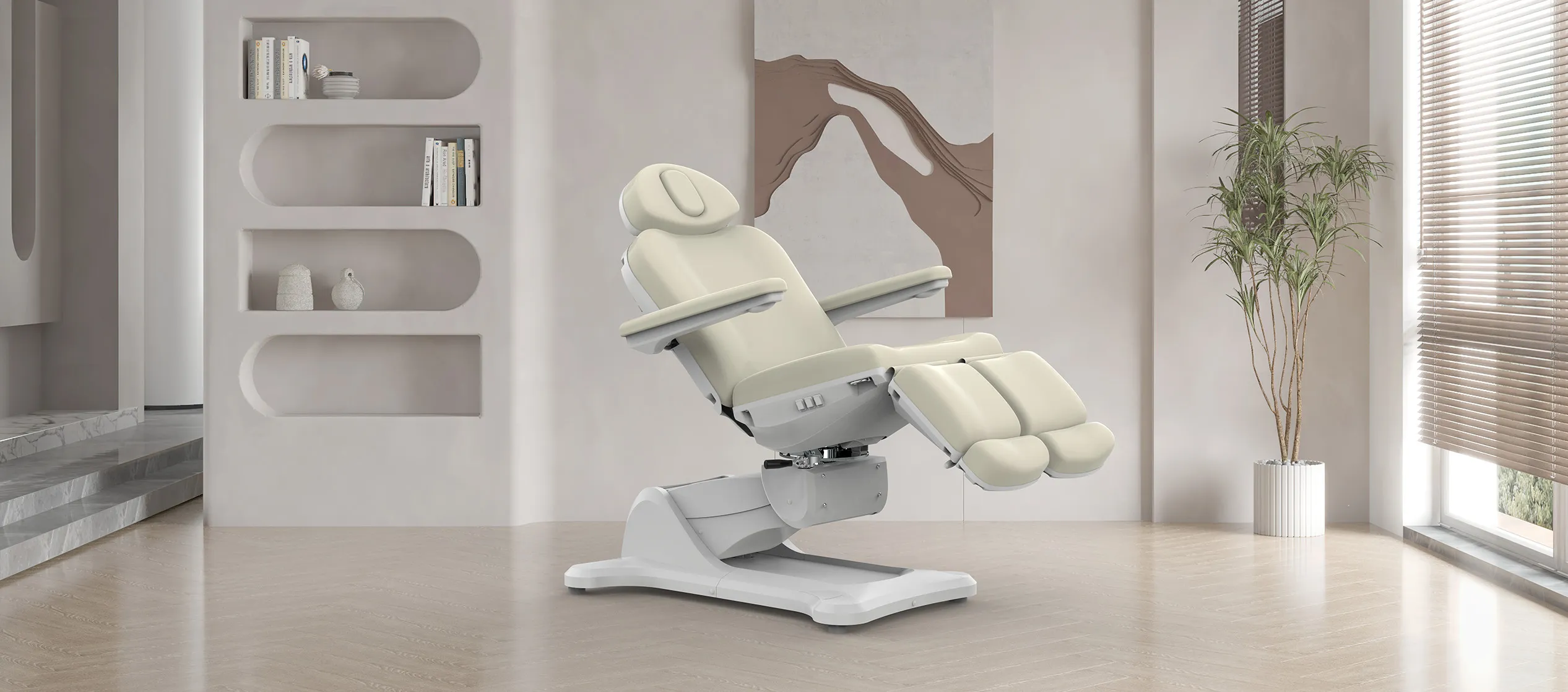 Premium swivel pedicure chair has 3 motors to adjust the height, back, and tilt of the chair. The inclination of the leg parts is adjusted with a pneumatic lever. Leg extensions can be adjusted manually. The chair is swiveling to the side for maximum flexibility and space utilization. Armrests can be folded out. It is also possible to adjust the headrest height and inclination. Quality comfortable upholstery with durable PU surface for easier cleaning. The chair is ideal for a pedicure but it will also perfectly serve cosmetic tasks, as well as massages and wellness treatments.