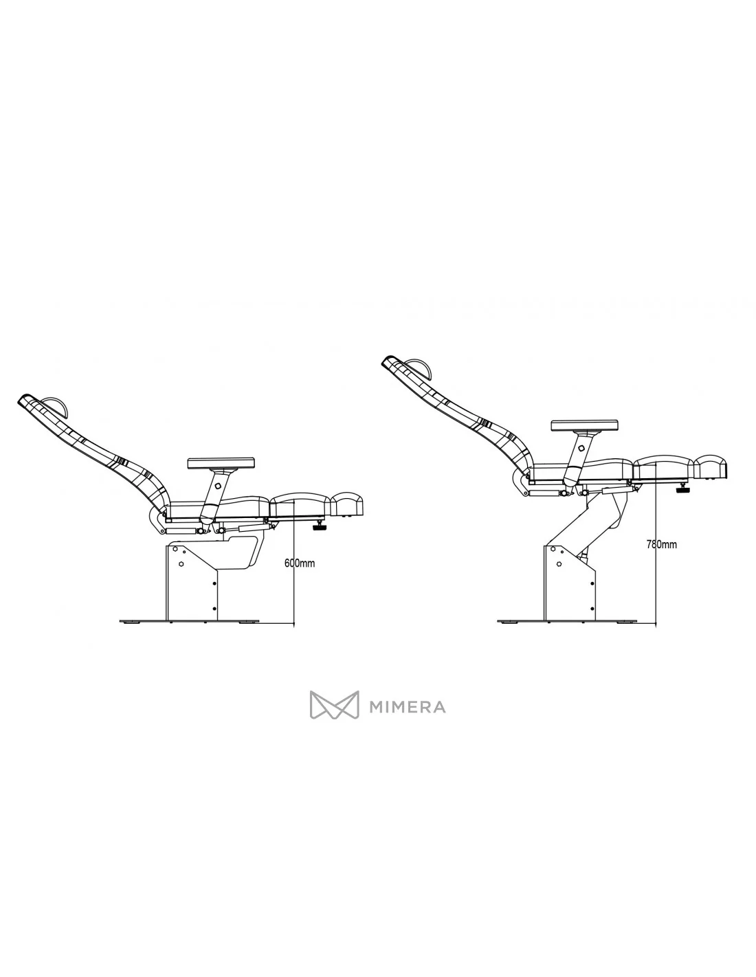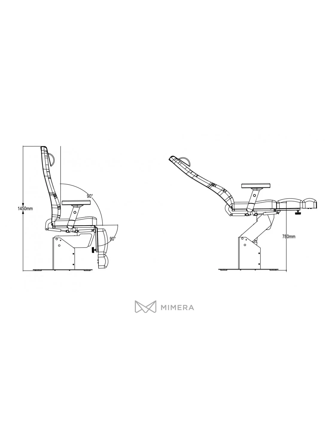 - Pneumatic control of backrest angle adjustment (0°~-90°±10%) and foot incline (+90°±10%)