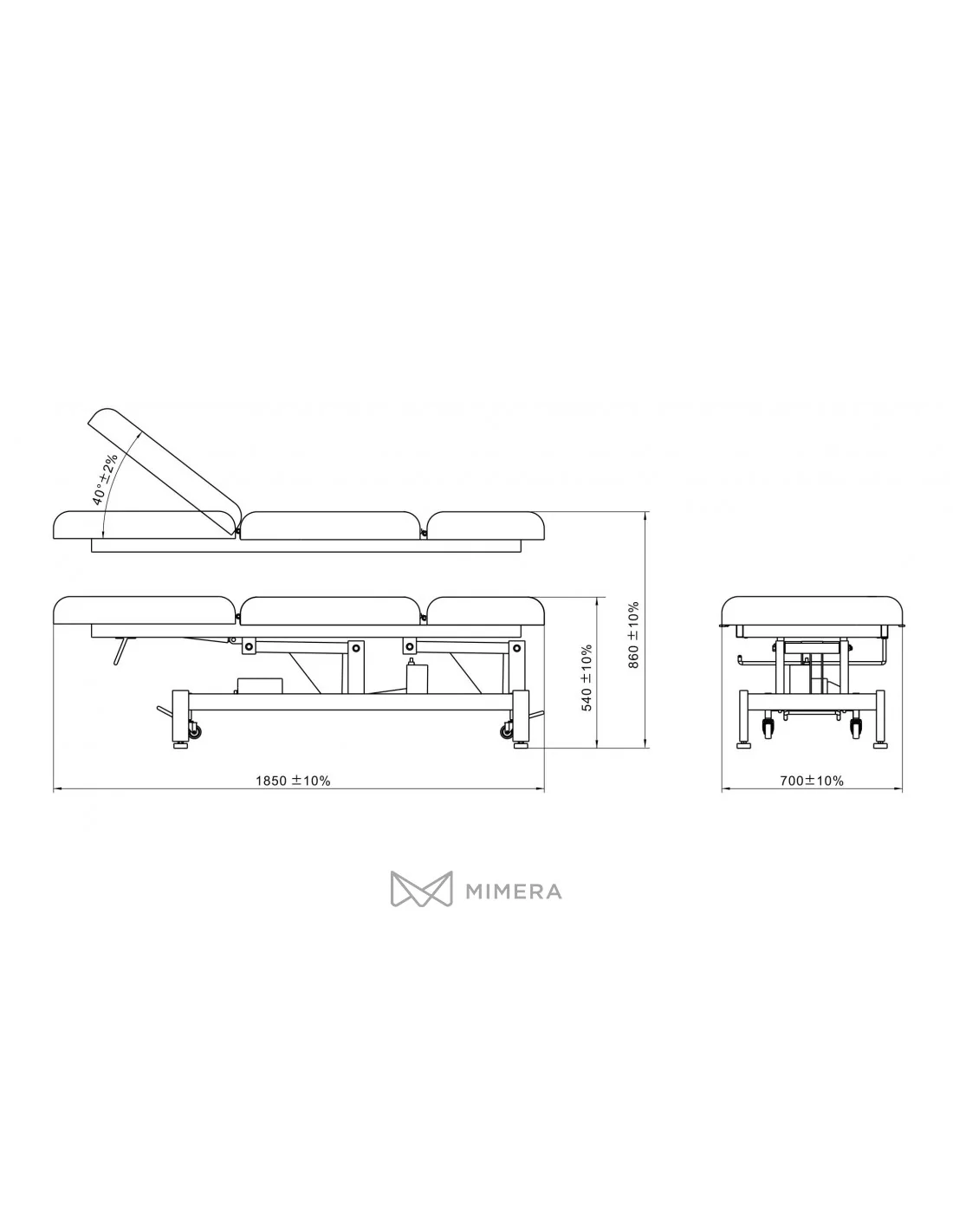 4 folding wheels are integrated into the frame for easier handling and movement. Quality PU padding provides comfort for clients and at the same time is easy to clean.