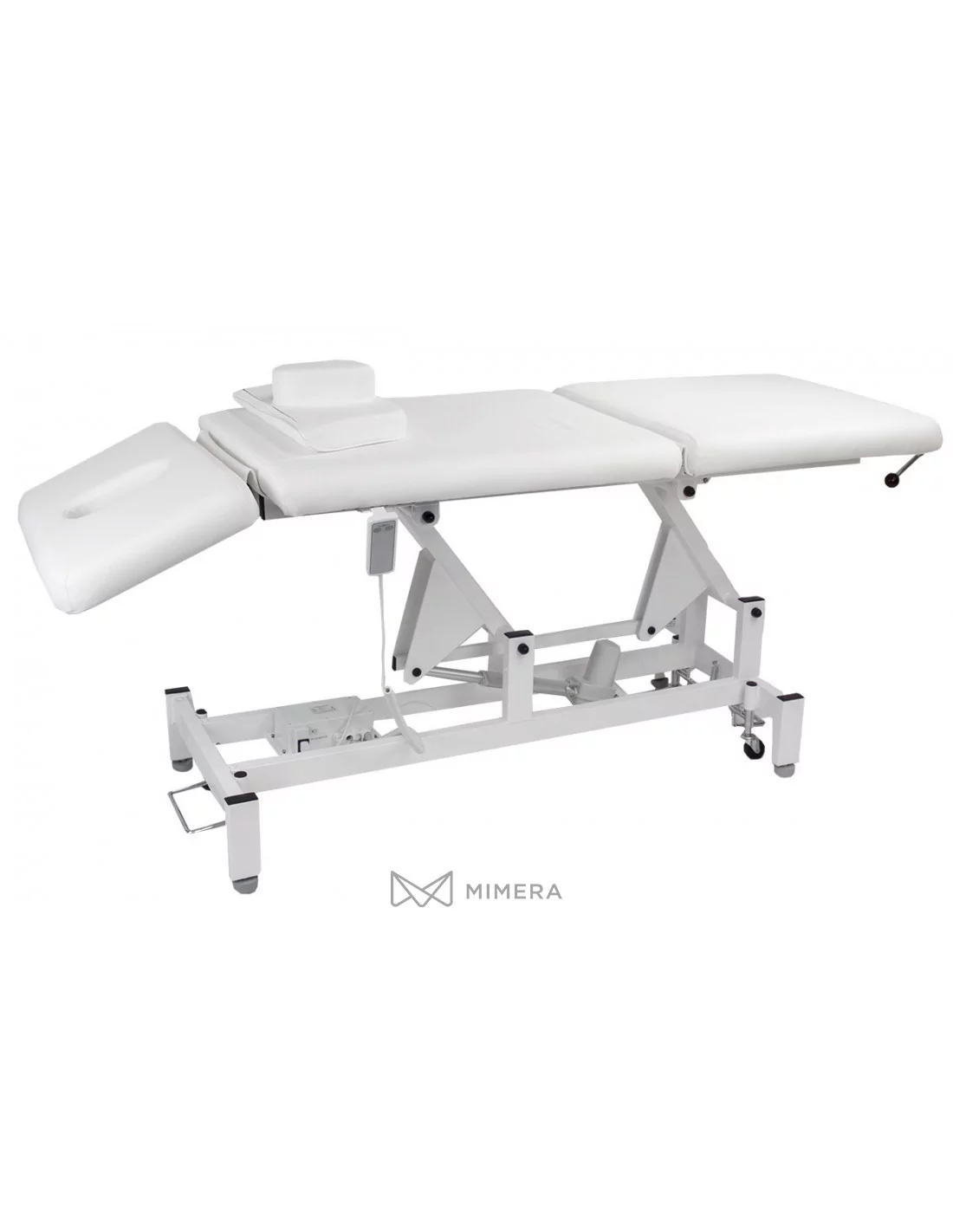 The universal physiotherapy bed EMERY SPLIT E1 is a three-part bed with a unique design. It has one motor for height adjustment, and it is controlled by a manual control, which is included in the package. The headrest and footrest are adjusted manually using pneumatic levers. A part of the lounger is also a pillow, which can be removed and thus use the hole for the shape.