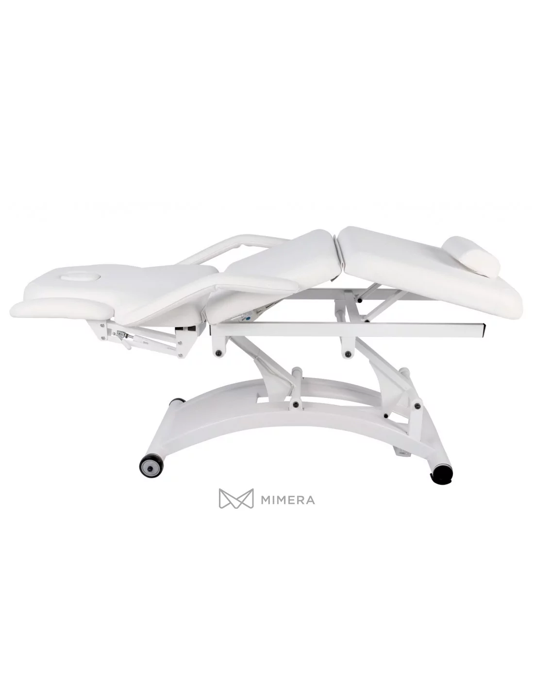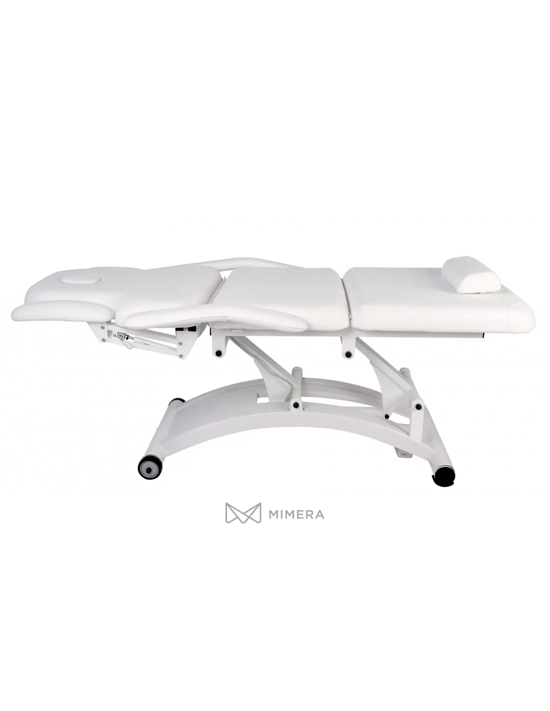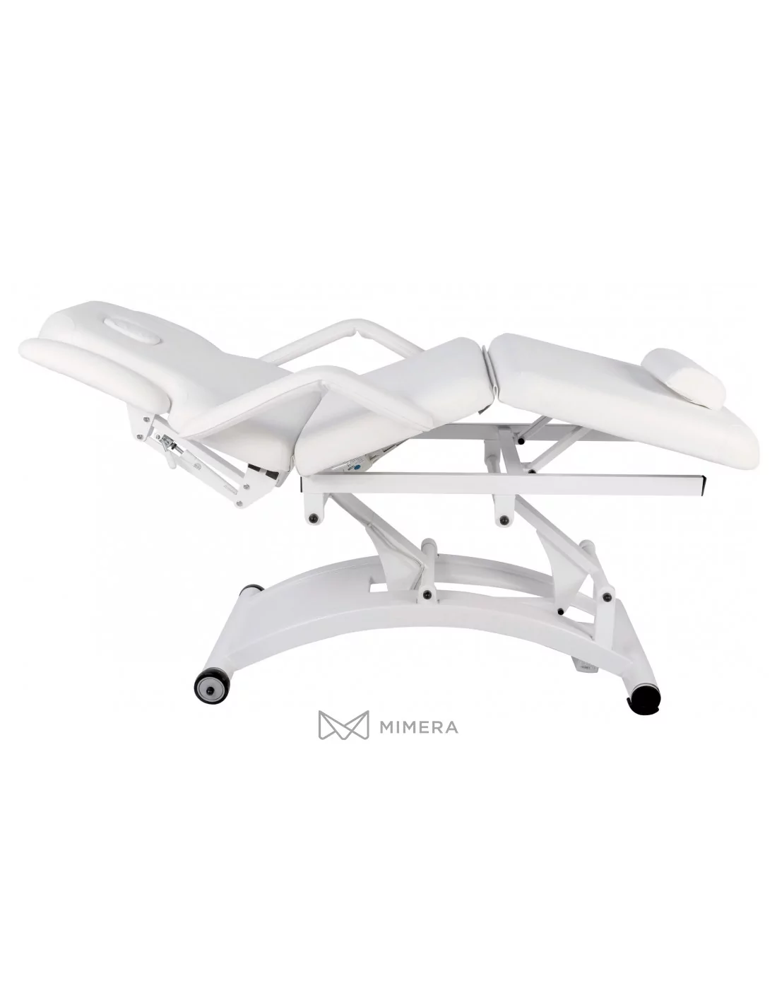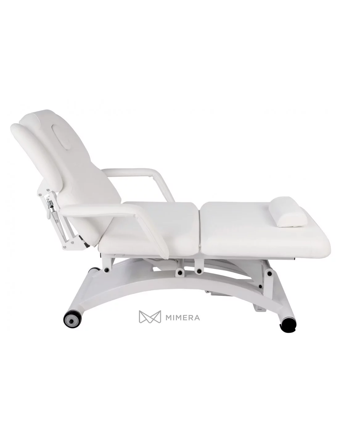 A high-quality, comfortable, high-quality physiotherapy bed is versatile, suitable as a massage and cosmetic bed. Three powerful engines control the height, back, and slope of the central part - seat and foot. The electric control is via the hand controller which is included in the package. Your customers will appreciate the very low height of the bed during sitting on the bed. The seat also stands out with the maximum possible height. A metal frame with wheels allows easy moving within the room.