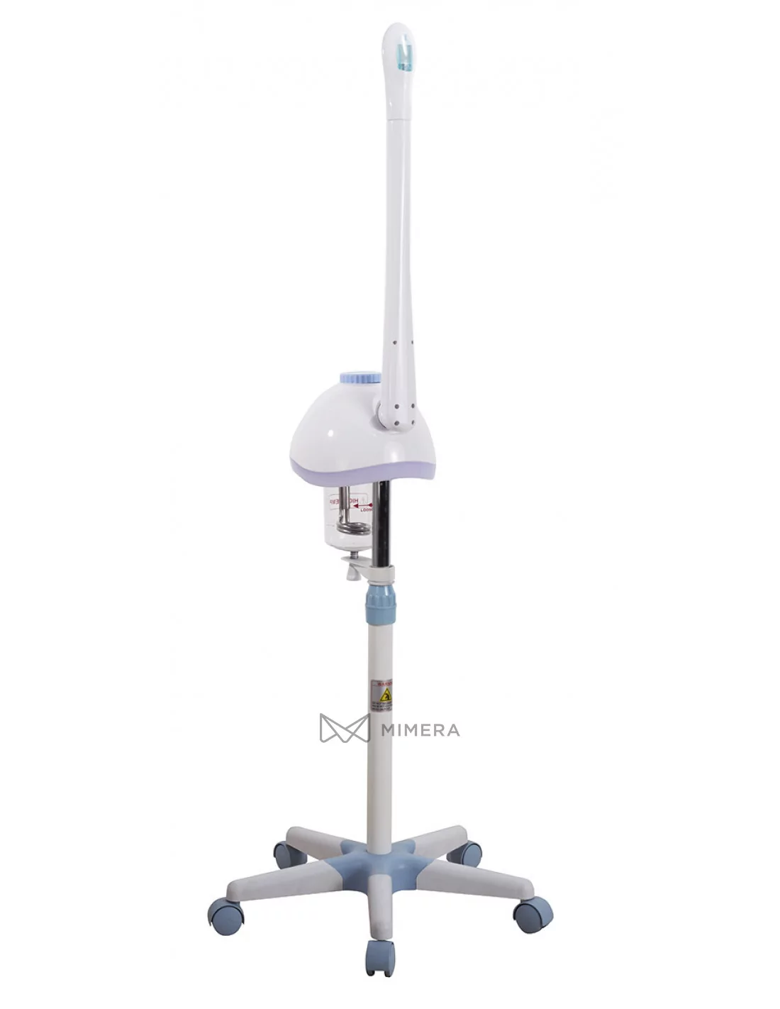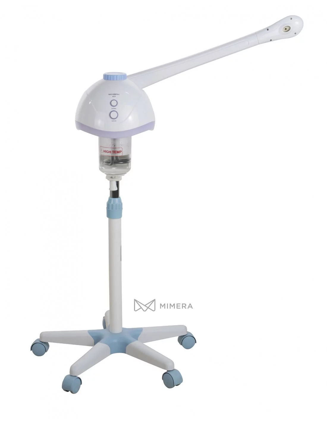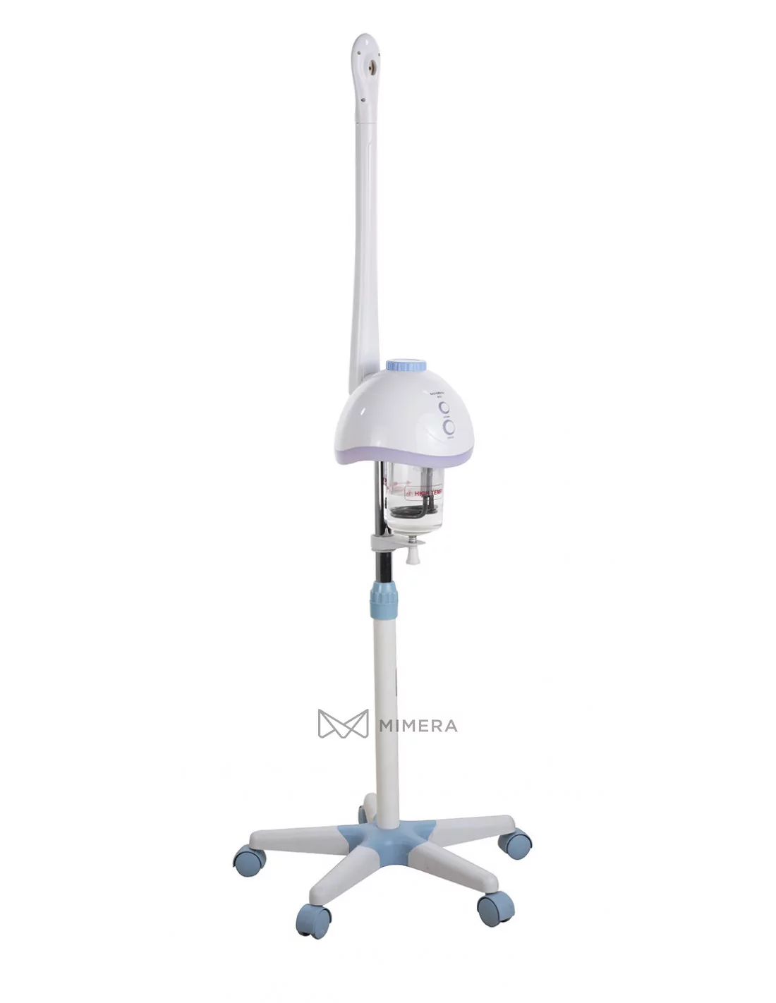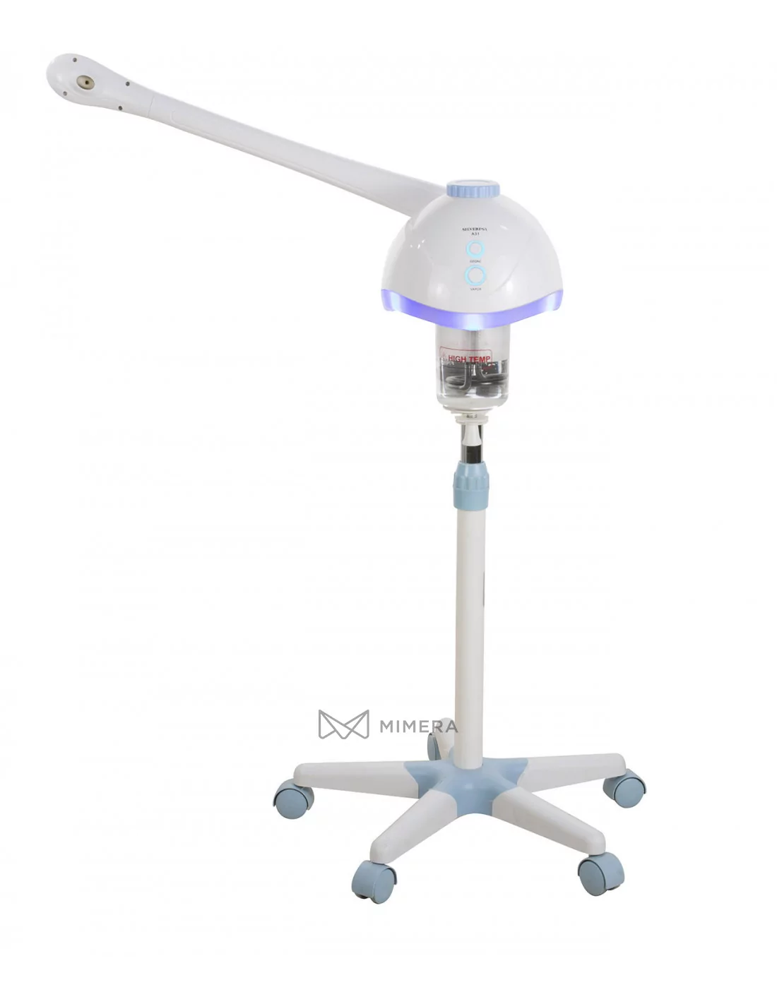 The POPY cosmetic steamer with ozone has a functional and simple design. It is equipped with a swivel arm and is also height-adjustable. The 5-wheel base is great for easy movement. The steamer is popular in beauty salons due to its appearance and pleasant backlight. The control is digital with the possibility of switching ozone for maximum hygiene.