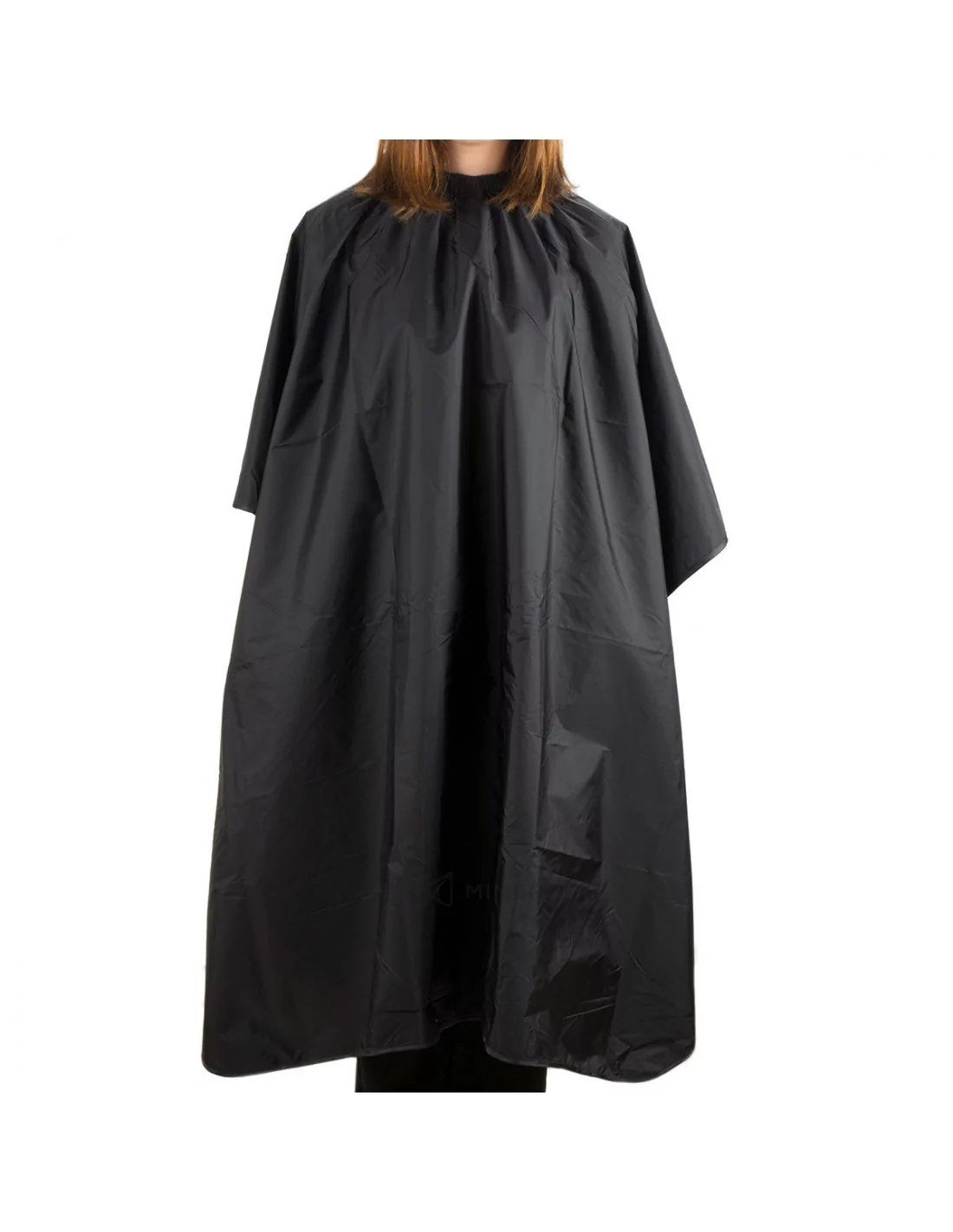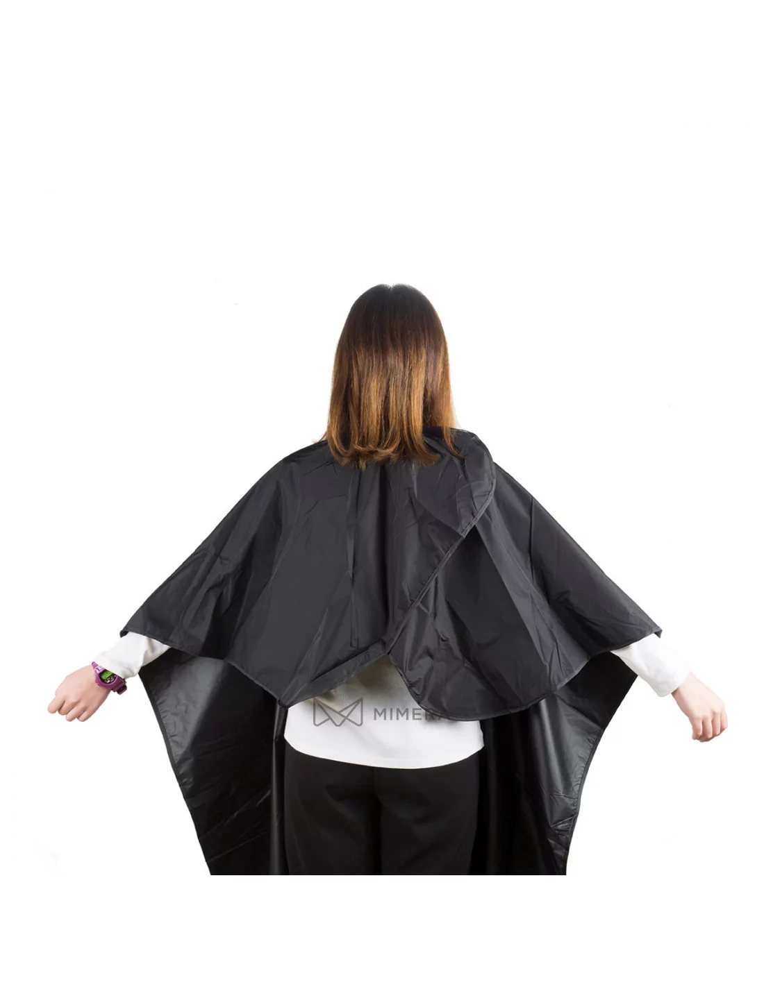 Cape with adjustable neck closure especially suitable for hair cutting, but also for colouring. It is made of water-repellent material and protects clothing very well.
