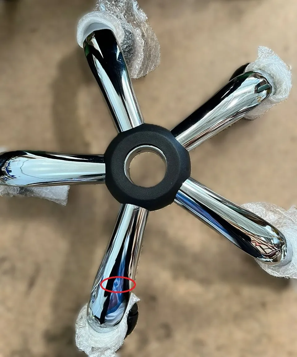 Damage: minor scuffs around the perimeter of the chair, minor damage to the base