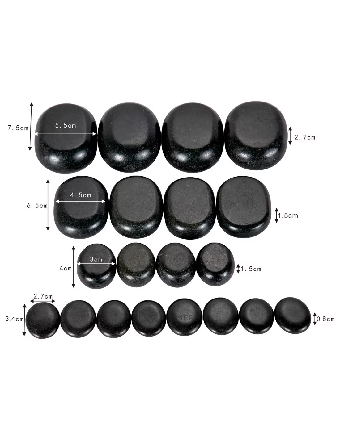 This 20-piece Hot Stone Set is suitable for professional relaxation massages for the entire body.