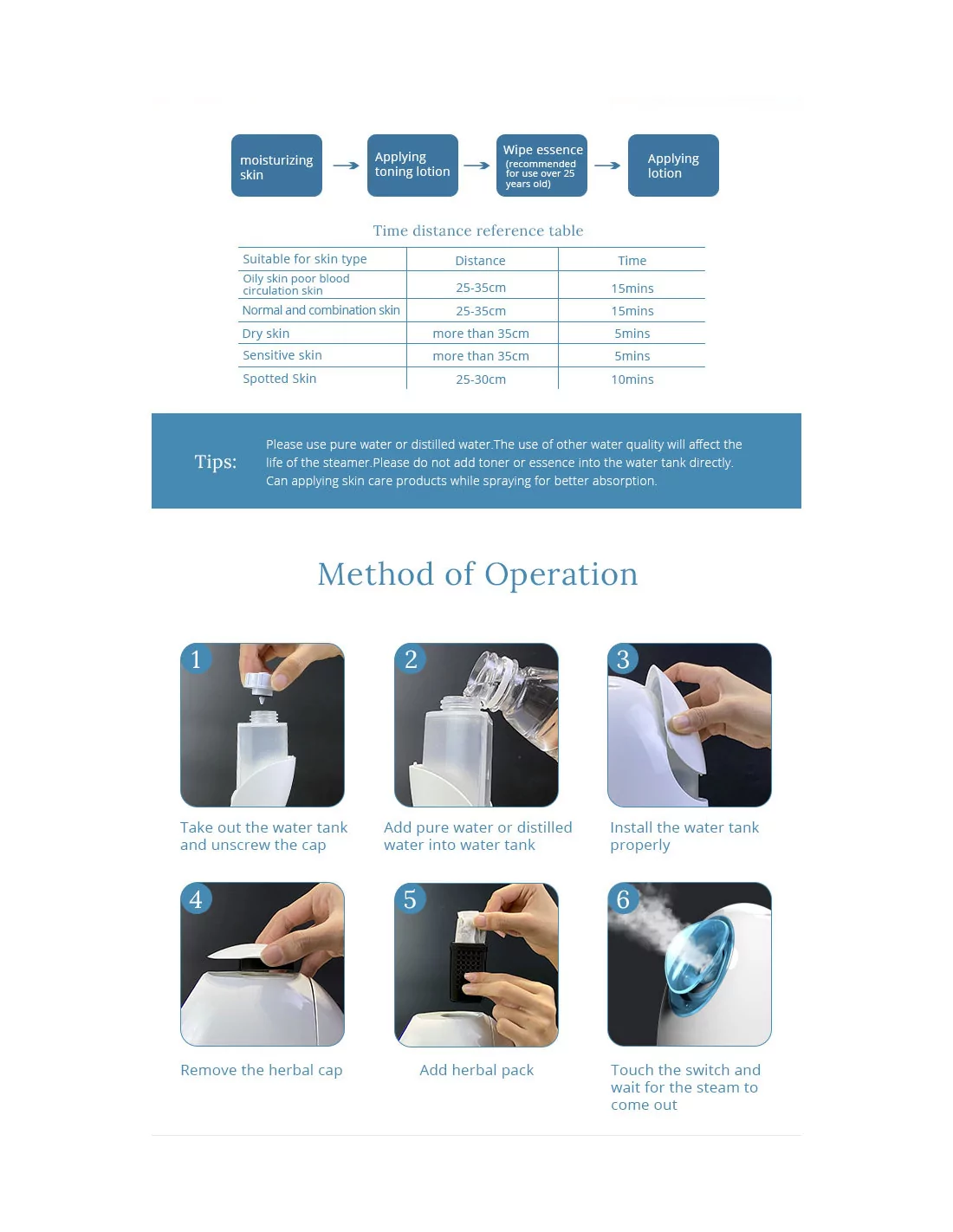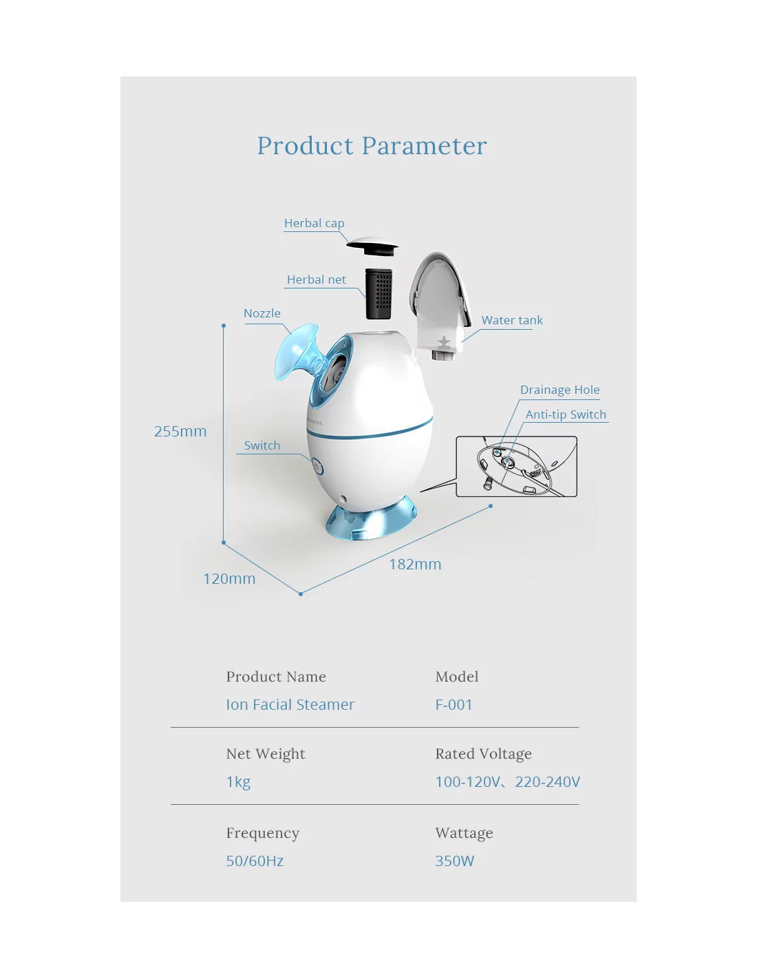 Along with the modern design, this facial steamer offers ozone sterilization which is stimulated by UV radiation, so it can effectively kill bacteria and soften epidermal necrotic tissue to keep the skin healthy. The use of this product will accelerate blood circulation, promote cellular metabolism, reduce wrinkles, and have a radiant and glowing effect on the skin.